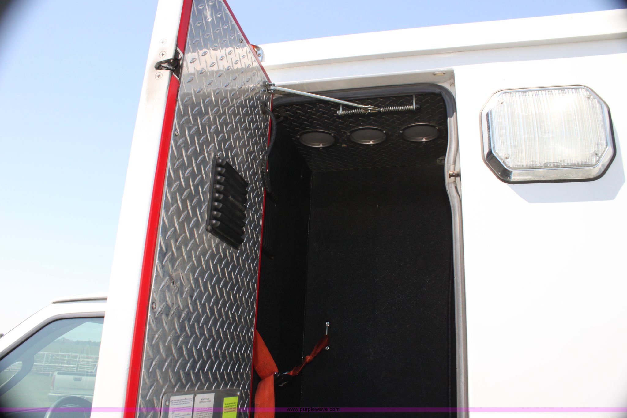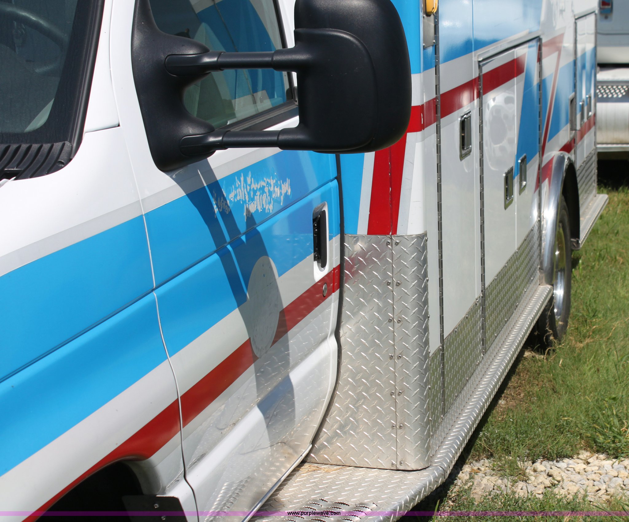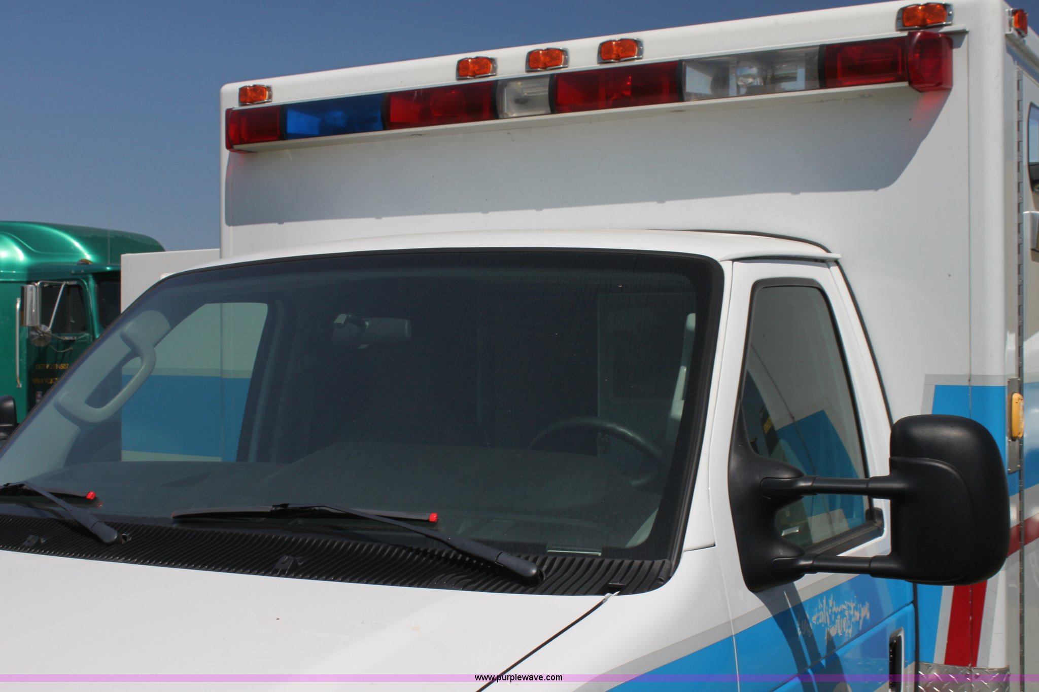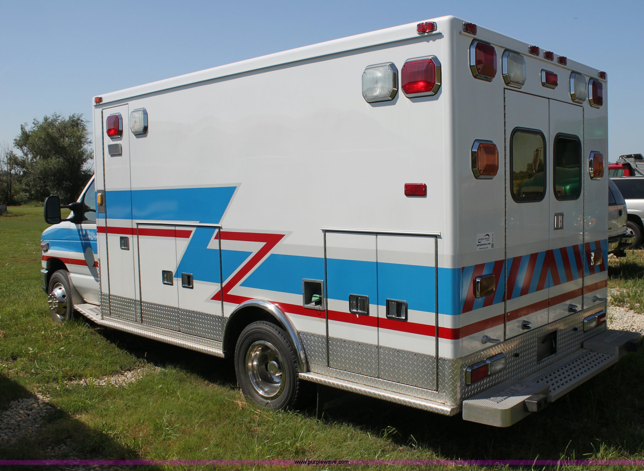 Purple Wave is selling a used Fire Truck or Emergency Vehicle in Kansas. This item is a 2010 Ford Econoline E450 ambulance with the following: 113,211 miles on odometer, 6.0L V8 SOHC 16V diesel engine, Automatic transmission, AC and heat, Tilt, Cruise, AM/FM/CD, Power windows and locks, Med Tec body, One side compartment will not unlock, Batteries dead, Interior/exterior cosmetic damage