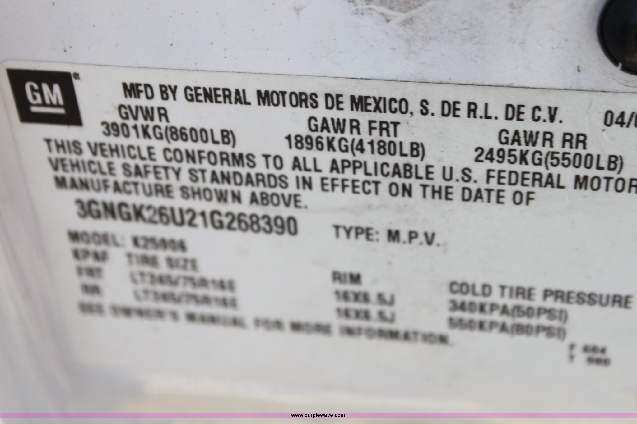 Purple Wave is selling a used Passenger Vehicle in Kansas. This item is a 2001 Chevrolet Suburban K2500 SUV with the following: 223,487 miles on odometer, 6.0L V8 OHV 16V gas engine, Automatic transmission, Four wheel drive, AC and heat, Tilt, Cruise, AM/FM/CD, Power windows, locks, and mirrors, Cloth interior, 245/75R16 tires, Battery dead, Hail damage, Interior/exterior cosmetic damage, Unit# 2507
