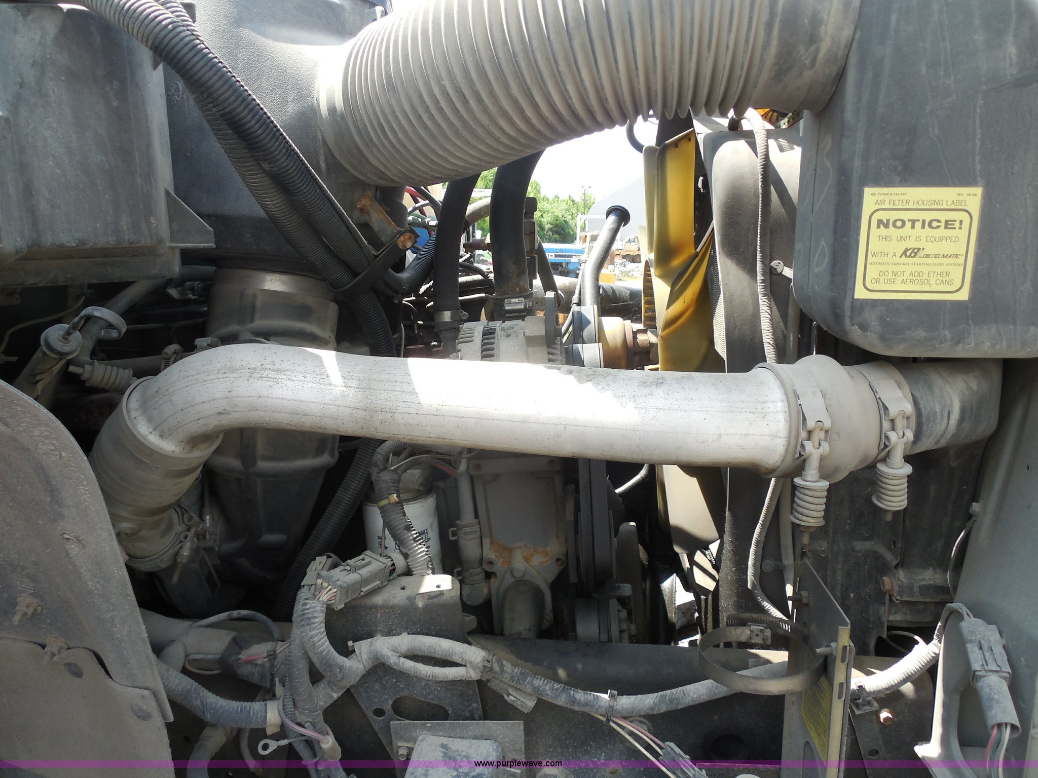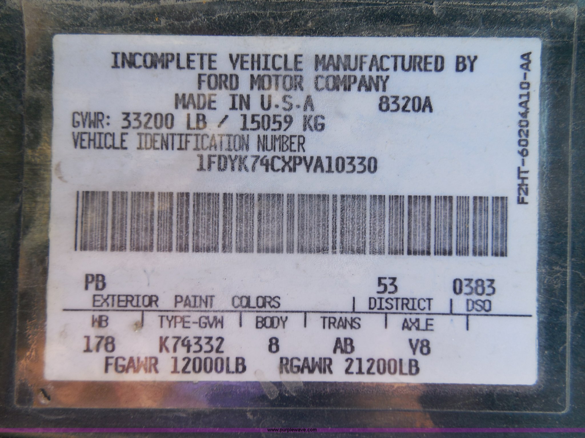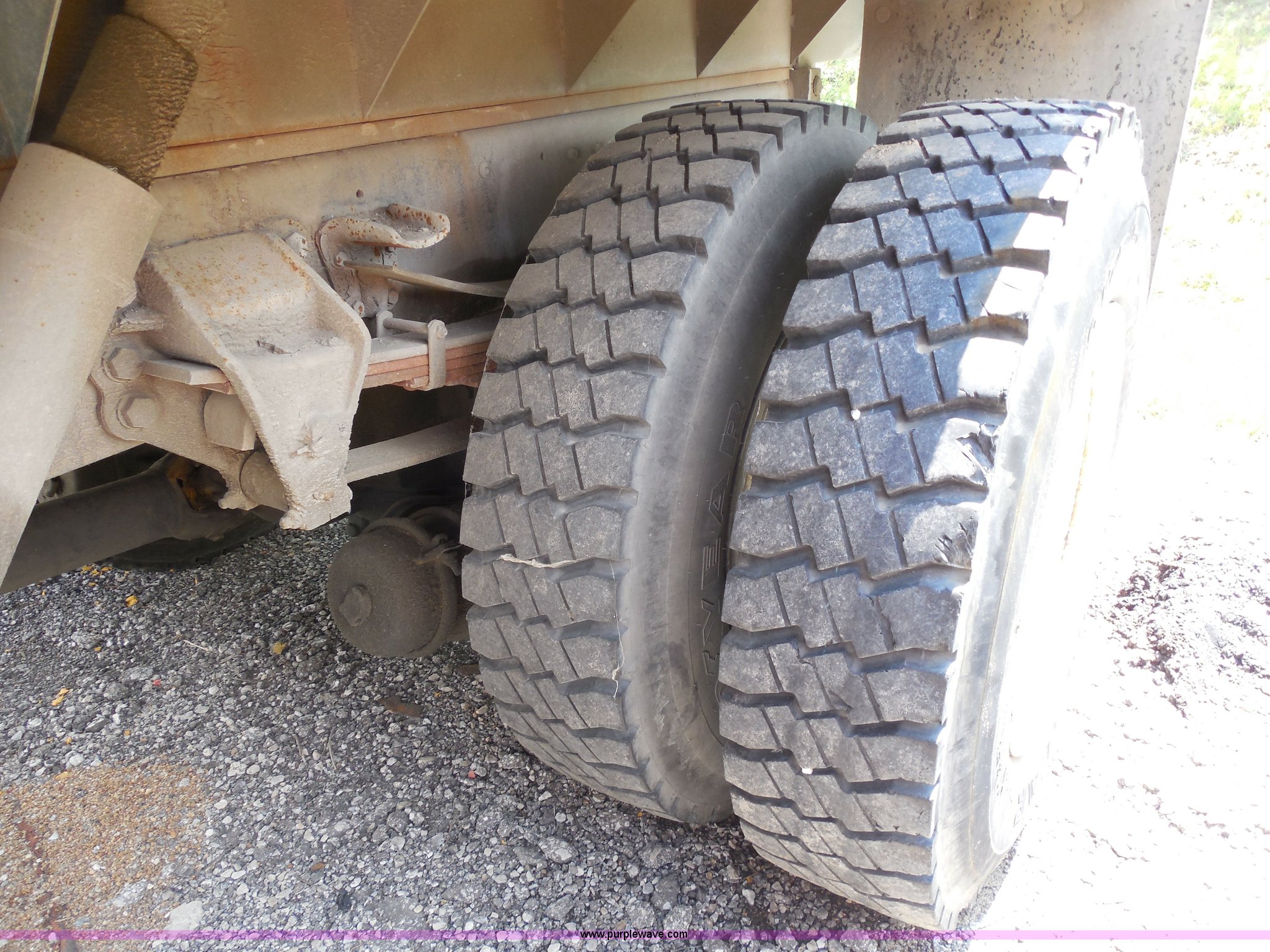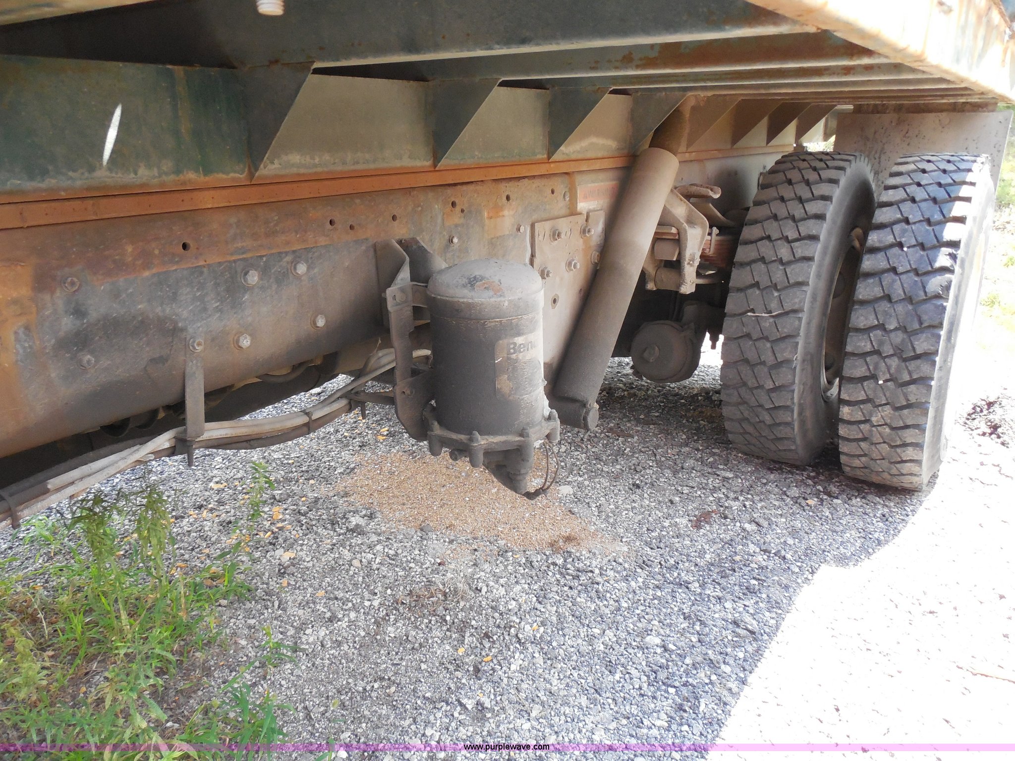 Purple Wave is selling a used Construction Dump Truck in Kansas. This item is a 1993 Ford F700 dump truck with the following: 66,436 miles on odometer, Cummins 5.9L L6 diesel engine, Automatic transmission, American 12.6' dump bed, Dual ram hoist, 50 gallon fuel tank, PTO, Pintle hitch, Spring suspension, Air brakes, 10.00-20 tires, GVWR 33,200 lbs, Dead battery, Cosmetic damage, Starts and runs