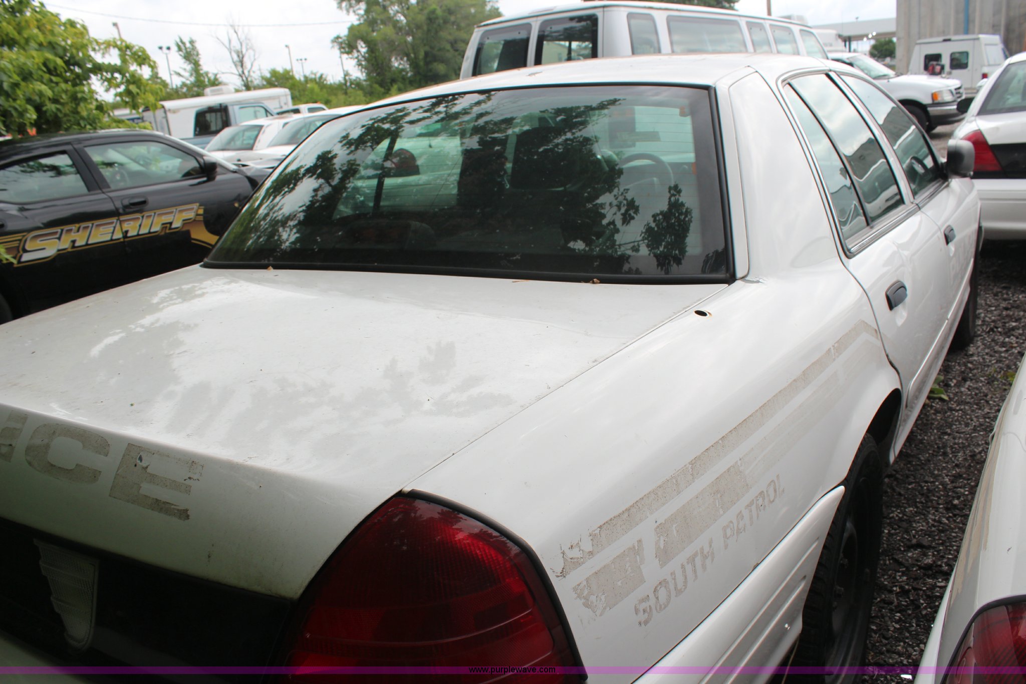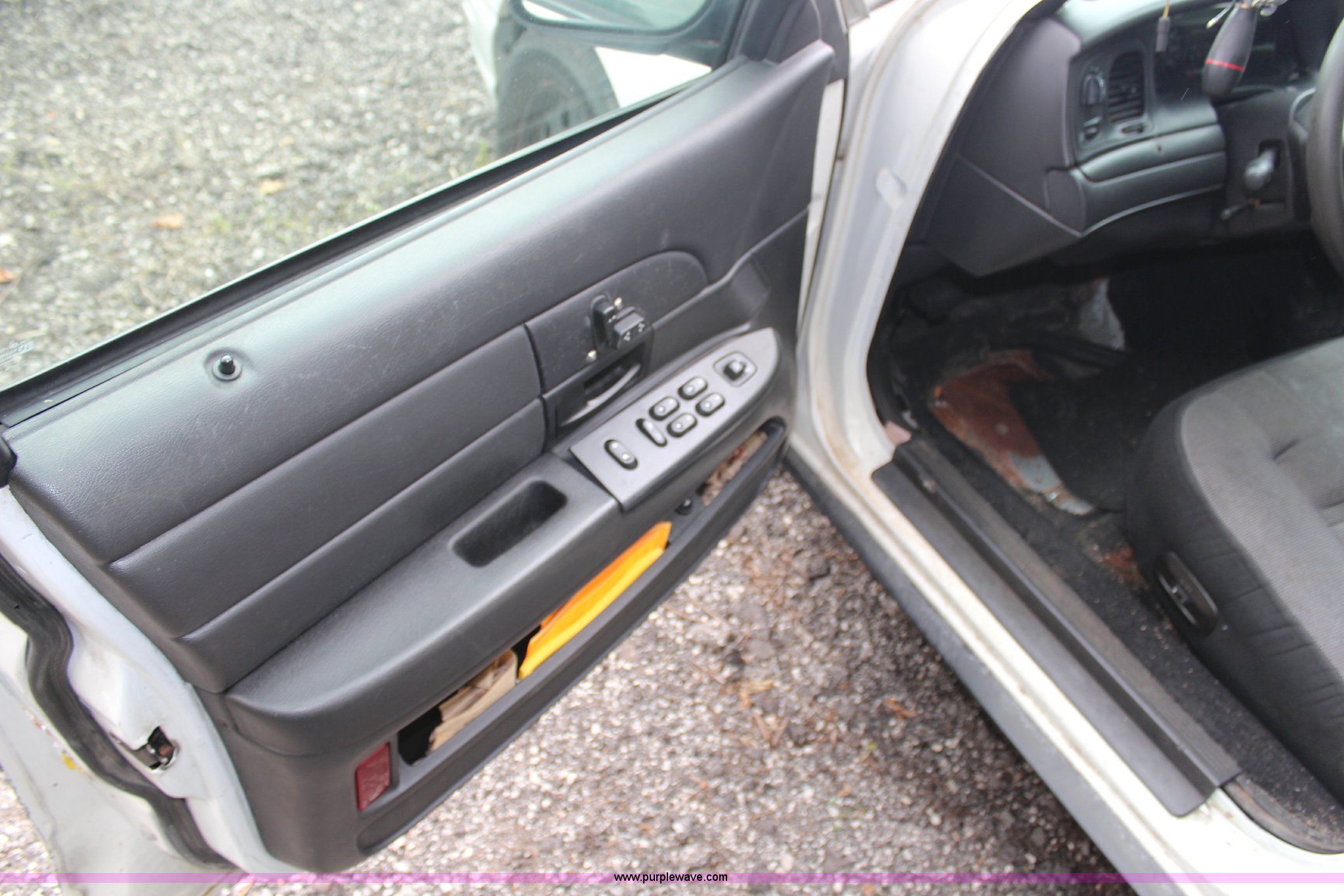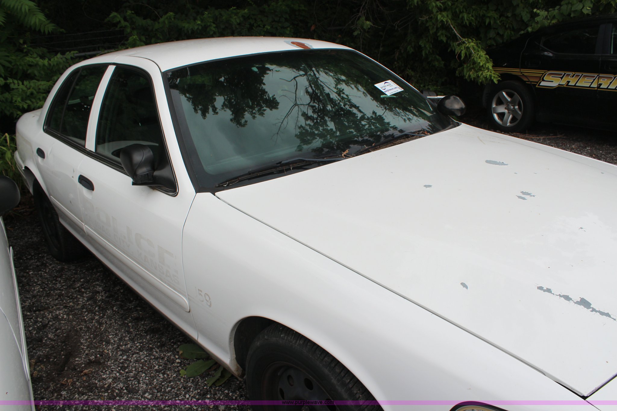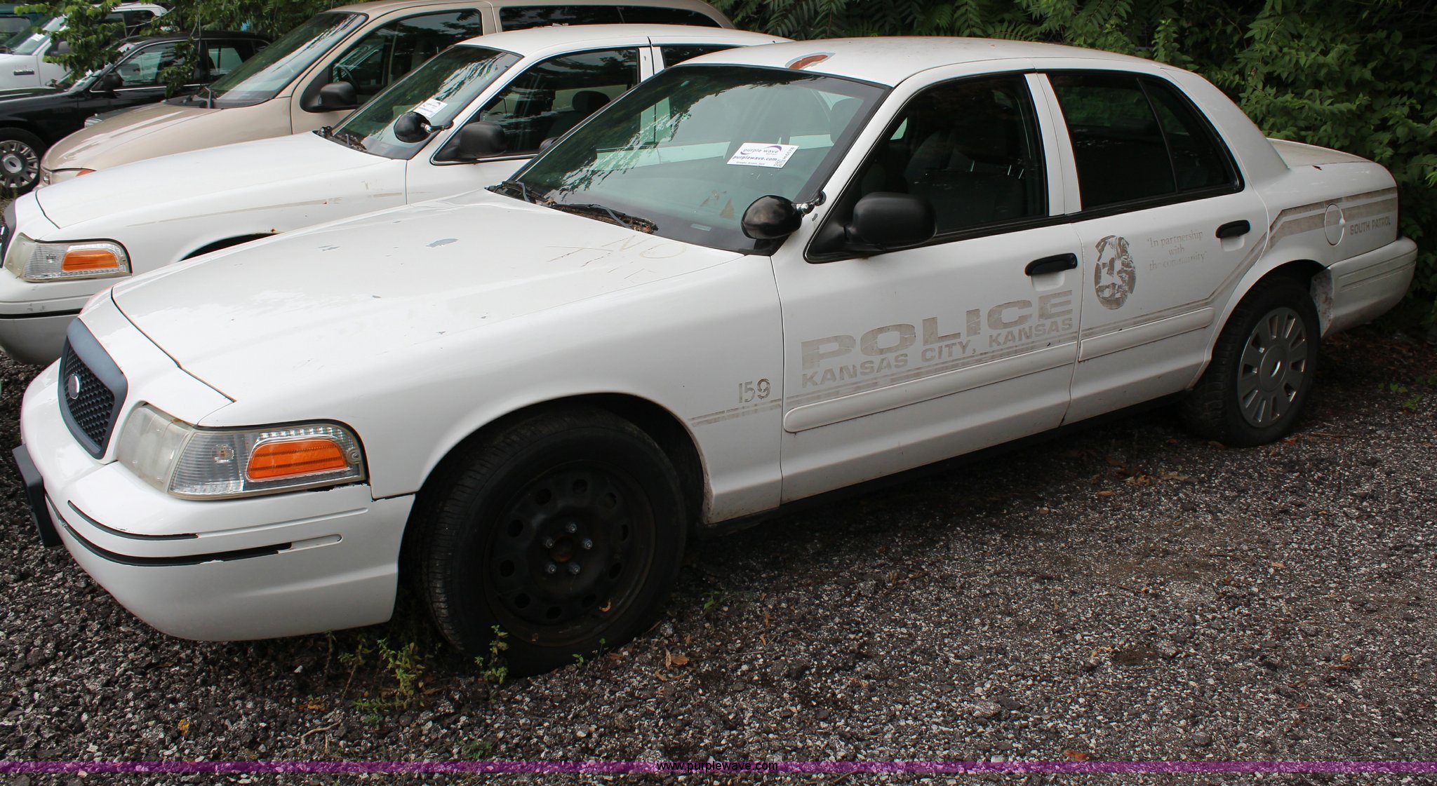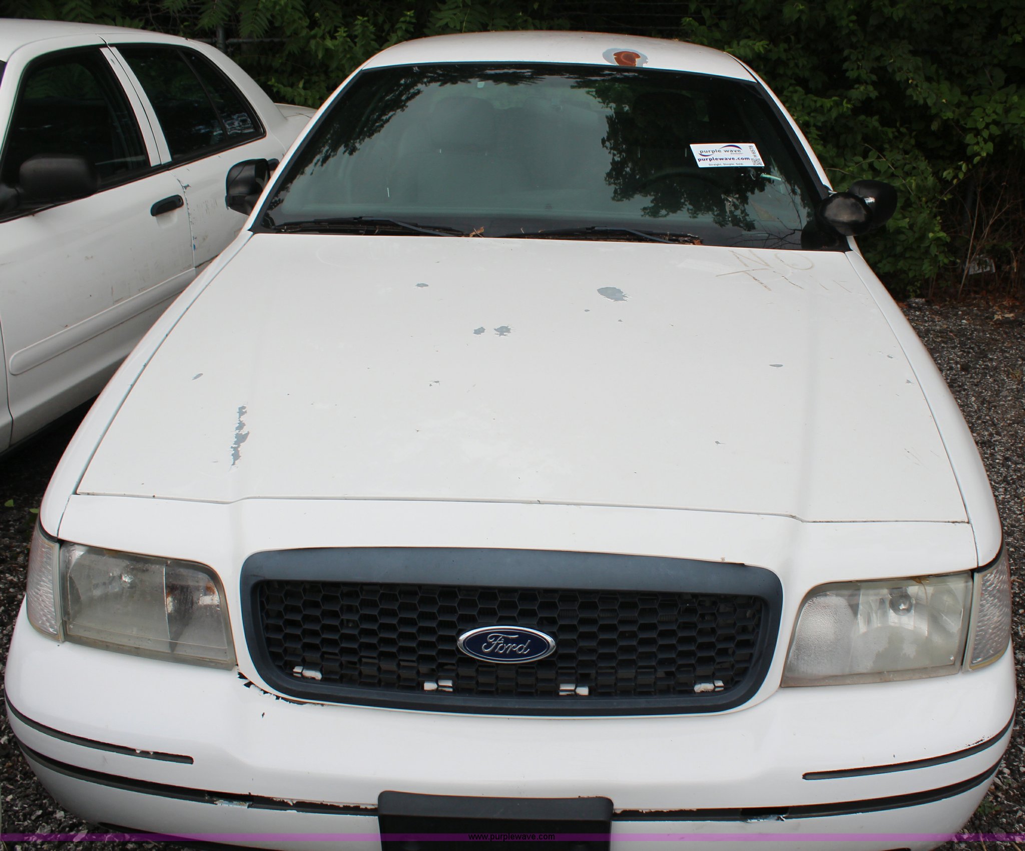 Purple Wave is selling a used Passenger Vehicle in Kansas. This item is a 2008 Ford Crown Victoria Police Interceptor with the following: 175,150 miles on odometer, 4.6L V8 SOHC 16V gas engine, Automatic transmission, AC and heat, Tilt, Cruise, AM/FM, Power windows, locks, and mirrors, Cloth interior, P235/55R17 tires, Exterior cosmetic damage, Paint faded and peeling, TPMS light is on, Starts and runs