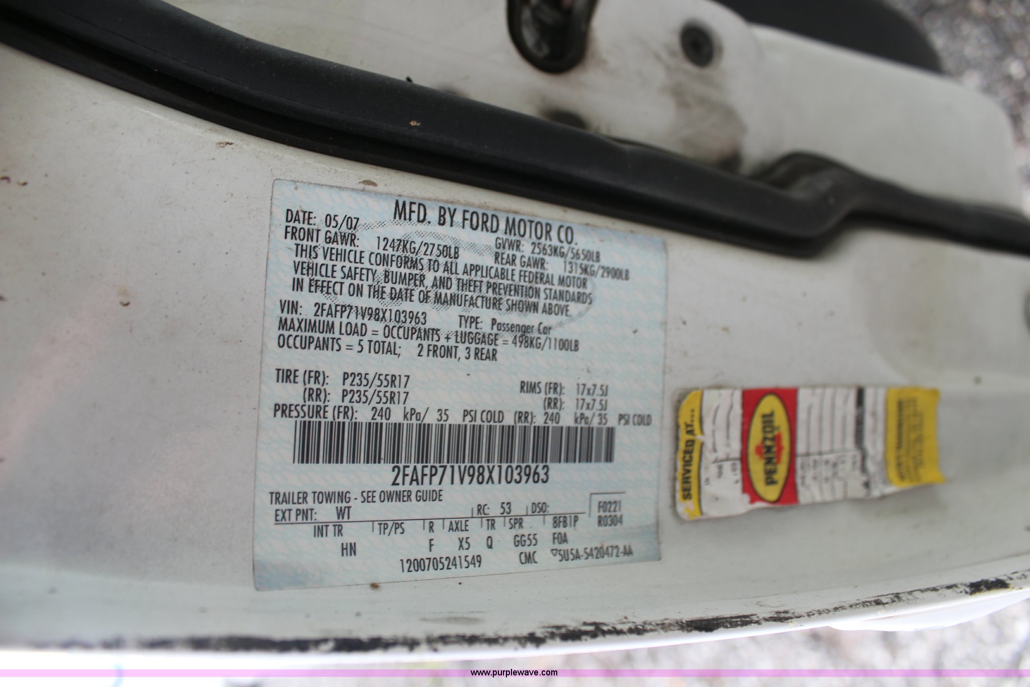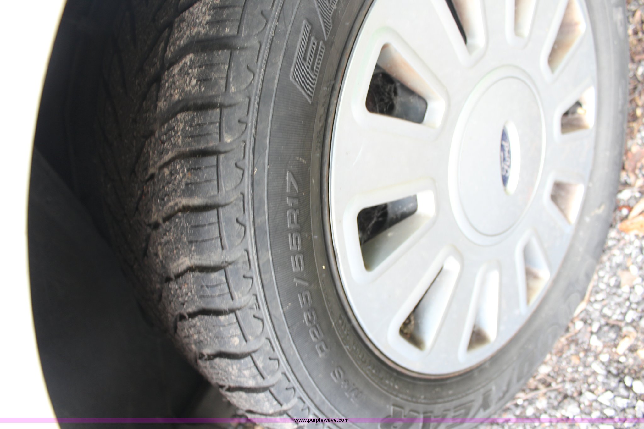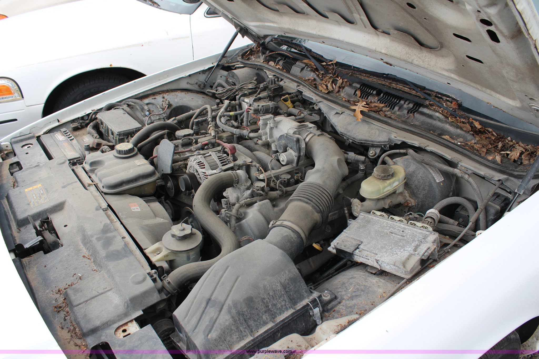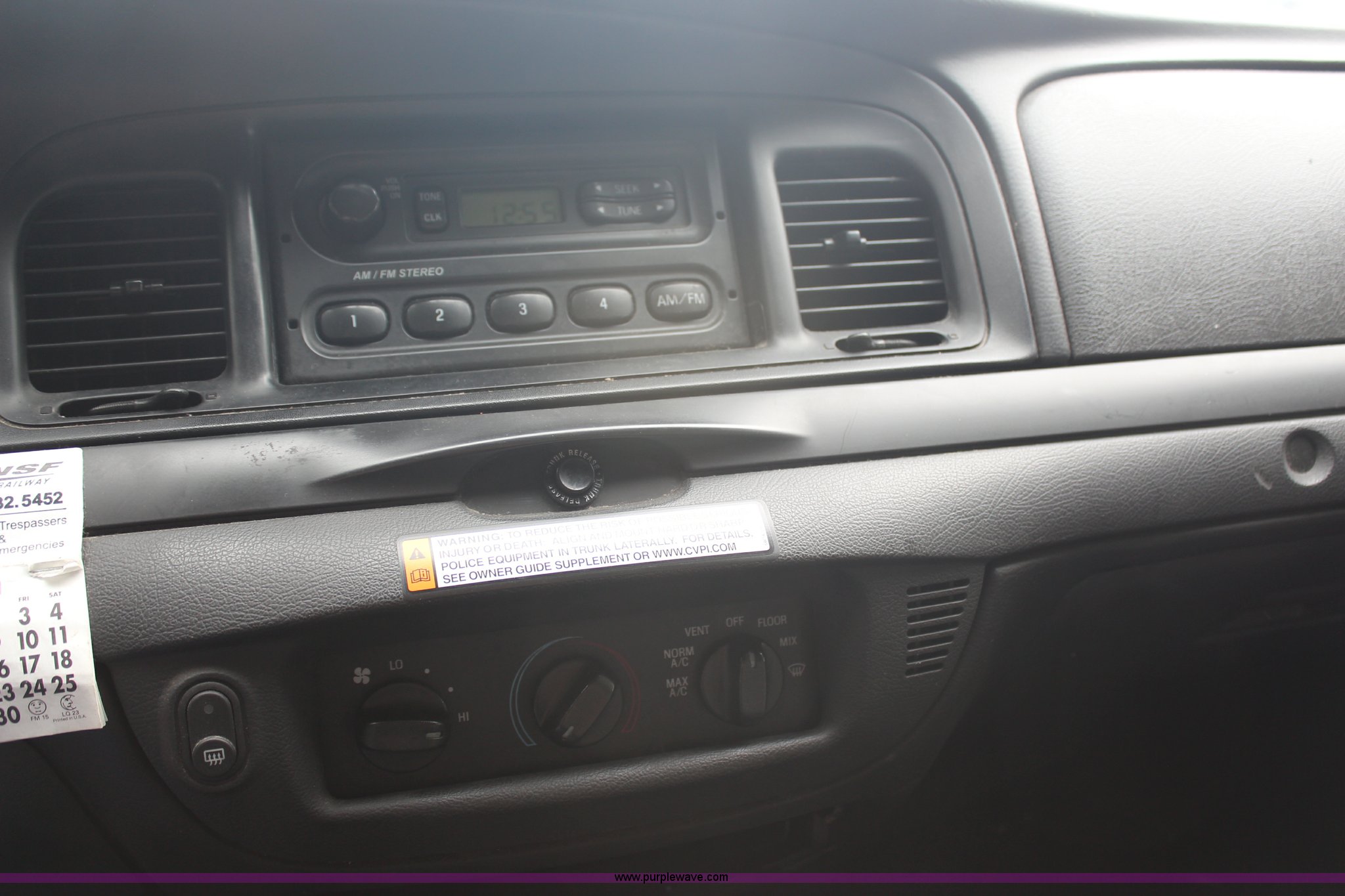 Purple Wave is selling a used Passenger Vehicle in Kansas. This item is a 2008 Ford Crown Victoria Police Interceptor with the following: 175,150 miles on odometer, 4.6L V8 SOHC 16V gas engine, Automatic transmission, AC and heat, Tilt, Cruise, AM/FM, Power windows, locks, and mirrors, Cloth interior, P235/55R17 tires, Exterior cosmetic damage, Paint faded and peeling, TPMS light is on, Starts and runs