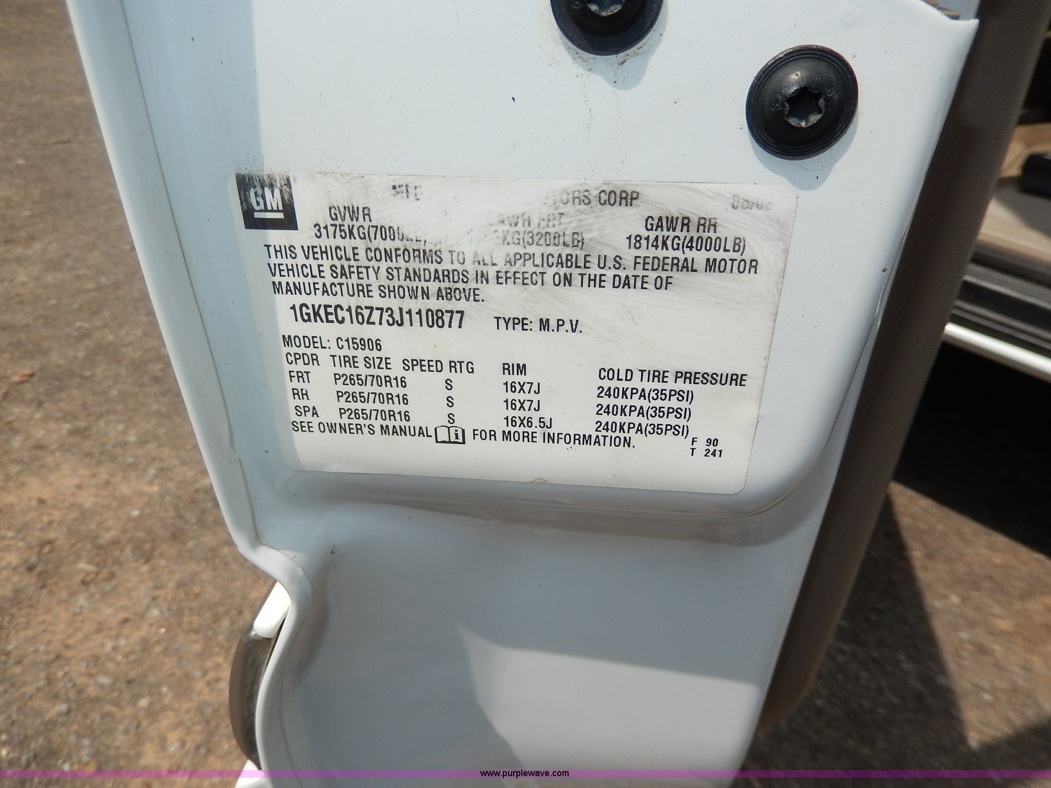 2003 GMC Yukon XL SUV. 174,578 miles on odometer Miles will vary, unit is still in use, 5.3L V8 OHV 16V FFV gas engine, Automatic transmission, AC and heat, Tilt, Cruise, AM/FM/CD, Power windows, locks, mirrors, and seats, Cloth interior, Receiver hitch, Trailer wiring, 265/70R16 tires. 1GKEC16Z73J110877. Shipping quotes available. Southern Cloud Schools USD 334. 619 W Tootle. Miltonvale, KS 67466