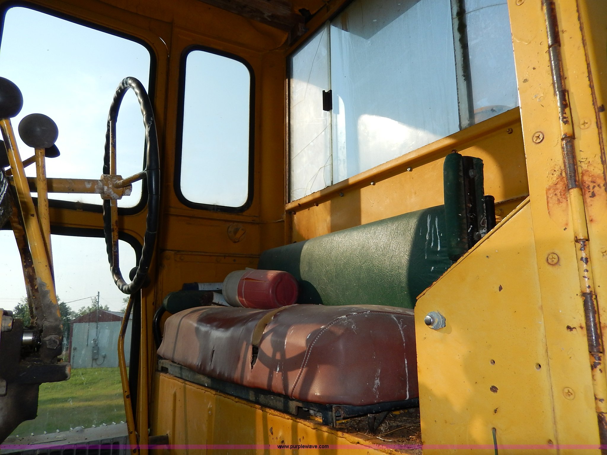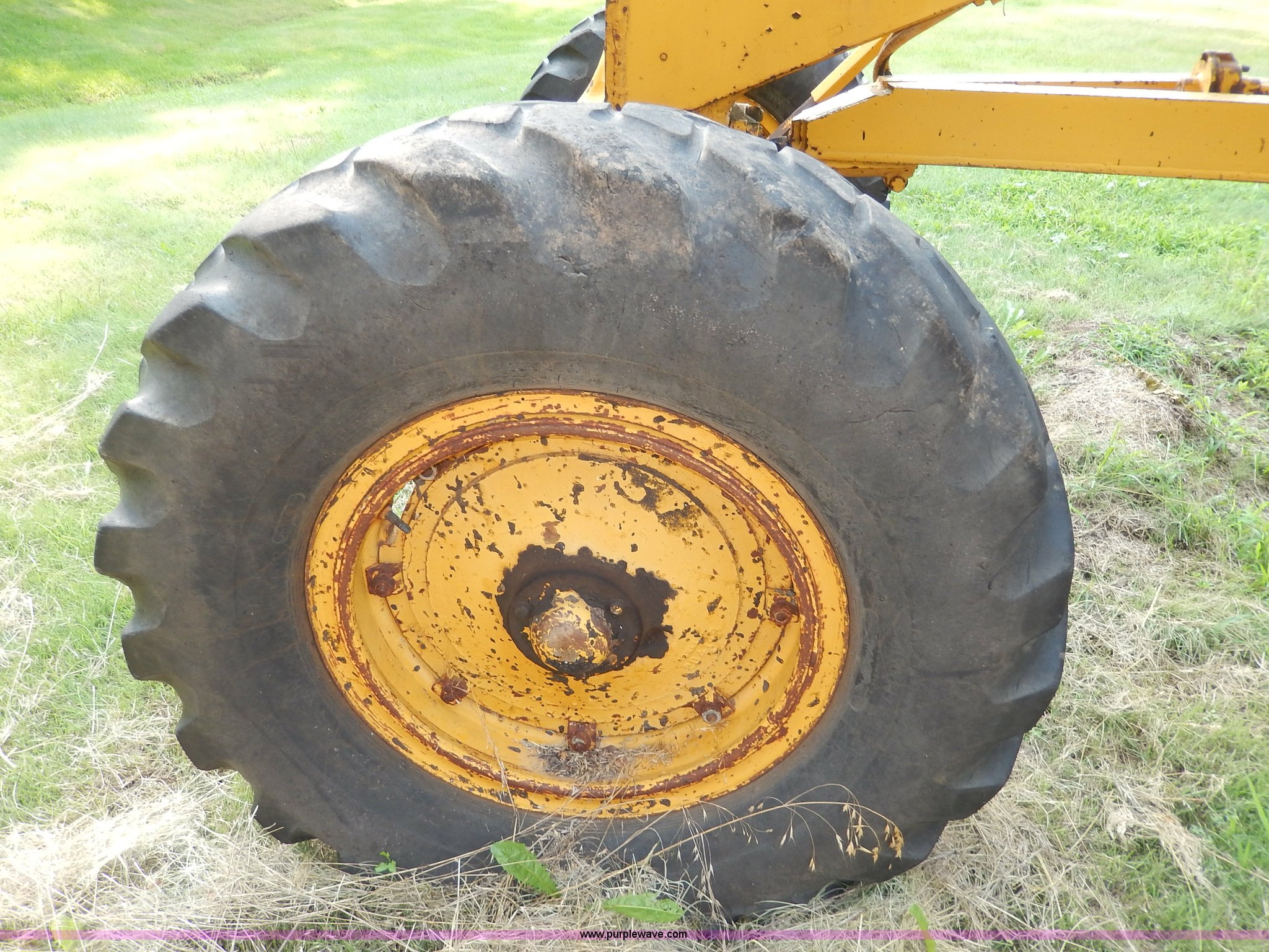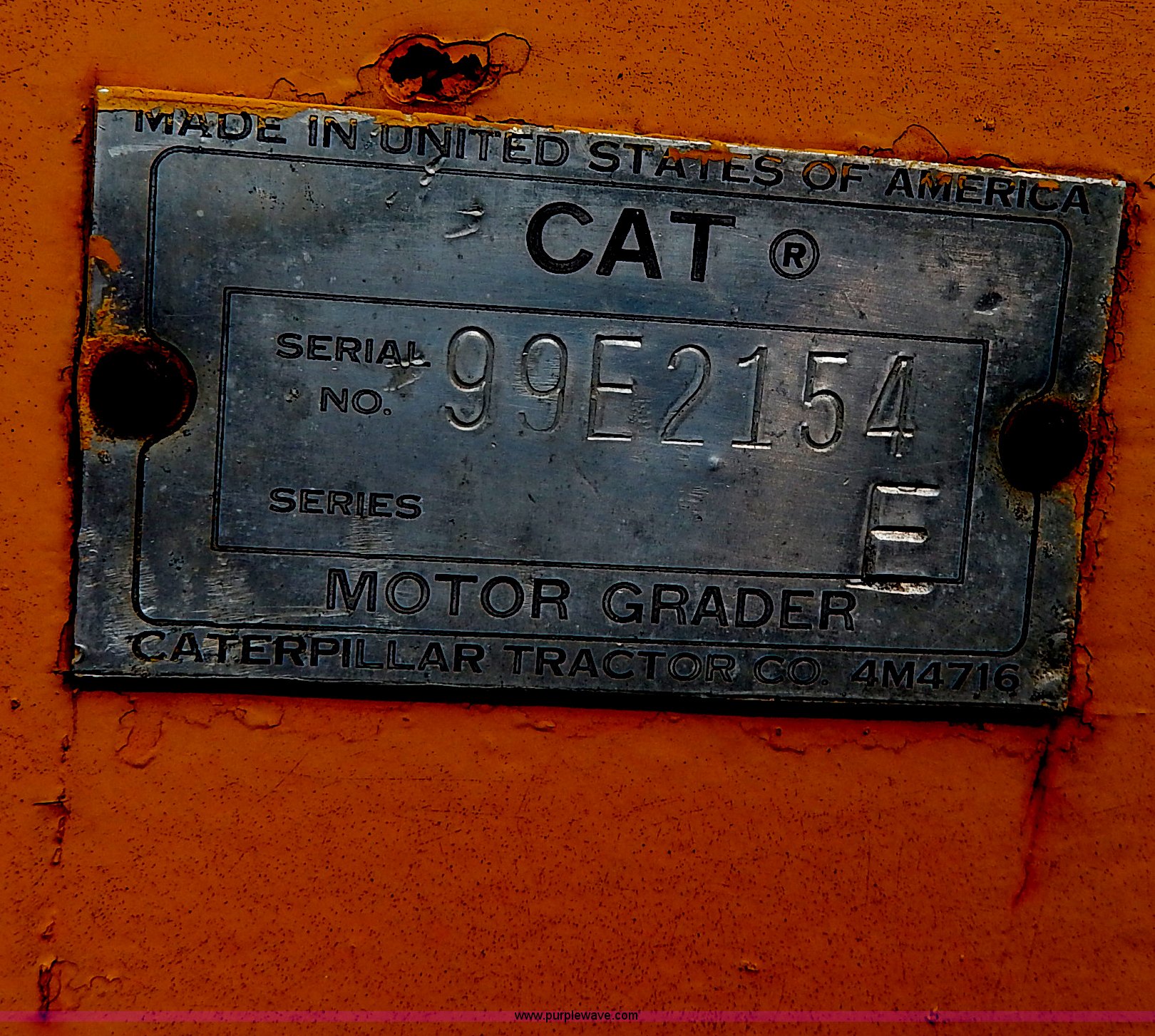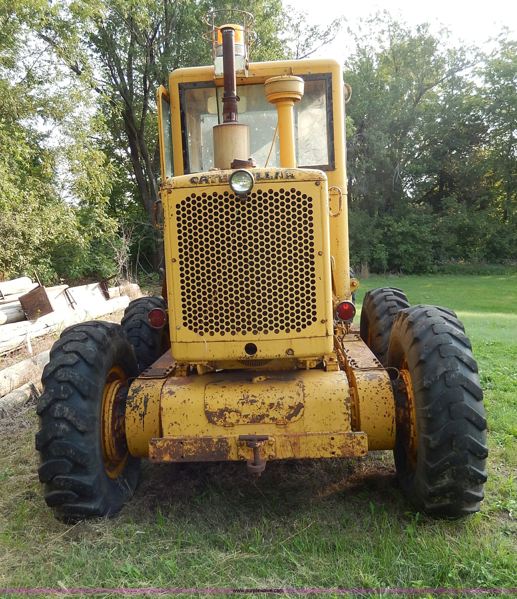 Purple Wave is selling a used Motor Grader in Kansas. This item is a 1960 Caterpillar 12 Road Patrol Series E motor grader with the following: Caterpillar diesel engine, Serial 99E2154, 6F-2R gears, Hi-Lo, Vinyl bench seat, Damaged, 12' moldboard, Side shift, Exterior work lights, Strobe light, Rear pin hitch, Block heater, 13.00-24 tires, Front and rear windows broken, Parts manual, Serial 99E2154