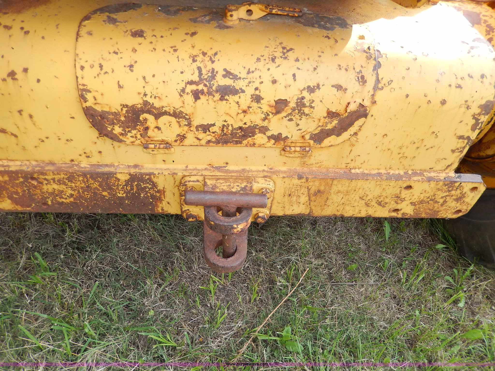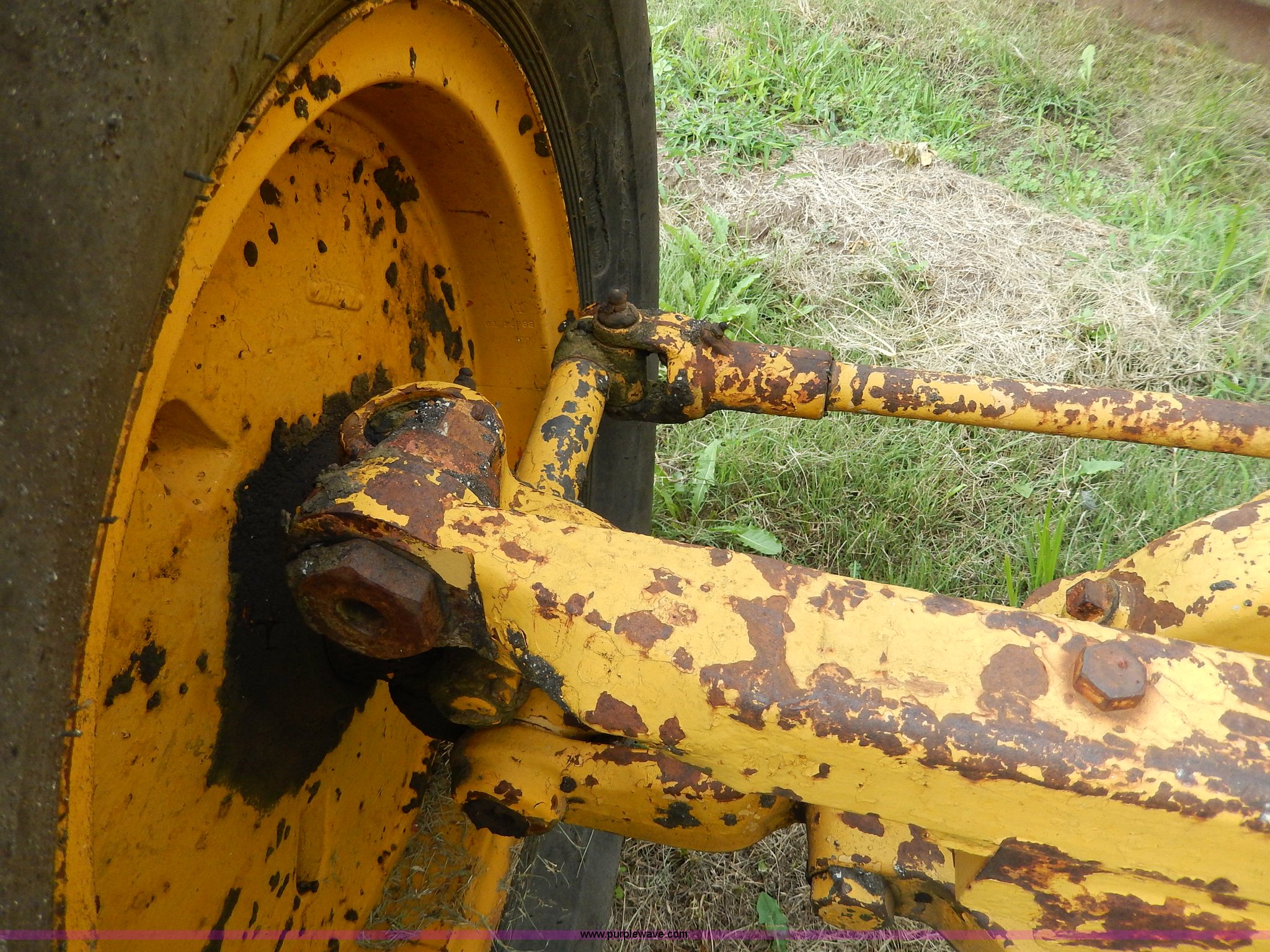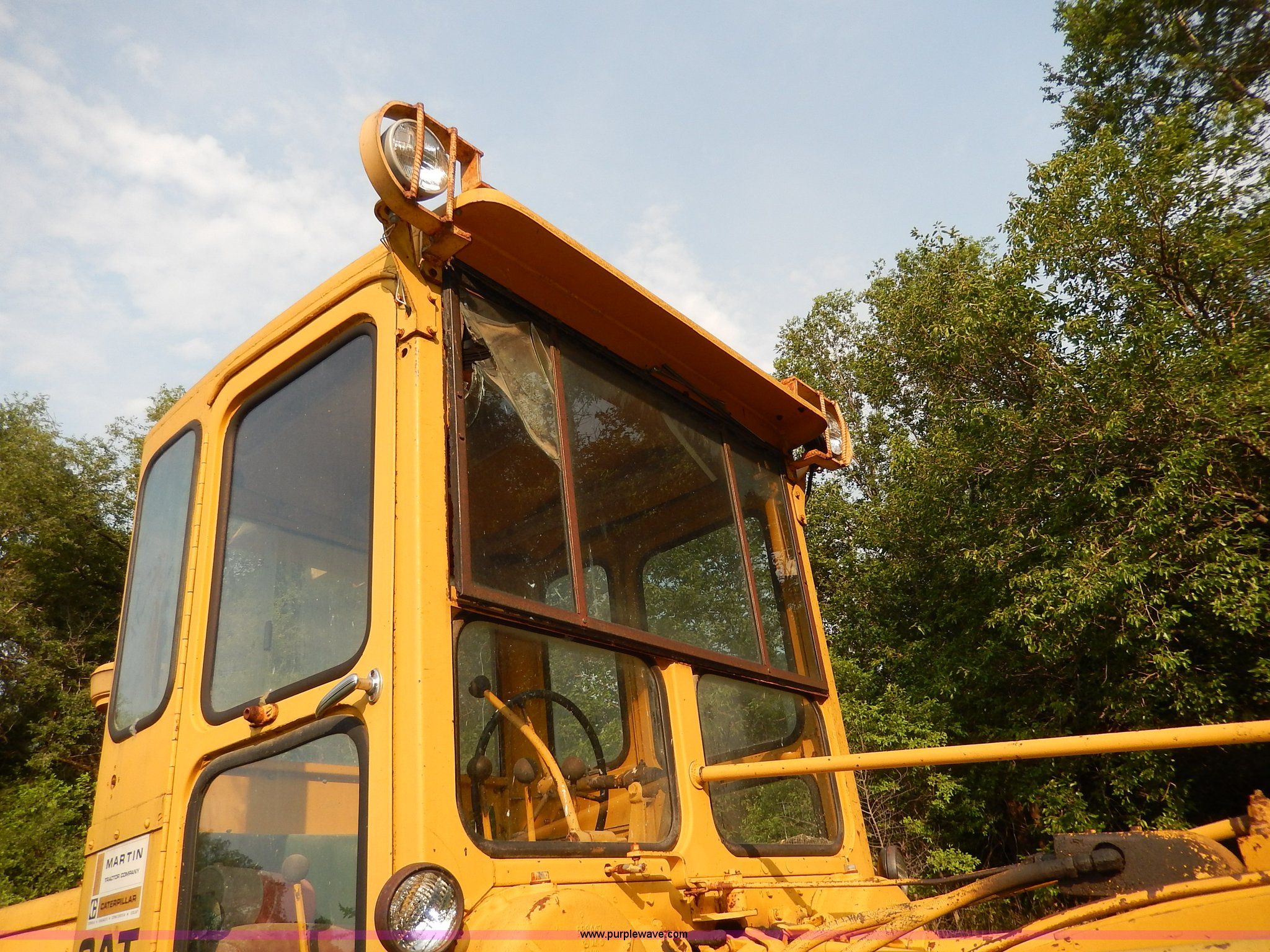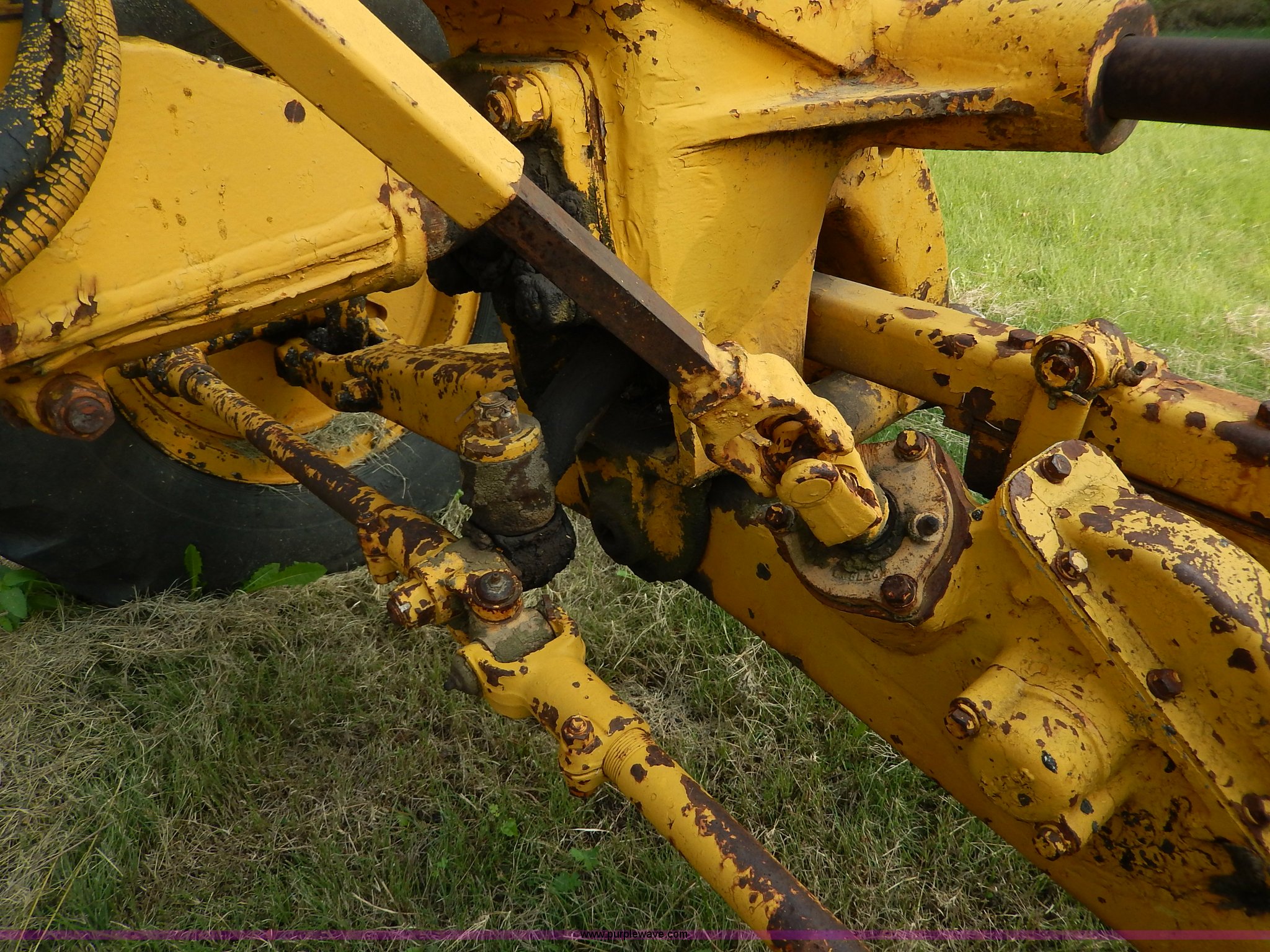 Purple Wave is selling a used Motor Grader in Kansas. This item is a 1960 Caterpillar 12 Road Patrol Series E motor grader with the following: Caterpillar diesel engine, Serial 99E2154, 6F-2R gears, Hi-Lo, Vinyl bench seat, Damaged, 12' moldboard, Side shift, Exterior work lights, Strobe light, Rear pin hitch, Block heater, 13.00-24 tires, Front and rear windows broken, Parts manual, Serial 99E2154