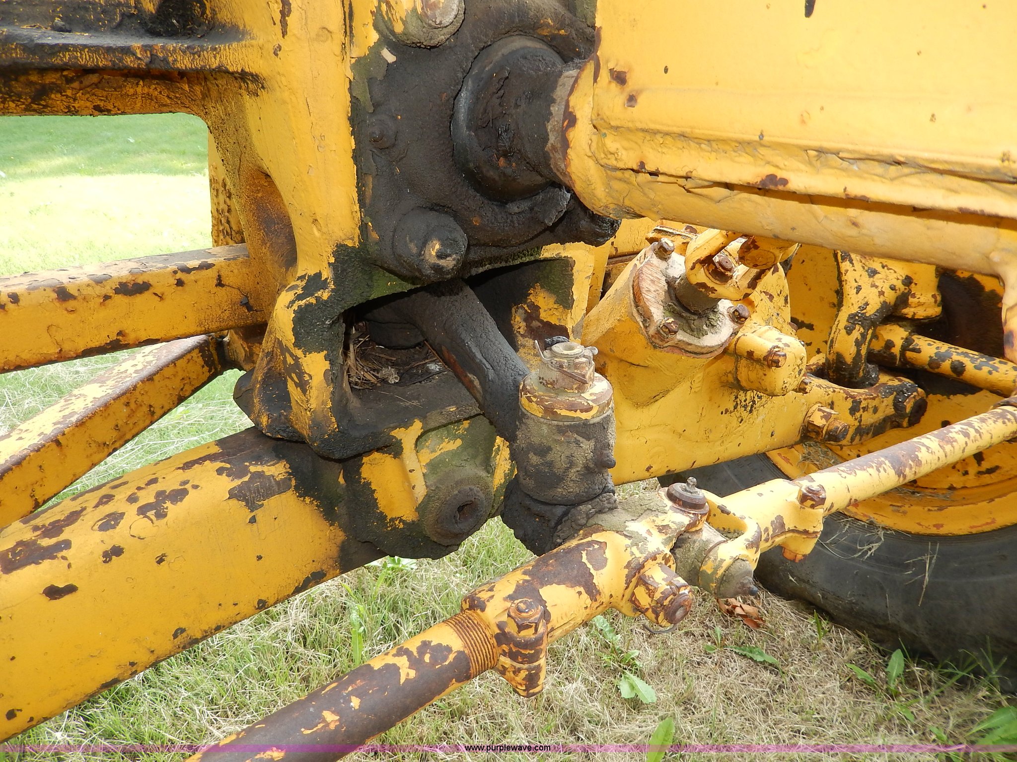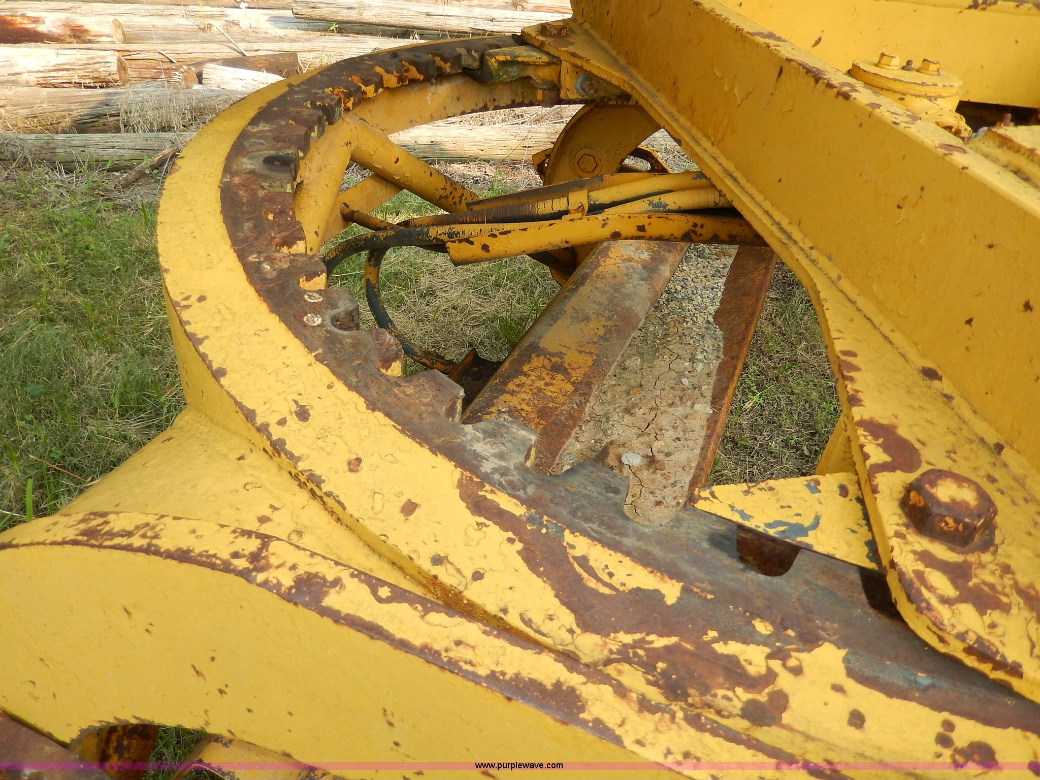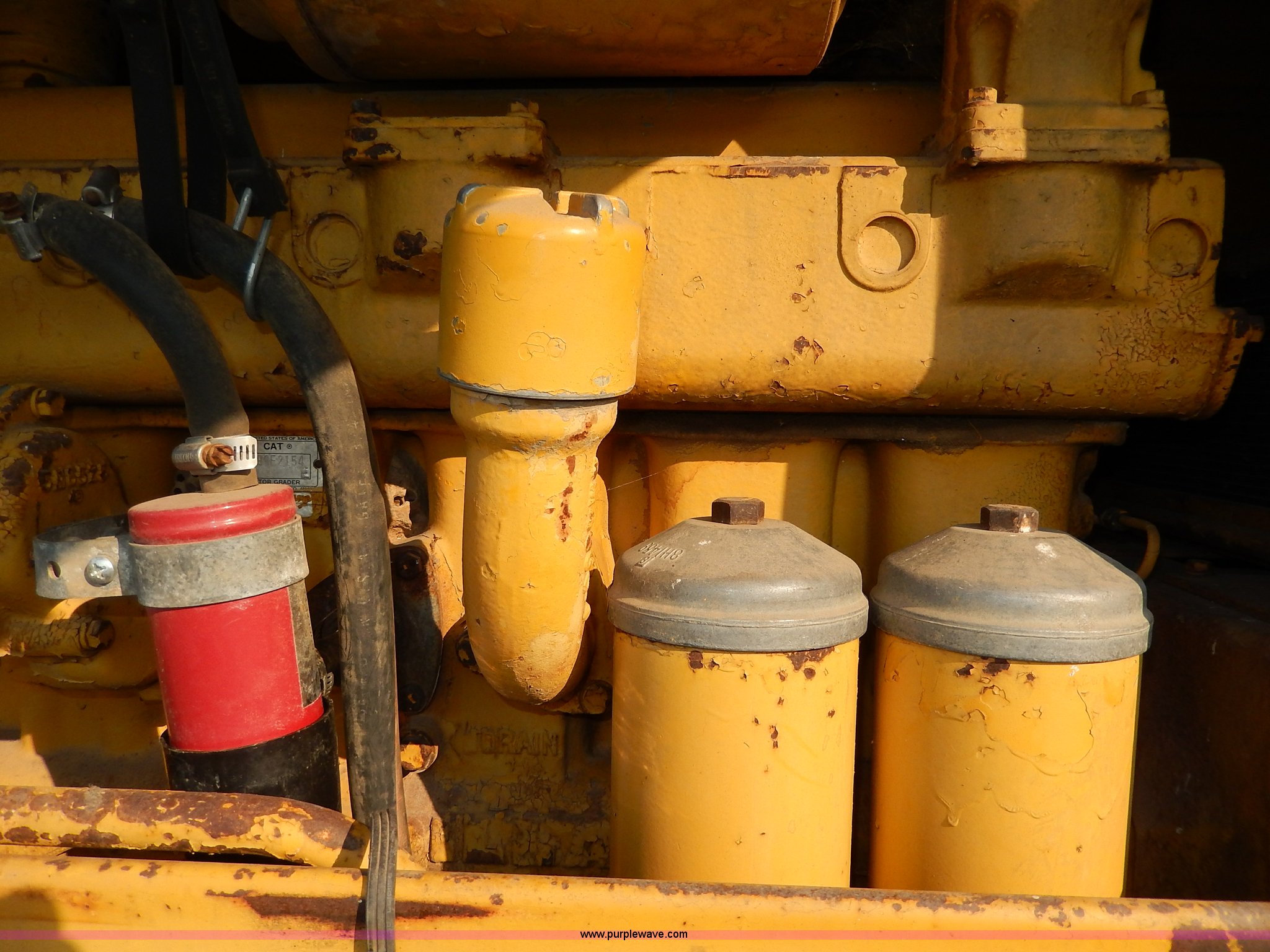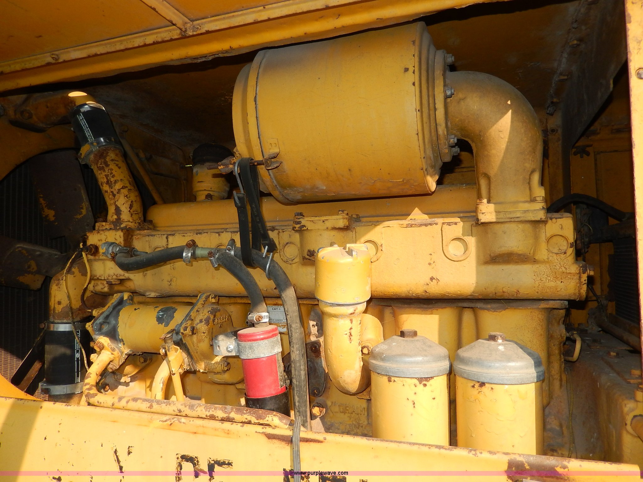 Purple Wave is selling a used Motor Grader in Kansas. This item is a 1960 Caterpillar 12 Road Patrol Series E motor grader with the following: Caterpillar diesel engine, Serial 99E2154, 6F-2R gears, Hi-Lo, Vinyl bench seat, Damaged, 12' moldboard, Side shift, Exterior work lights, Strobe light, Rear pin hitch, Block heater, 13.00-24 tires, Front and rear windows broken, Parts manual, Serial 99E2154
