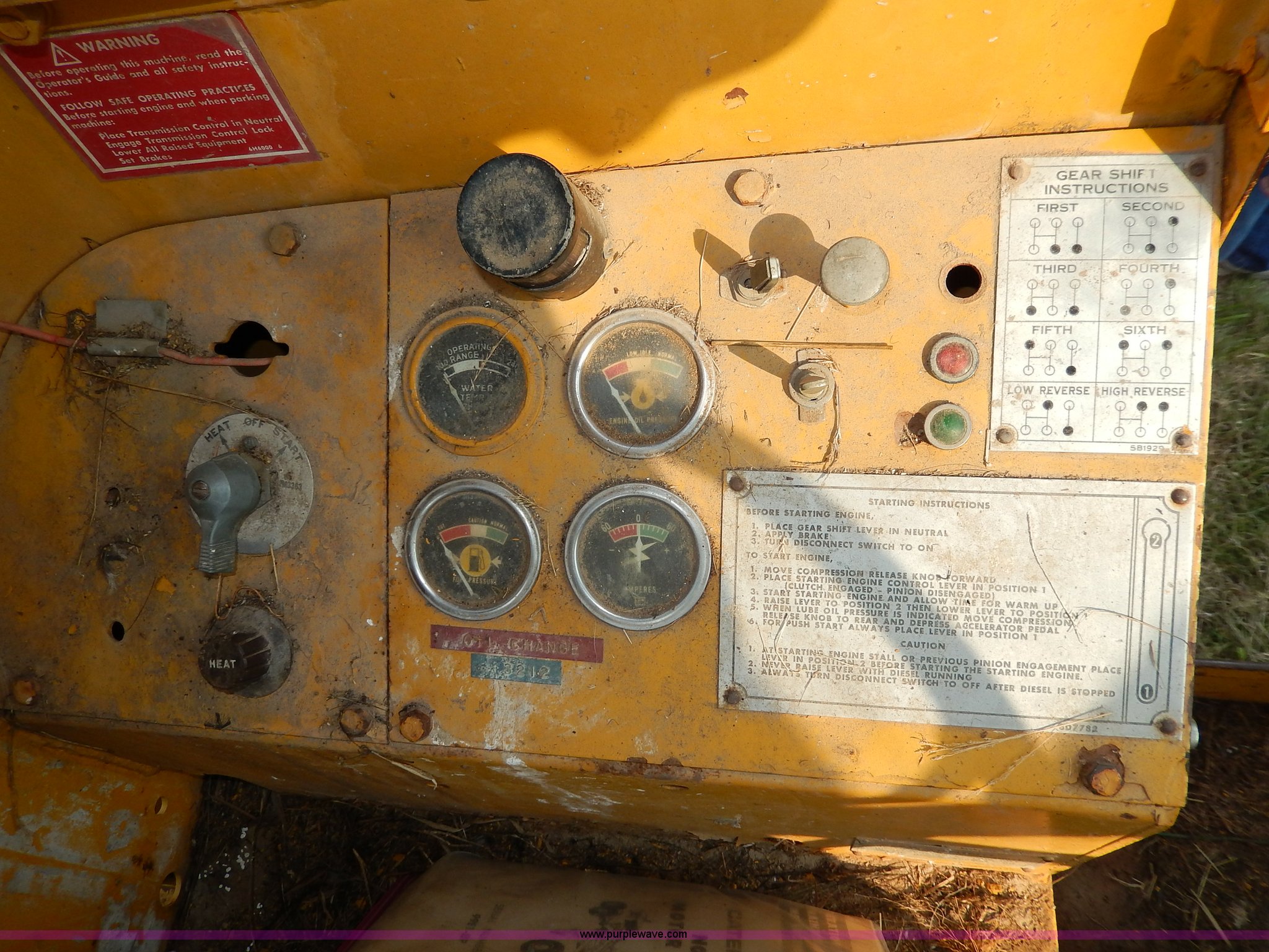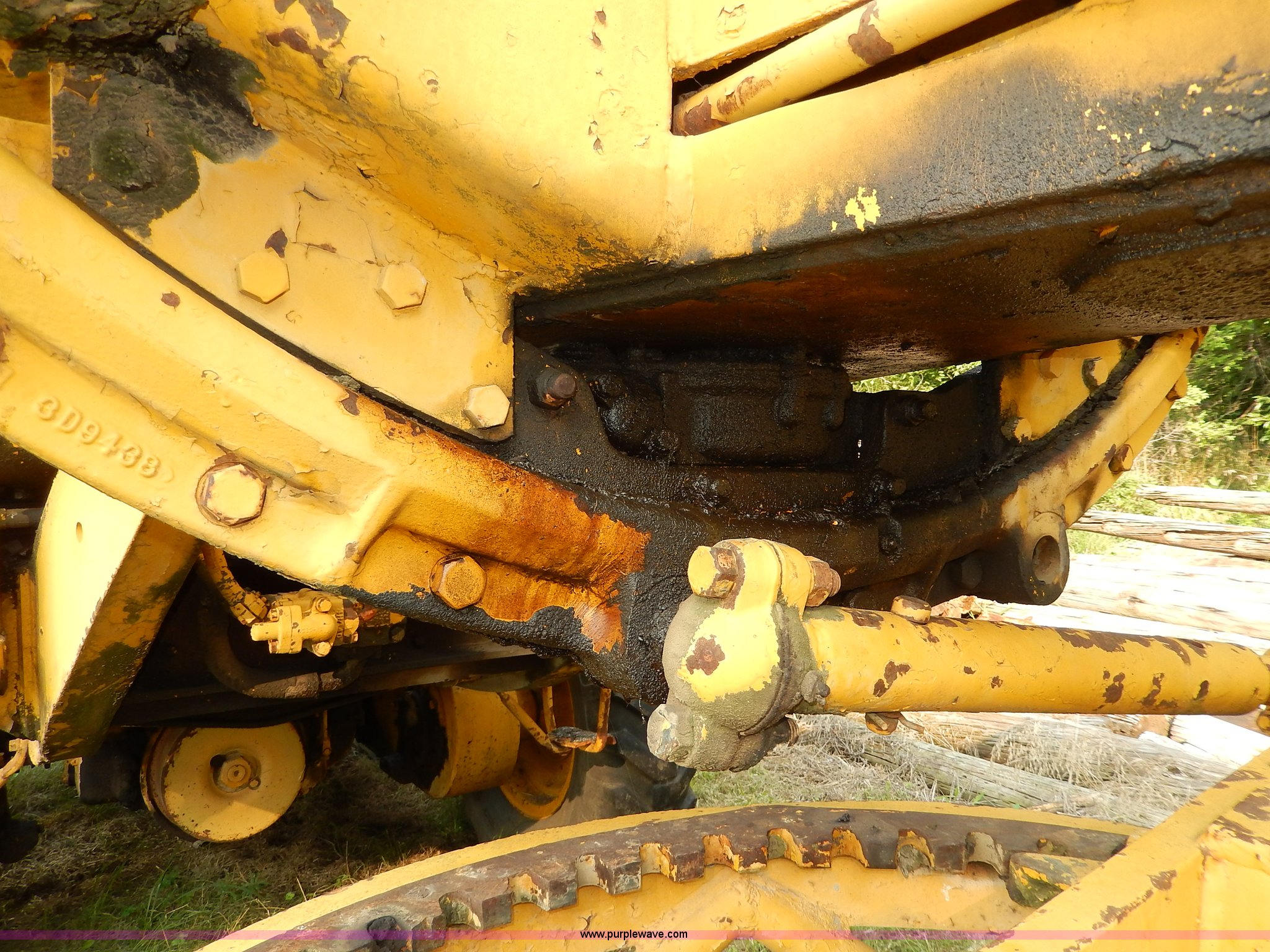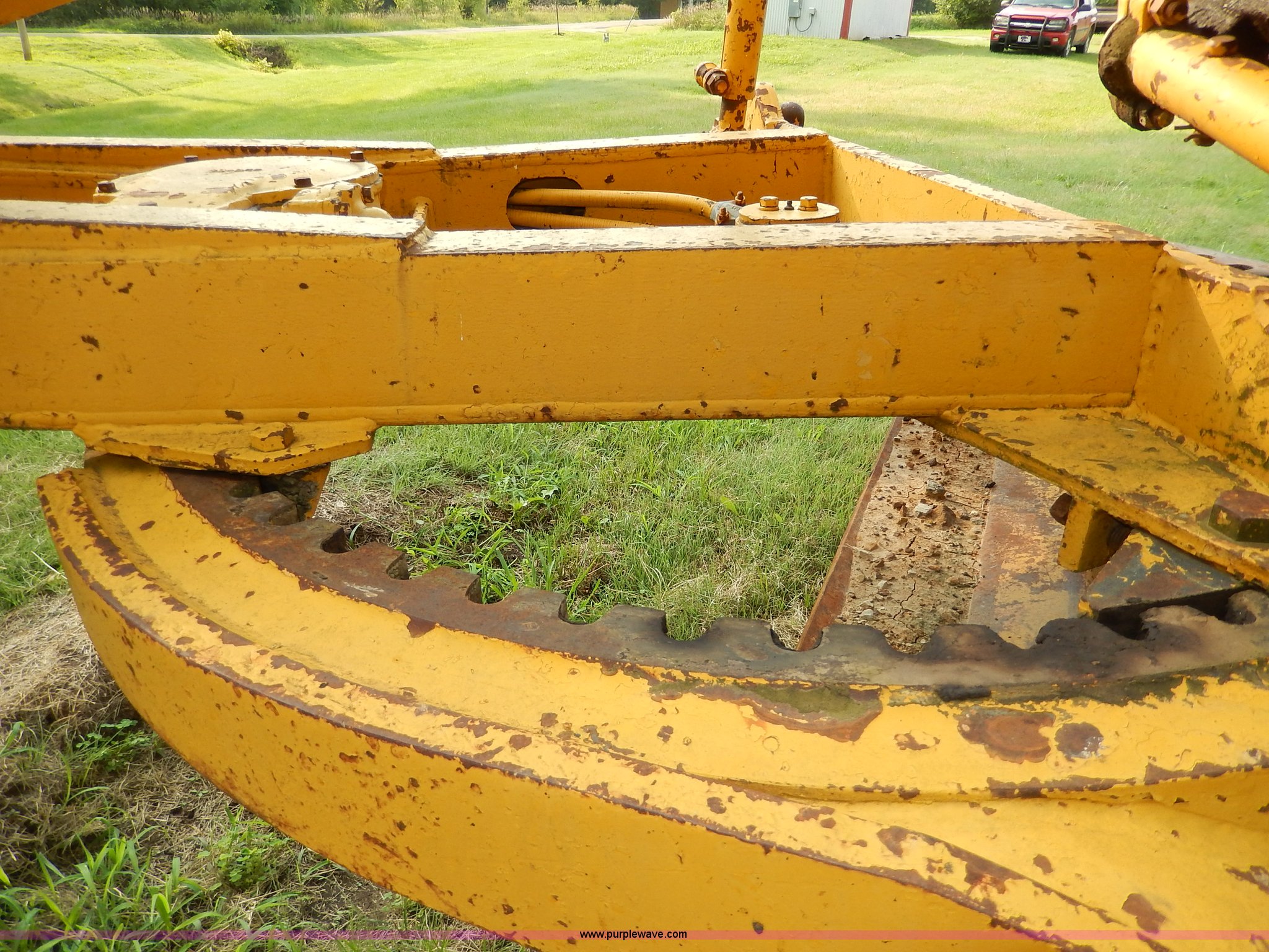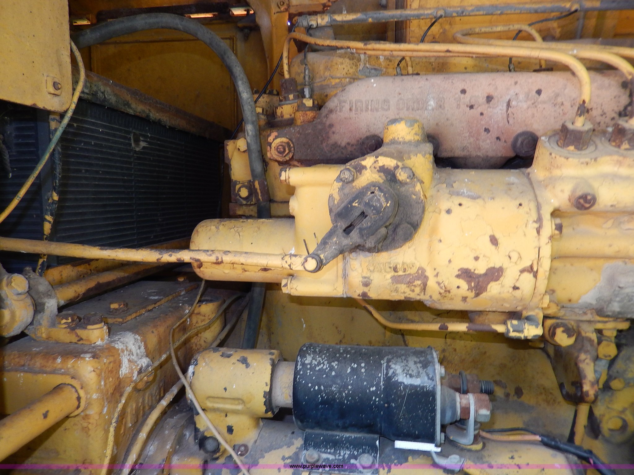 Purple Wave is selling a used Motor Grader in Kansas. This item is a 1960 Caterpillar 12 Road Patrol Series E motor grader with the following: Caterpillar diesel engine, Serial 99E2154, 6F-2R gears, Hi-Lo, Vinyl bench seat, Damaged, 12' moldboard, Side shift, Exterior work lights, Strobe light, Rear pin hitch, Block heater, 13.00-24 tires, Front and rear windows broken, Parts manual, Serial 99E2154