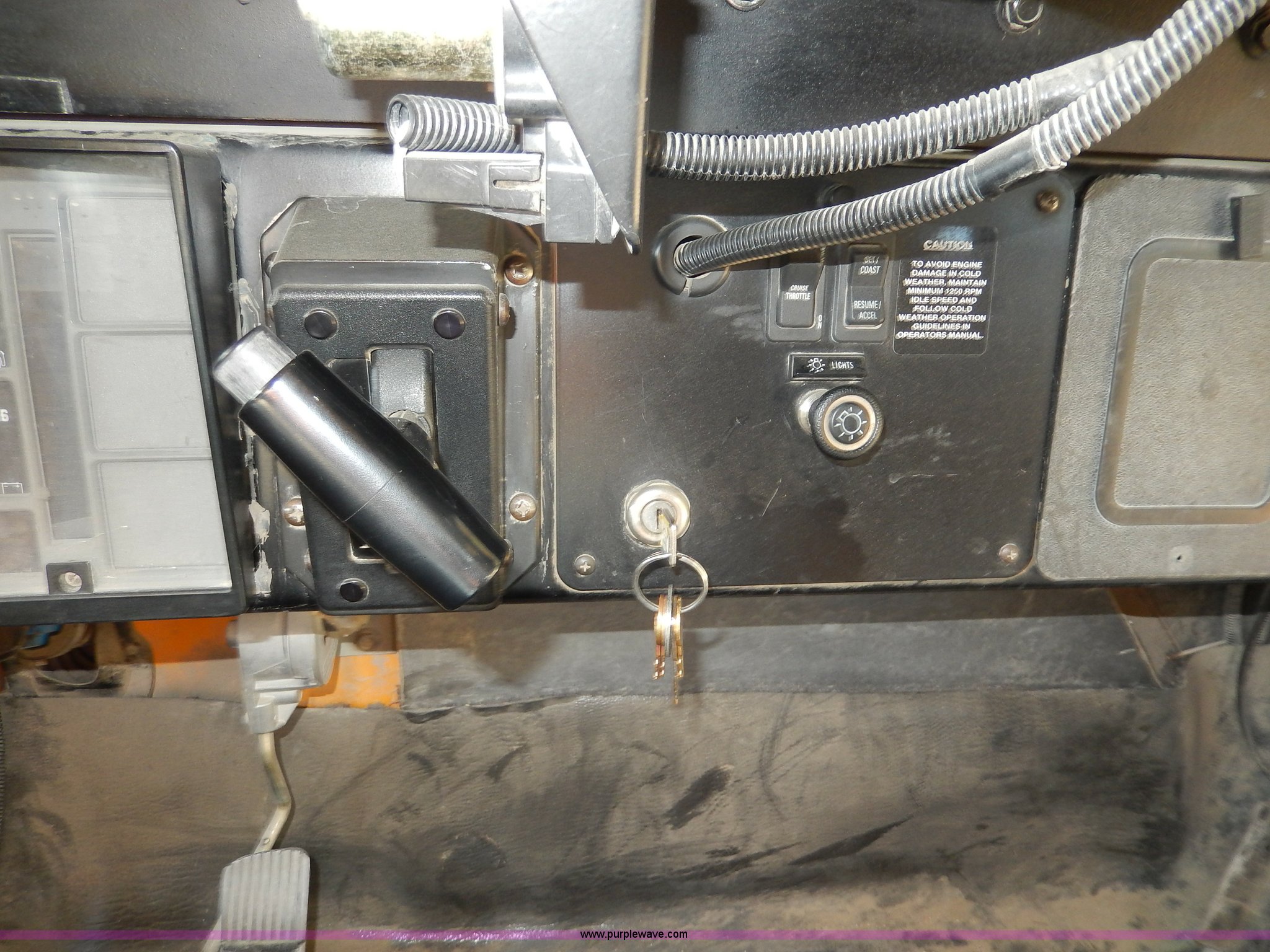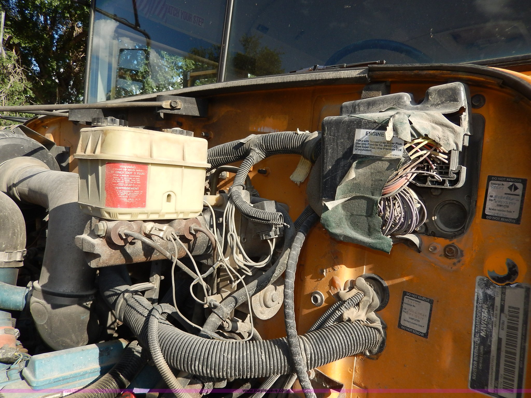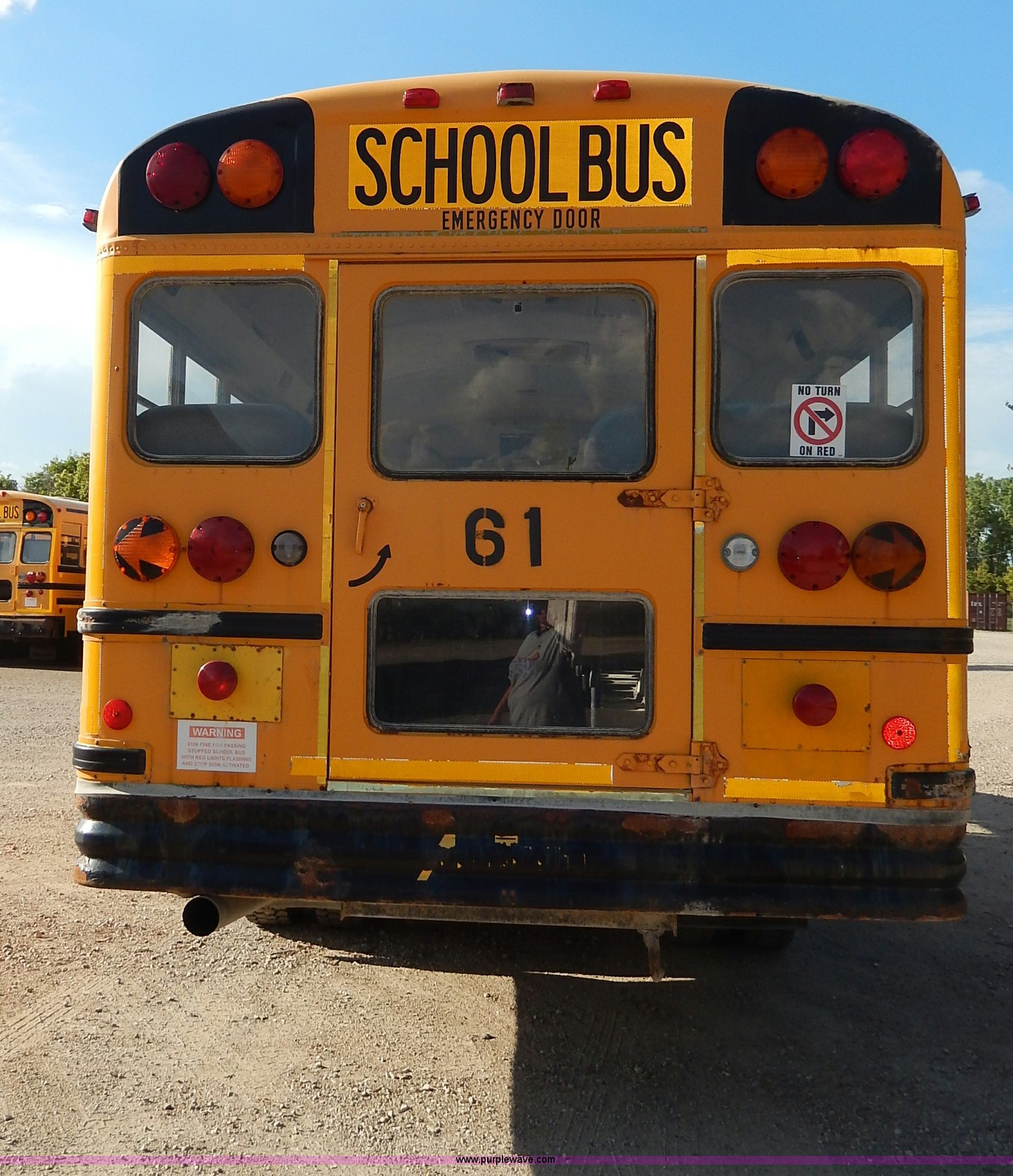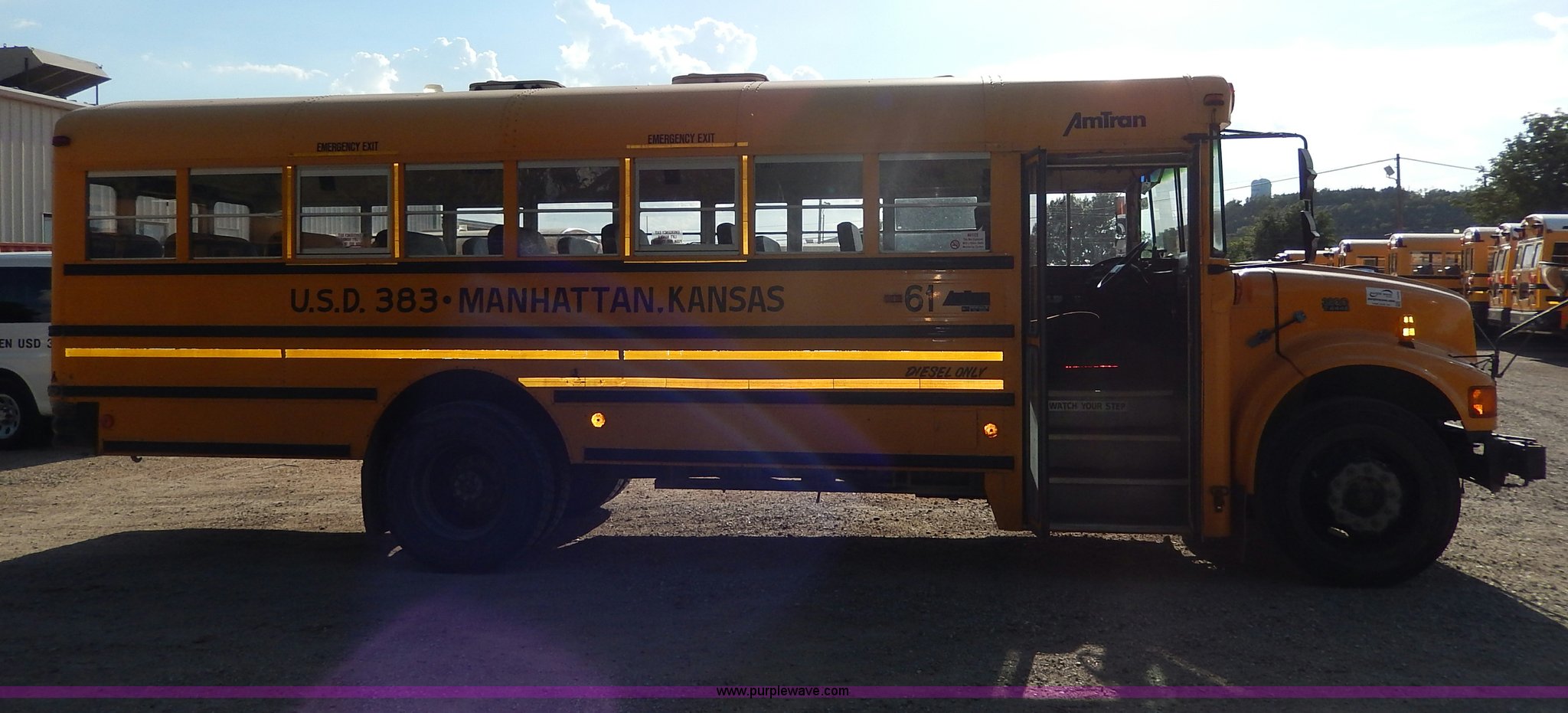 Purple Wave is selling a used Bus in Kansas. This item is a 1998 International 3800 school bus with the following: 59,319 miles on odometer, 9,594 hours on meter, International T444E 7.3L V8 diesel engine, Automatic transmission, Heat, AM/FM, Heated mirrors, Manual windows and locks, Cloth driver's interior, Vinyl passenger interior, 47 passenger capacity, Block heater, Front and rear tow hooks, Backup alarm, 10R22.5 tires, GVWR 25,500 lbs, Rust, Paint peeling