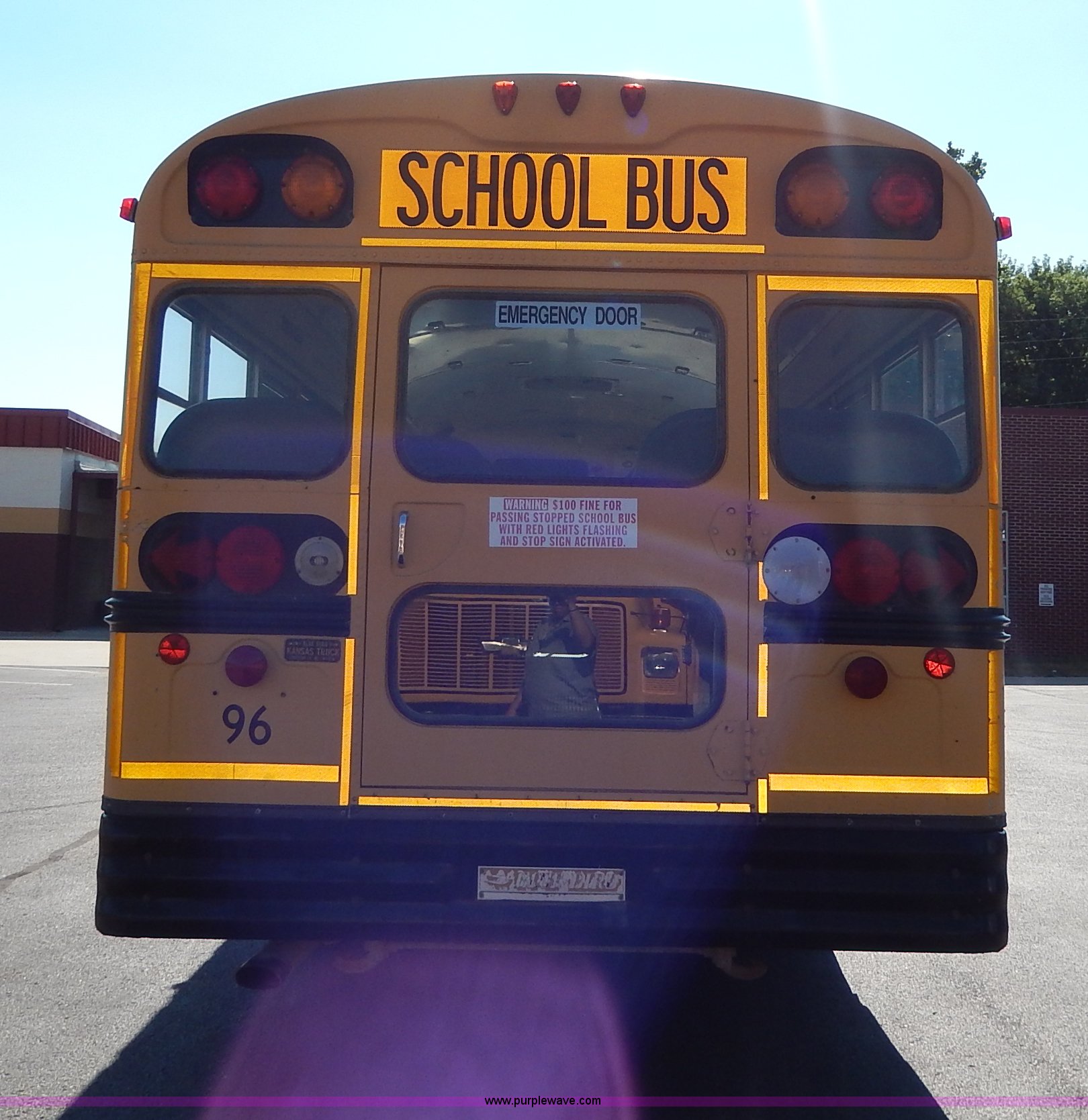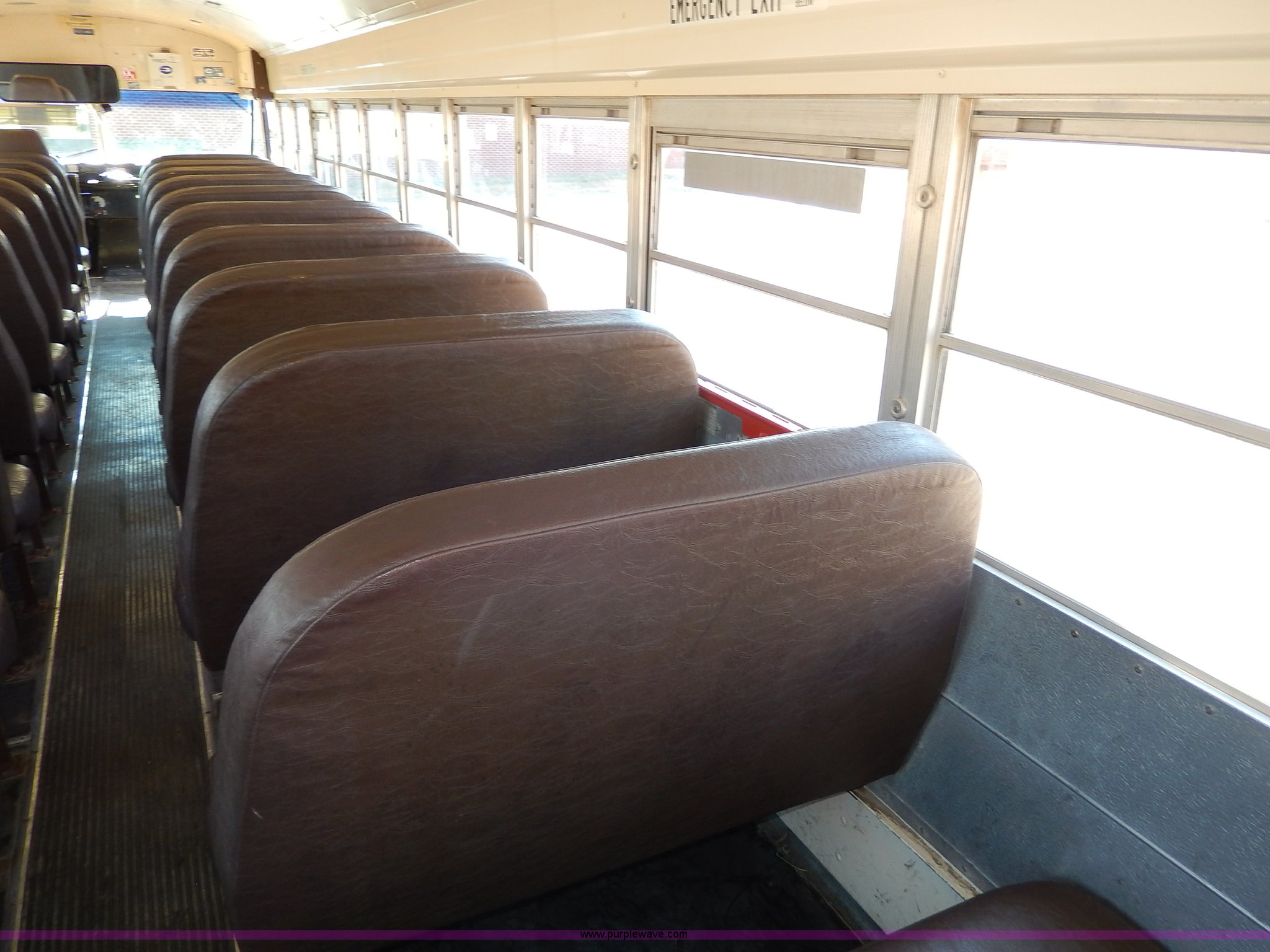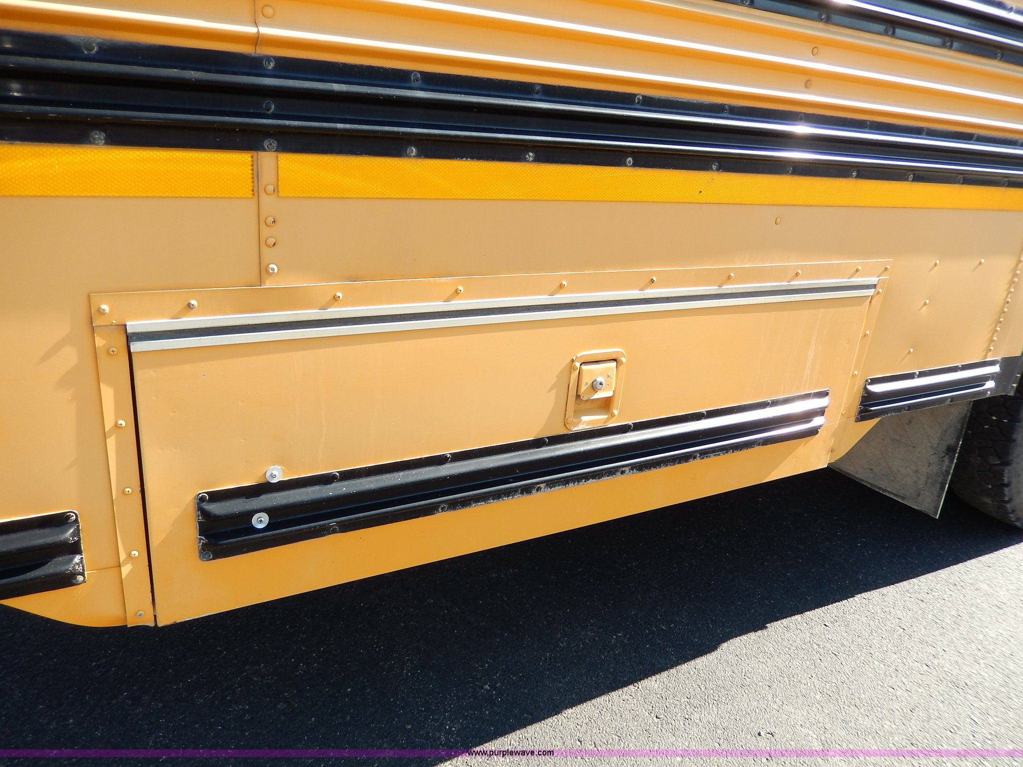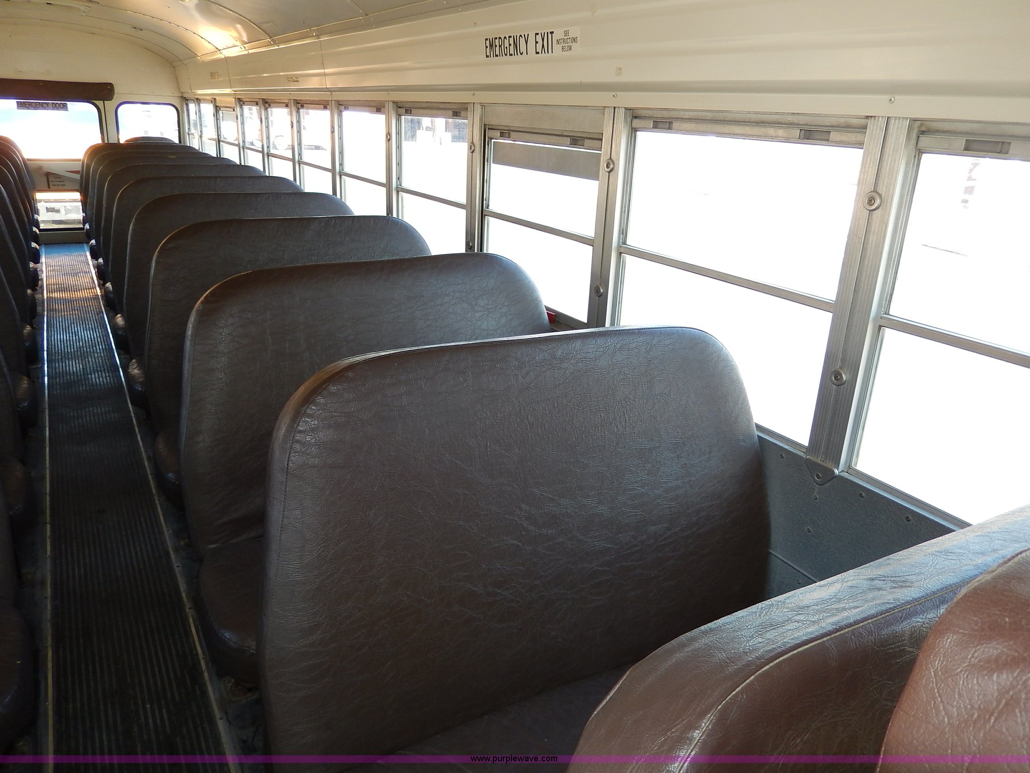 Purple Wave is selling a used Bus in Kansas. This item is a 1997 Chevrolet B7 Blue Bird school bus with the following: 153,480 miles on odometer, 6.0L V8 gas engine, Automatic transmission, Heat, Manual windows and locks, Vinyl interior, 65 passenger capacity, (4) underside storage compartments, Rear tow hooks, Hi-idle button, 10R22.5 tires, GVWR 27,060 lbs, Interior/exterior cosmetic damage, Paint peeling/chipping, Unit# 96