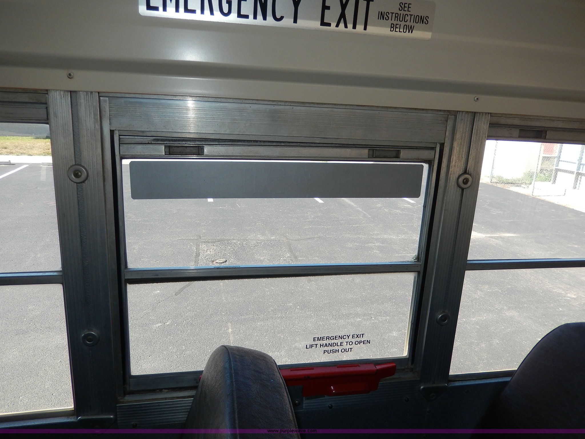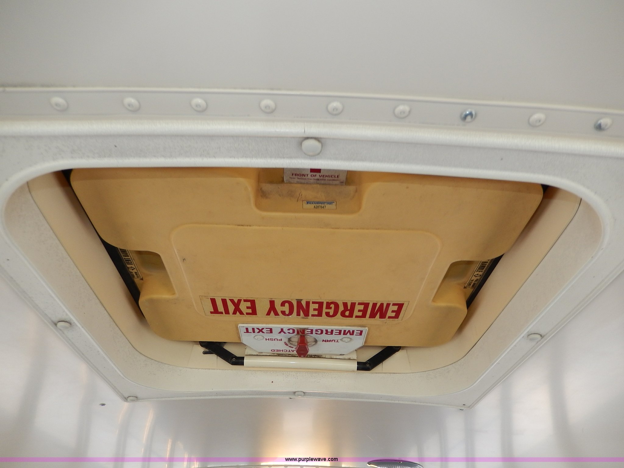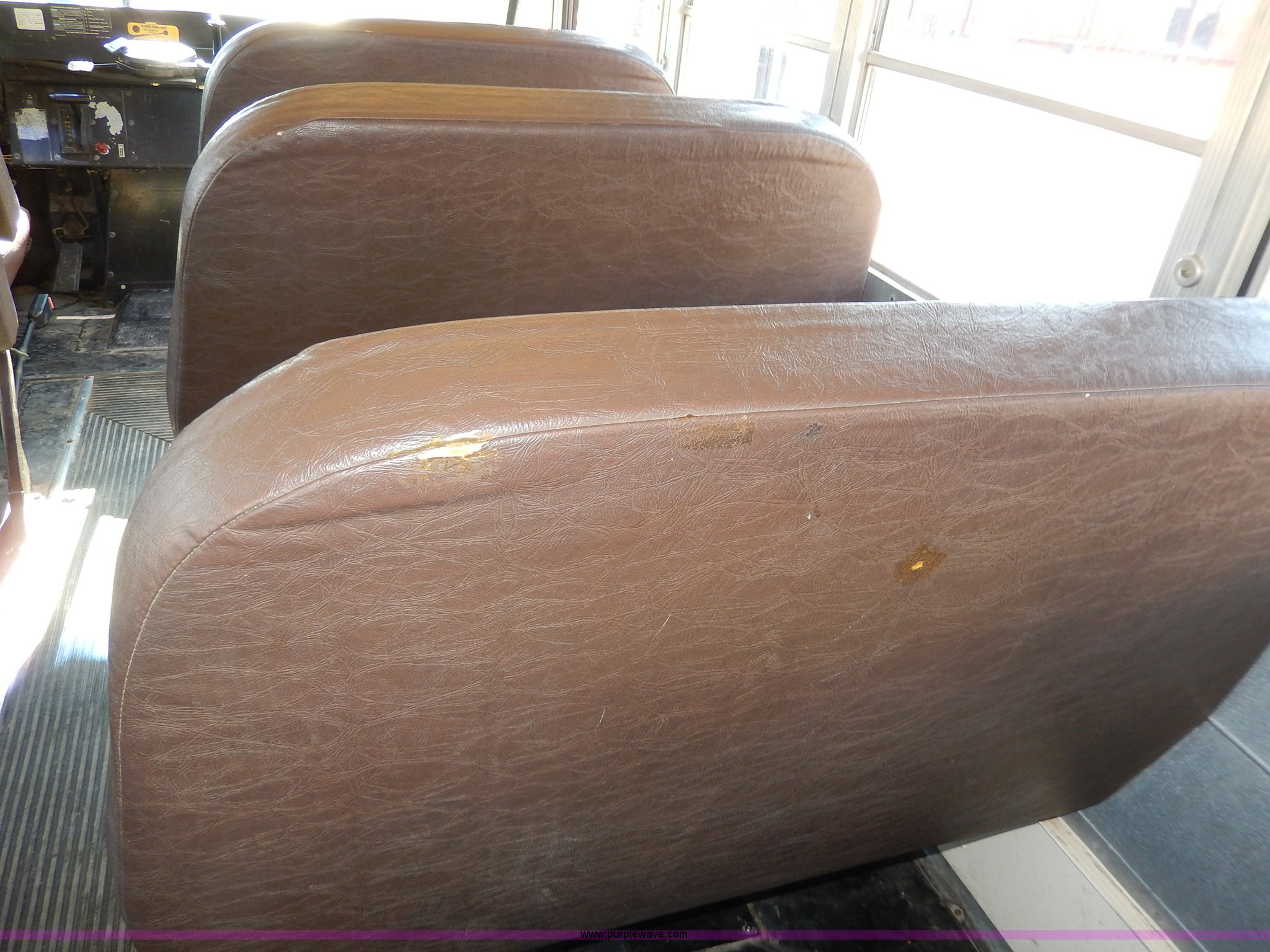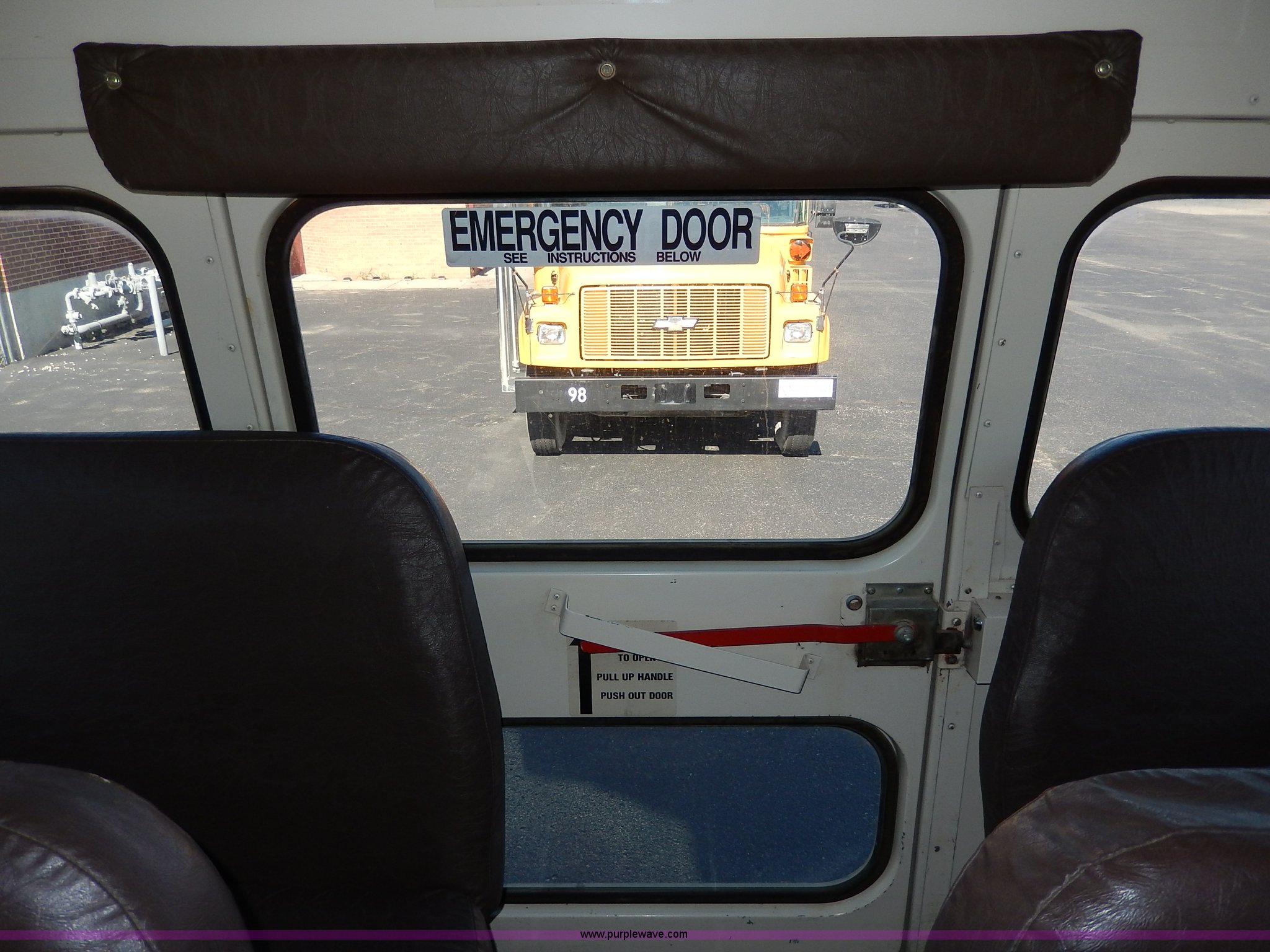 Purple Wave is selling a used Bus in Kansas. This item is a 1997 Chevrolet B7 Blue Bird school bus with the following: 153,480 miles on odometer, 6.0L V8 gas engine, Automatic transmission, Heat, Manual windows and locks, Vinyl interior, 65 passenger capacity, (4) underside storage compartments, Rear tow hooks, Hi-idle button, 10R22.5 tires, GVWR 27,060 lbs, Interior/exterior cosmetic damage, Paint peeling/chipping, Unit# 96