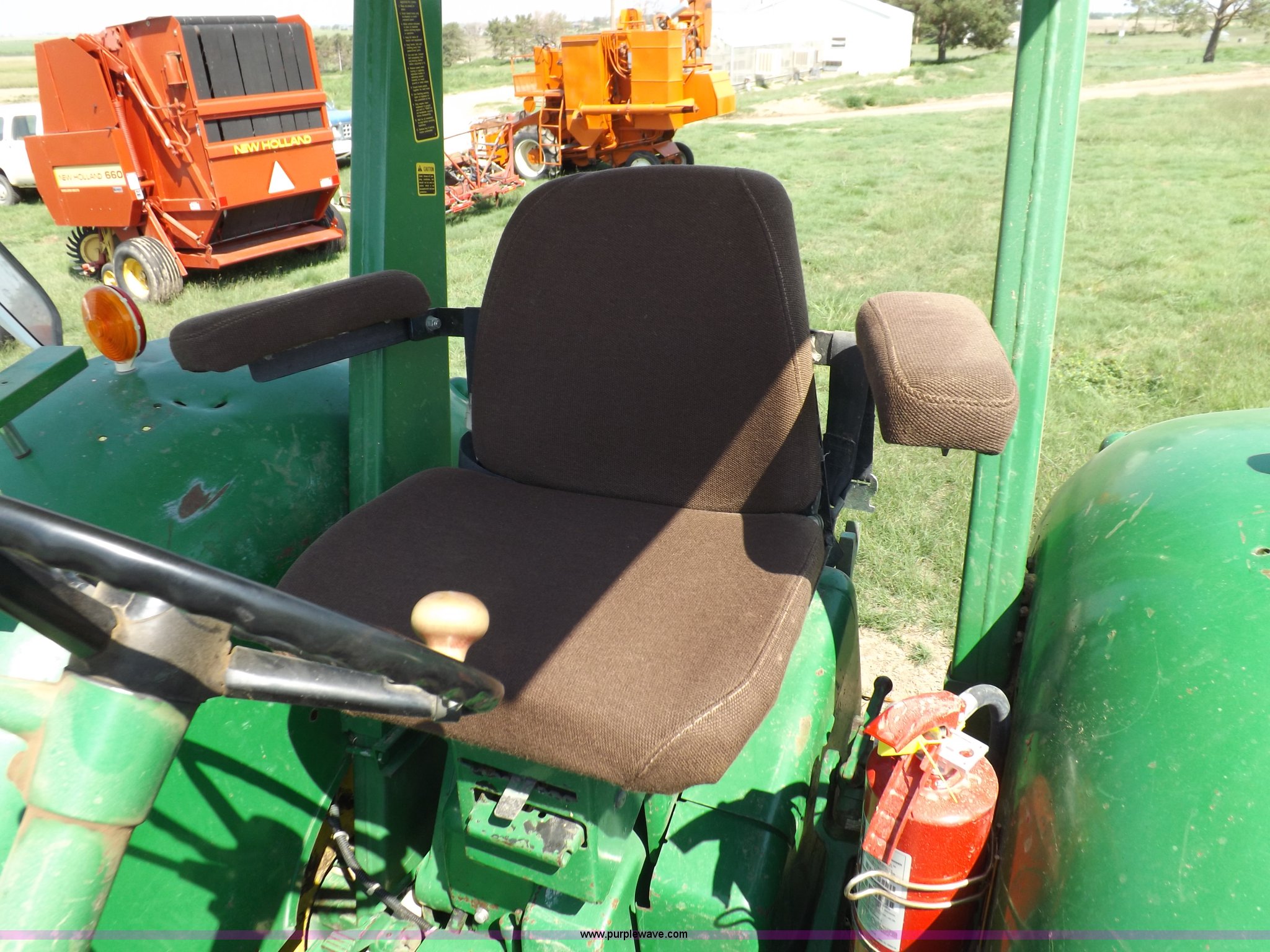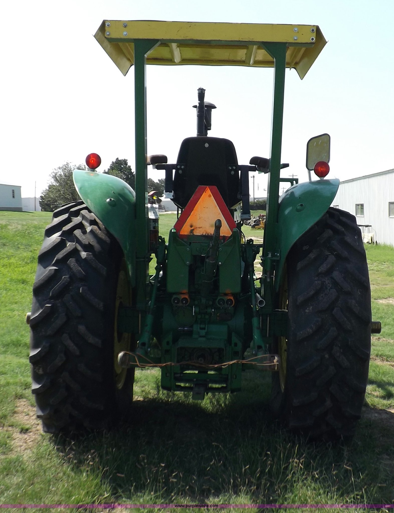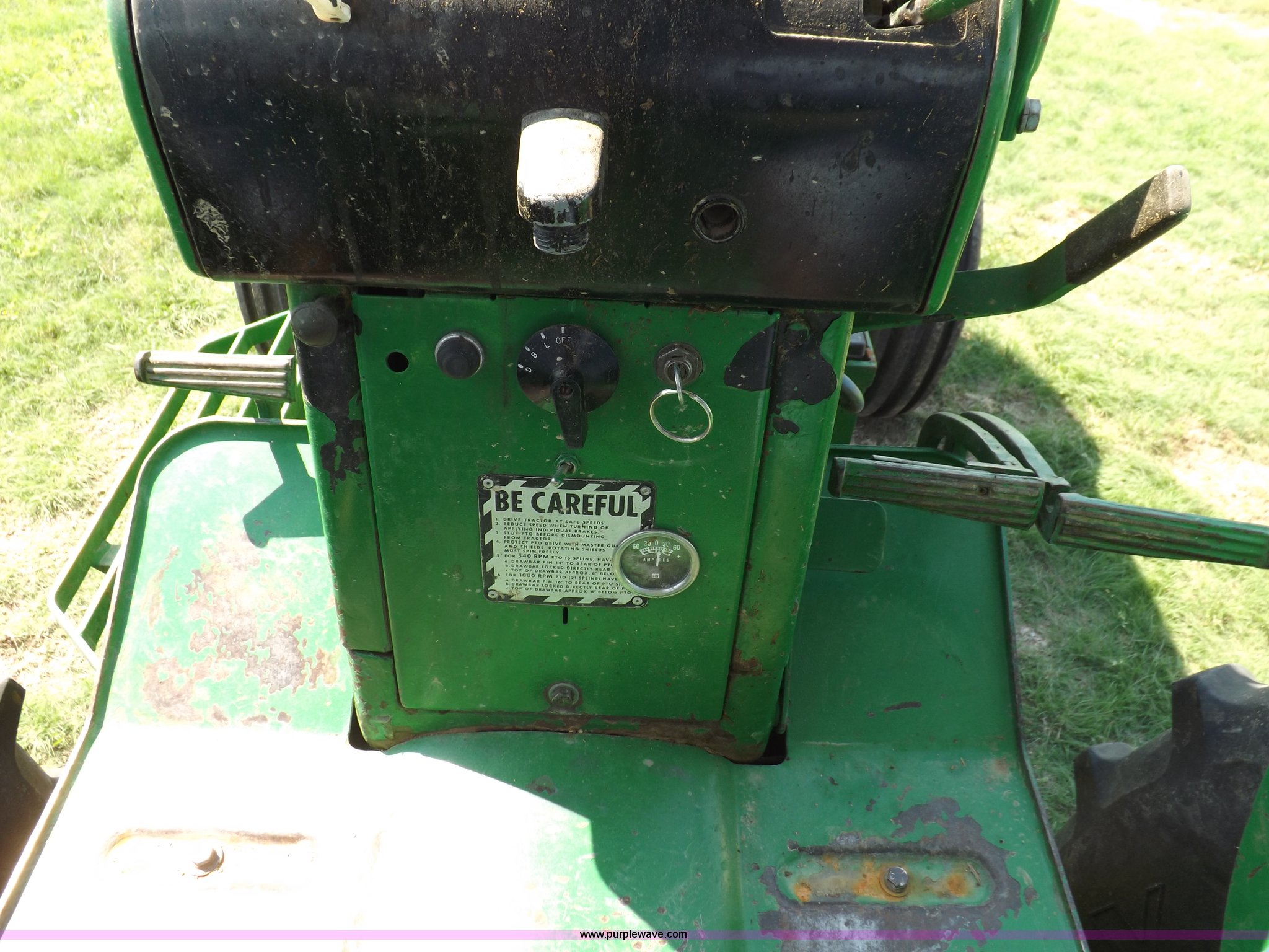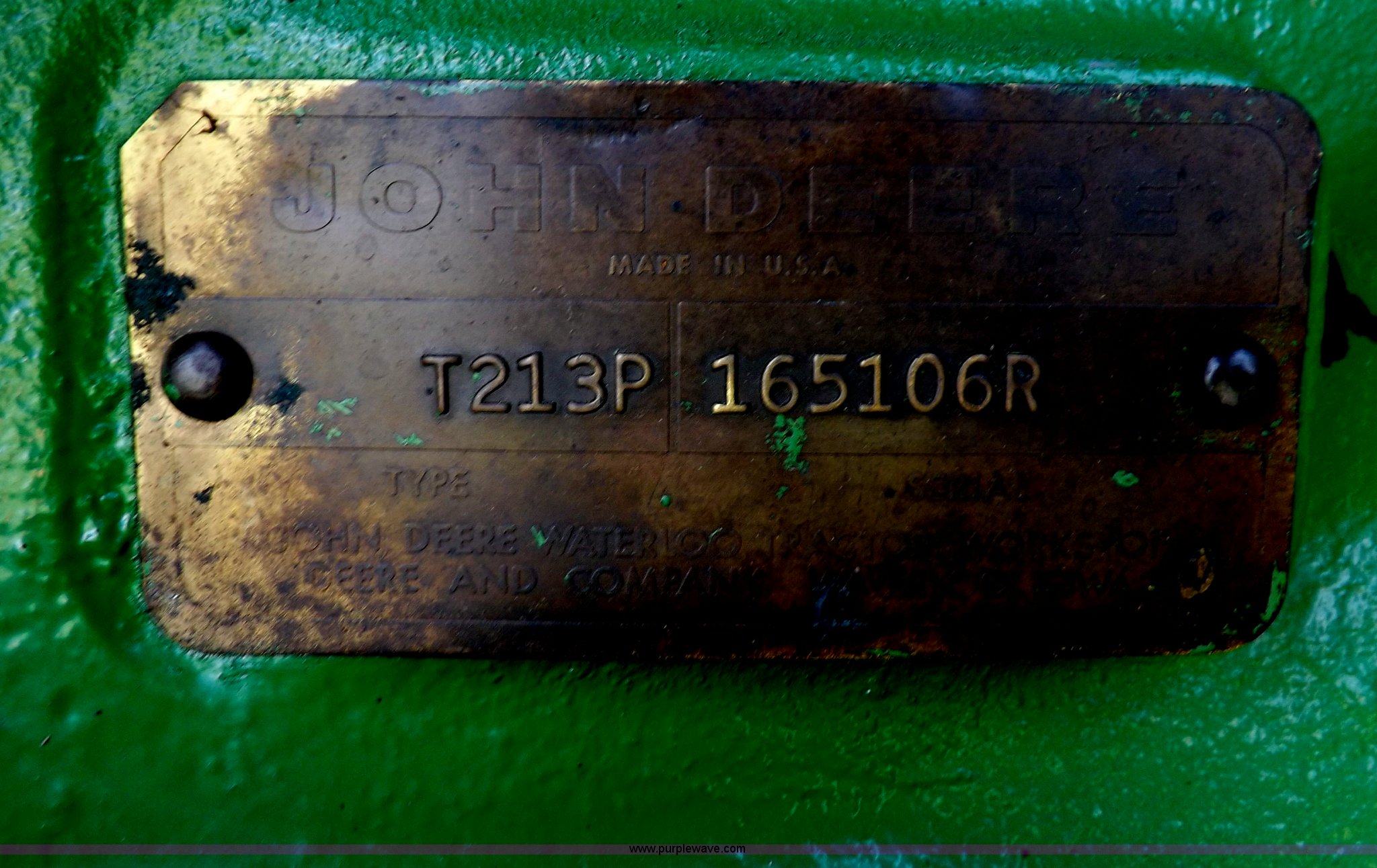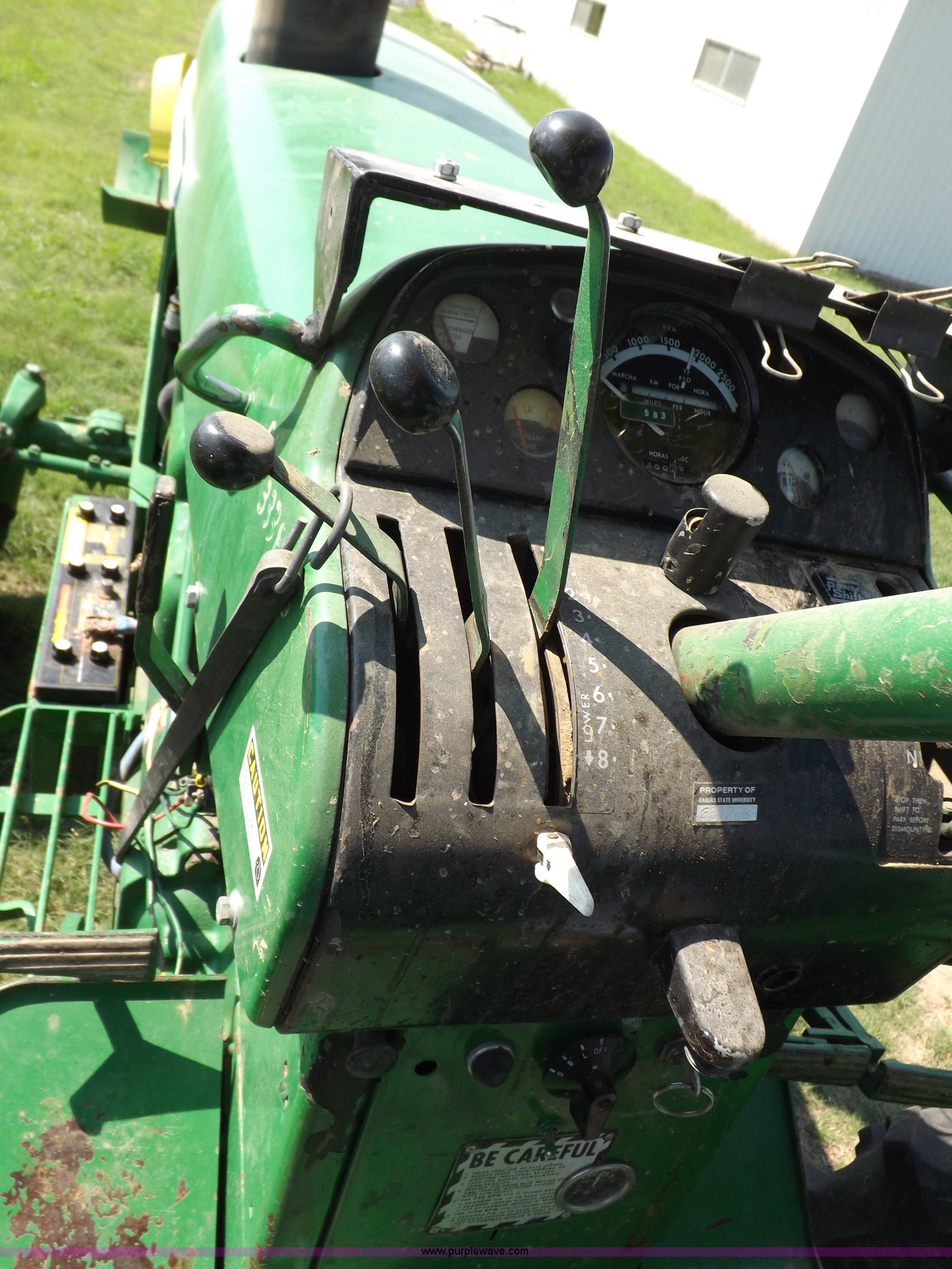 Purple Wave is selling a used Tractor in Kansas. This item is a John Deere 4020 tractor with the following: 499 hours on meter, John Deere six cylinder diesel engine, Powershift transmission, 8F-4R gears, Spring suspension seat, Three point, Draw bar, Auxiliary outlet, 1000 PTO, Inoperable, Sun shades, Shop built front tank carrier, Wheel weights, 102" wheelbase, 10.00-16 front tires, 18.4R34 rear tires, Serial T213P165106R