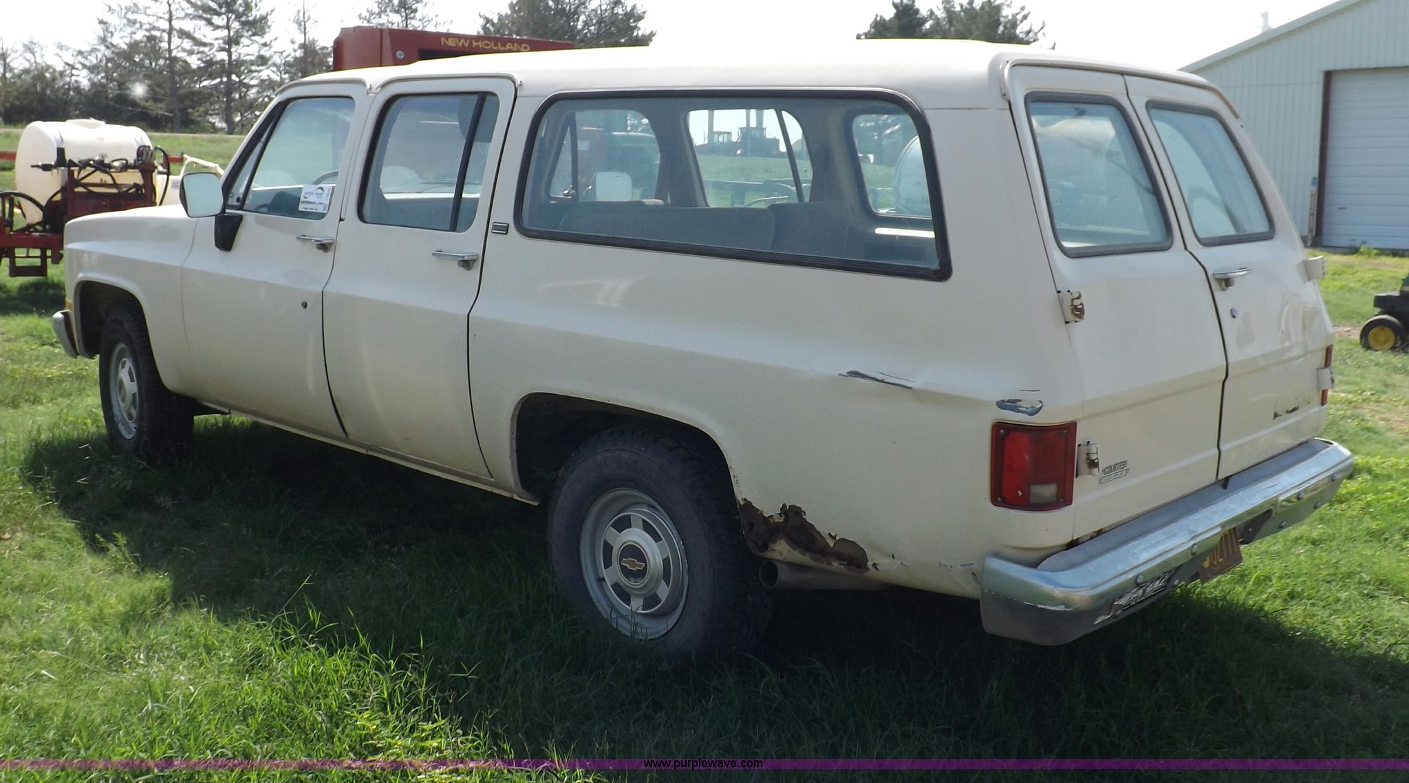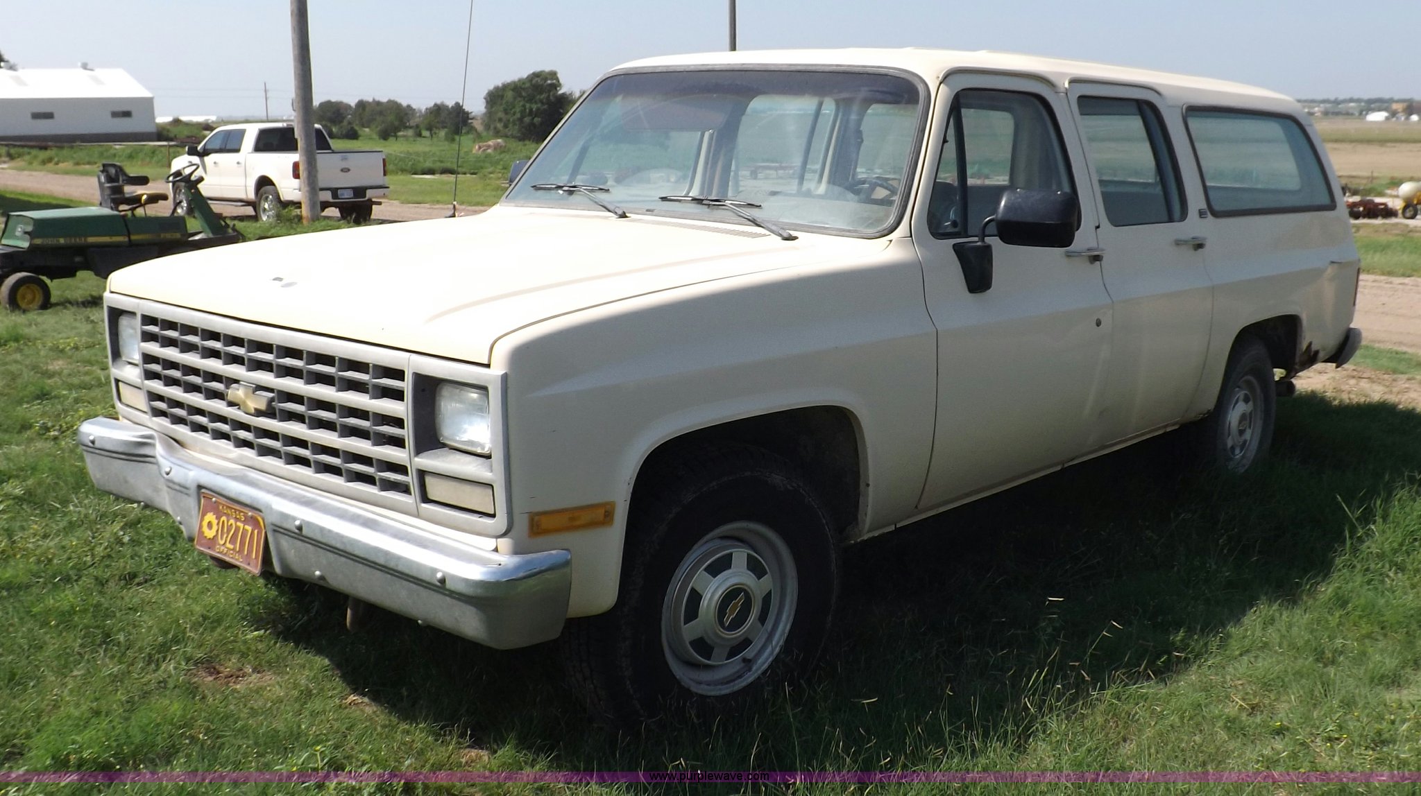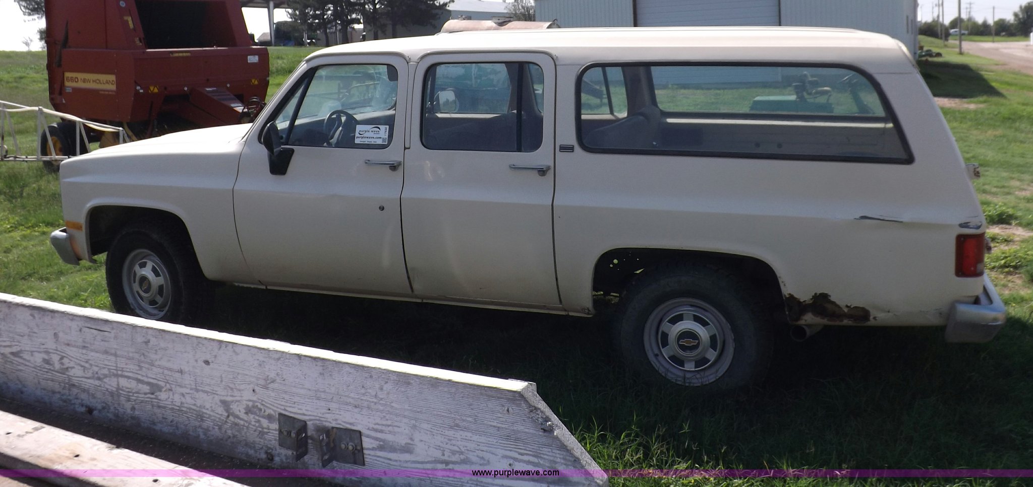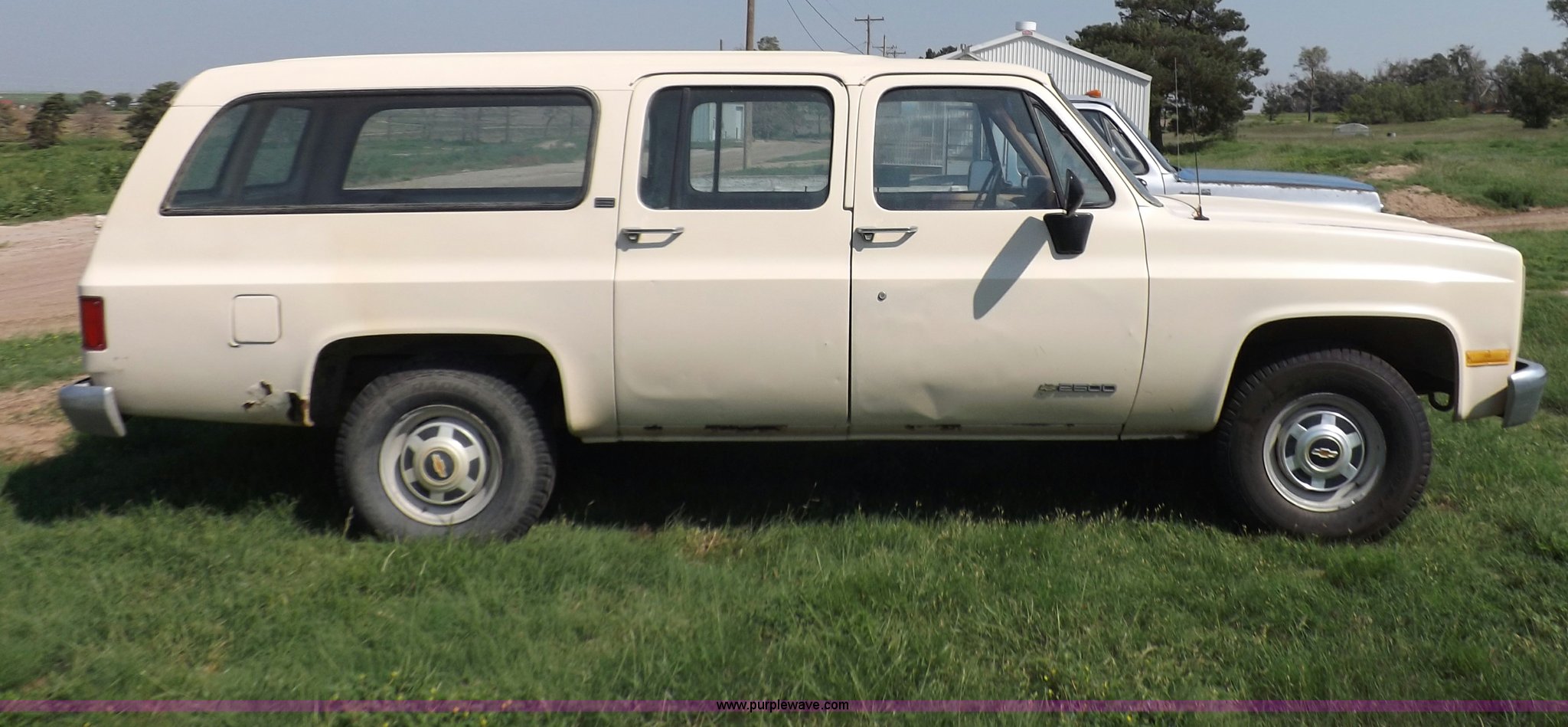 Purple Wave is selling a used Passenger Vehicle in Kansas. This item is a 1990 Chevrolet Suburban R2500 SUV with the following: 170,511 miles on odometer, 5.7L V8 OHV 16V gas engine, Automatic transmission, AM/FM, Manual windows and locks, Vinyl interior, 235/85R16 tires, Rust, Dents, Bumper damaged, Dash cracked, Windshield broken