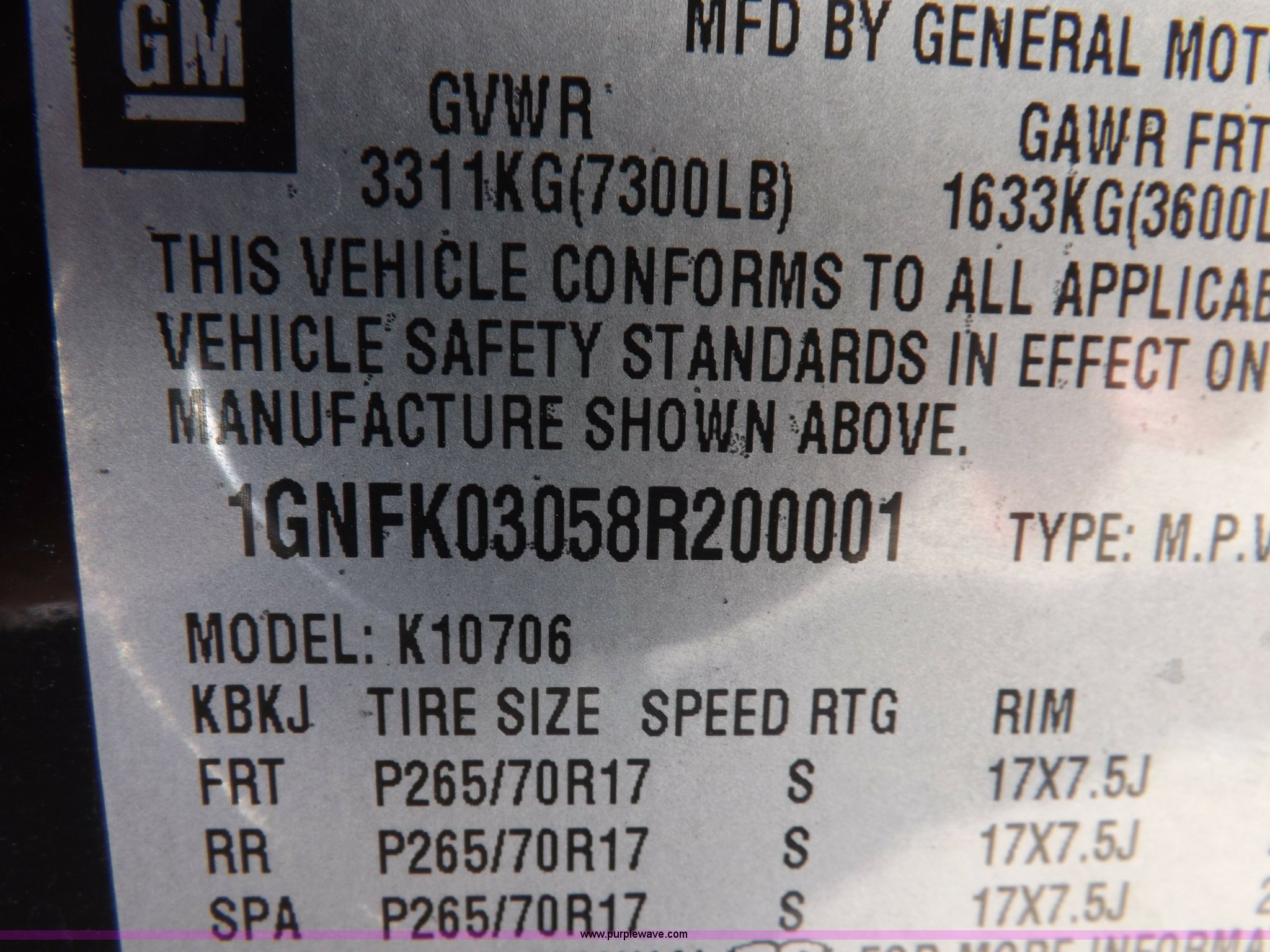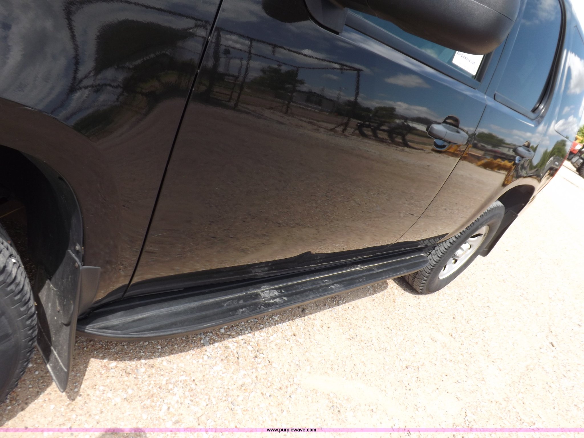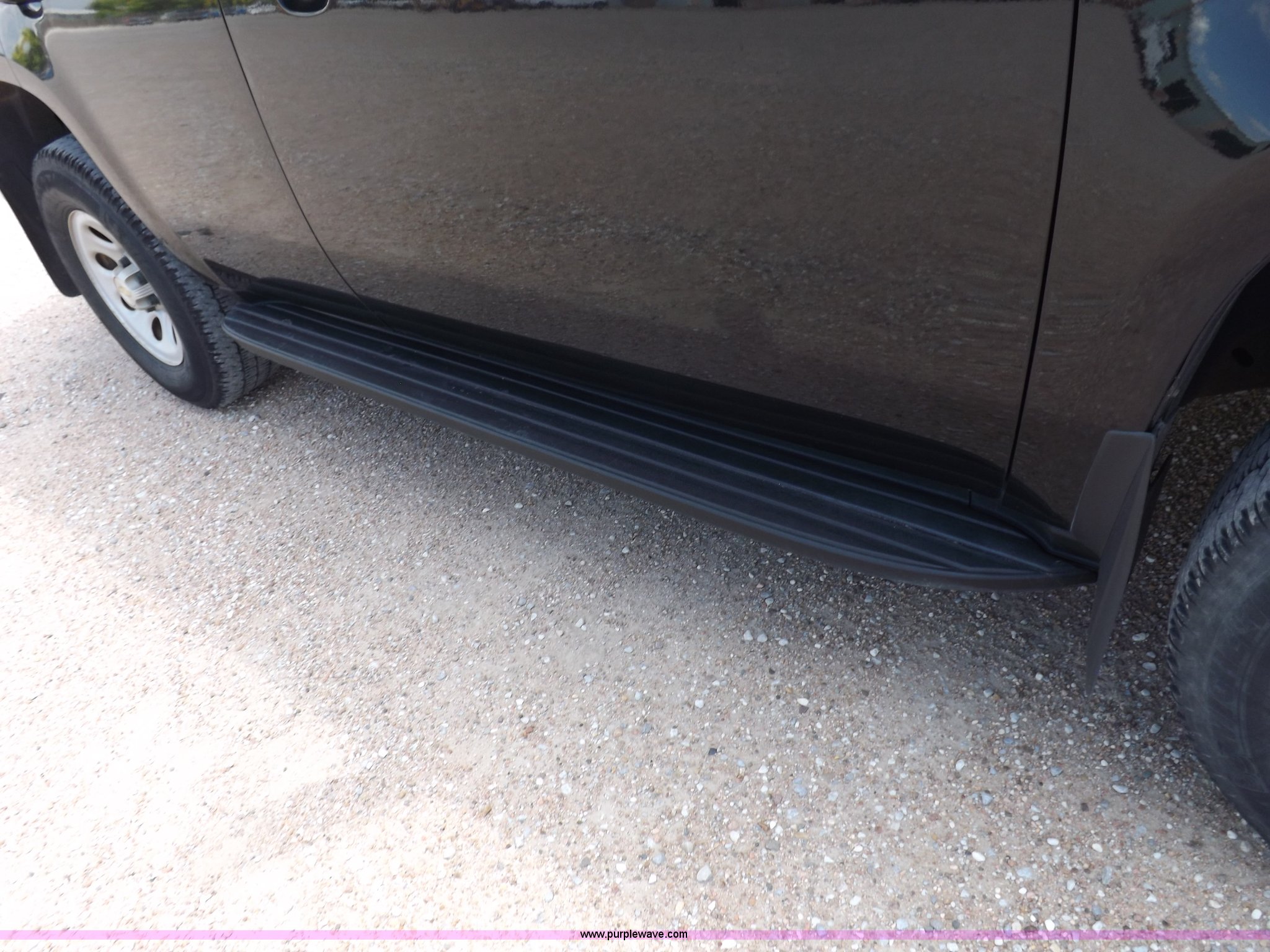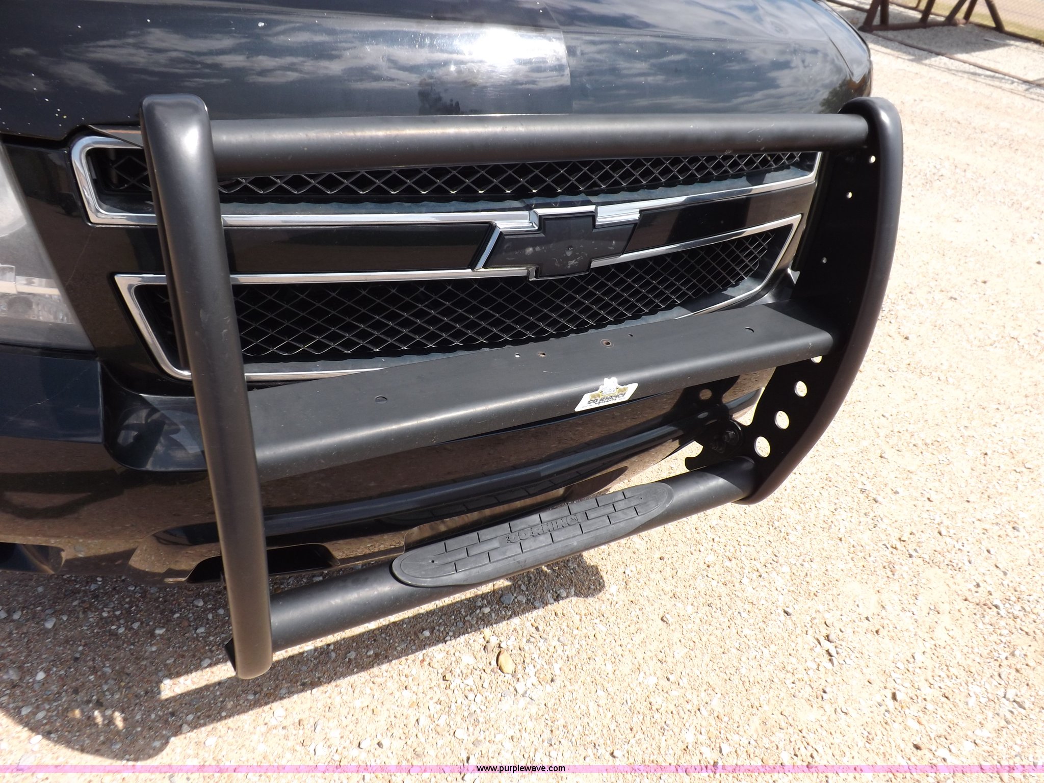 Purple Wave is selling a used Passenger Vehicle in Kansas. This item is a 2008 Chevrolet Tahoe Police SUV with the following: 122,048 miles on odometer, 5.3L V8 OHV 16V FFV gas engine, Automatic transmission, Four wheel drive, AC and heat, Tilt, Cruise, AM/FM/CD, Power windows, locks, mirrors, and seats, Cloth front interior, Vinyl rear interior, Driver's side mounted spotlight, Go Rhino grill guard, Receiver hitch, Trailer wiring, 265/70R17 tires, Driver's side door dented, Roof drilled and plugged for antennas, Center console removed, Driver's side floor torn, Interior/exterior cosmetic damage