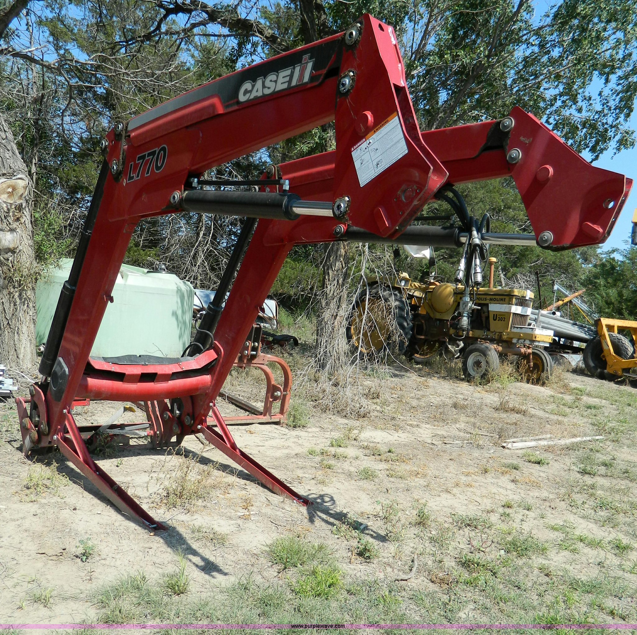 Purple Wave is selling a used Ag Tractor Loader or Attach. in Kansas. This item is a 2010 Case IH L770 loader with the following: Model 726440026, Loader arms sprung do to impact with hard surface, No bucket, Insurance salvage, Serial YAW1T4121