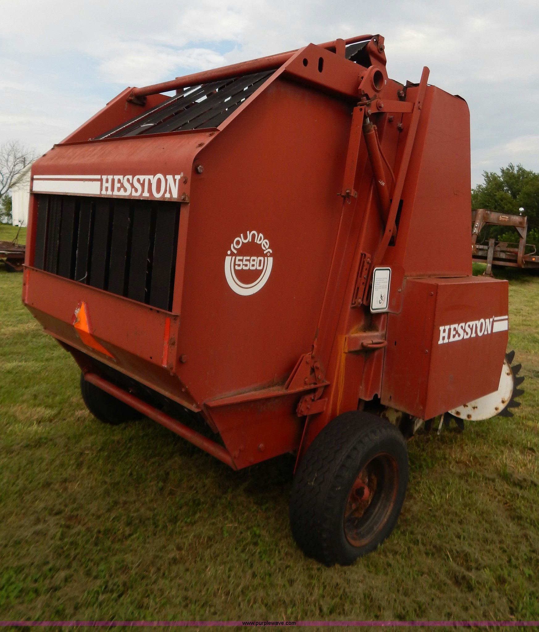 Purple Wave is selling a used Round Baler in Missouri. This item is a Hesston 5580 round baler with the following: Twine tie, Pin hitch, Manual jack, 10-16.5 tires