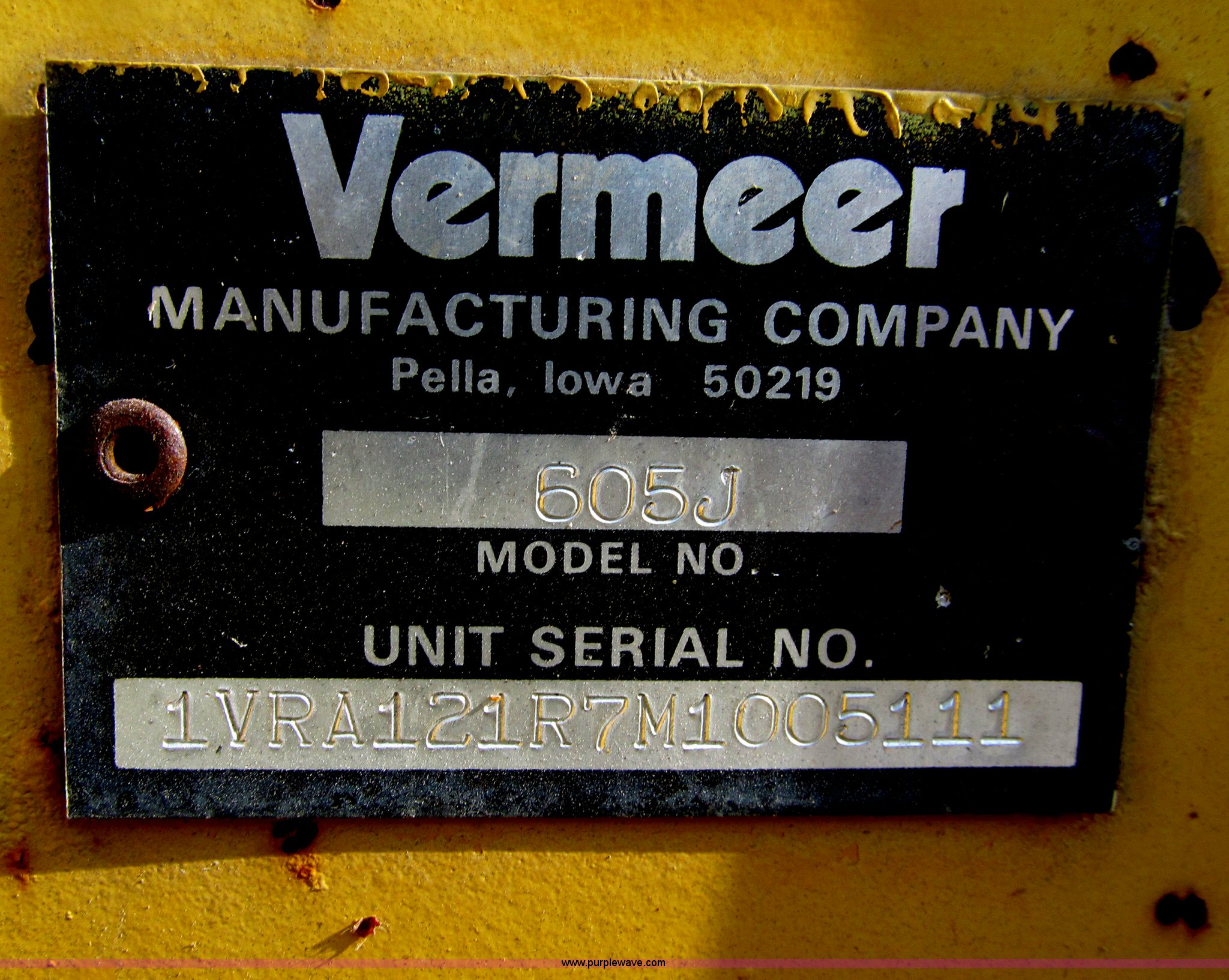 1991 Vermeer 605 Super J round baler. 540 PTO, Twine only, Bale counter , 31x13.50-15 tires, Serial 1VRA121R7M1005111. Shipping quotes available. 1922 210th St. Gravity, IA 50848