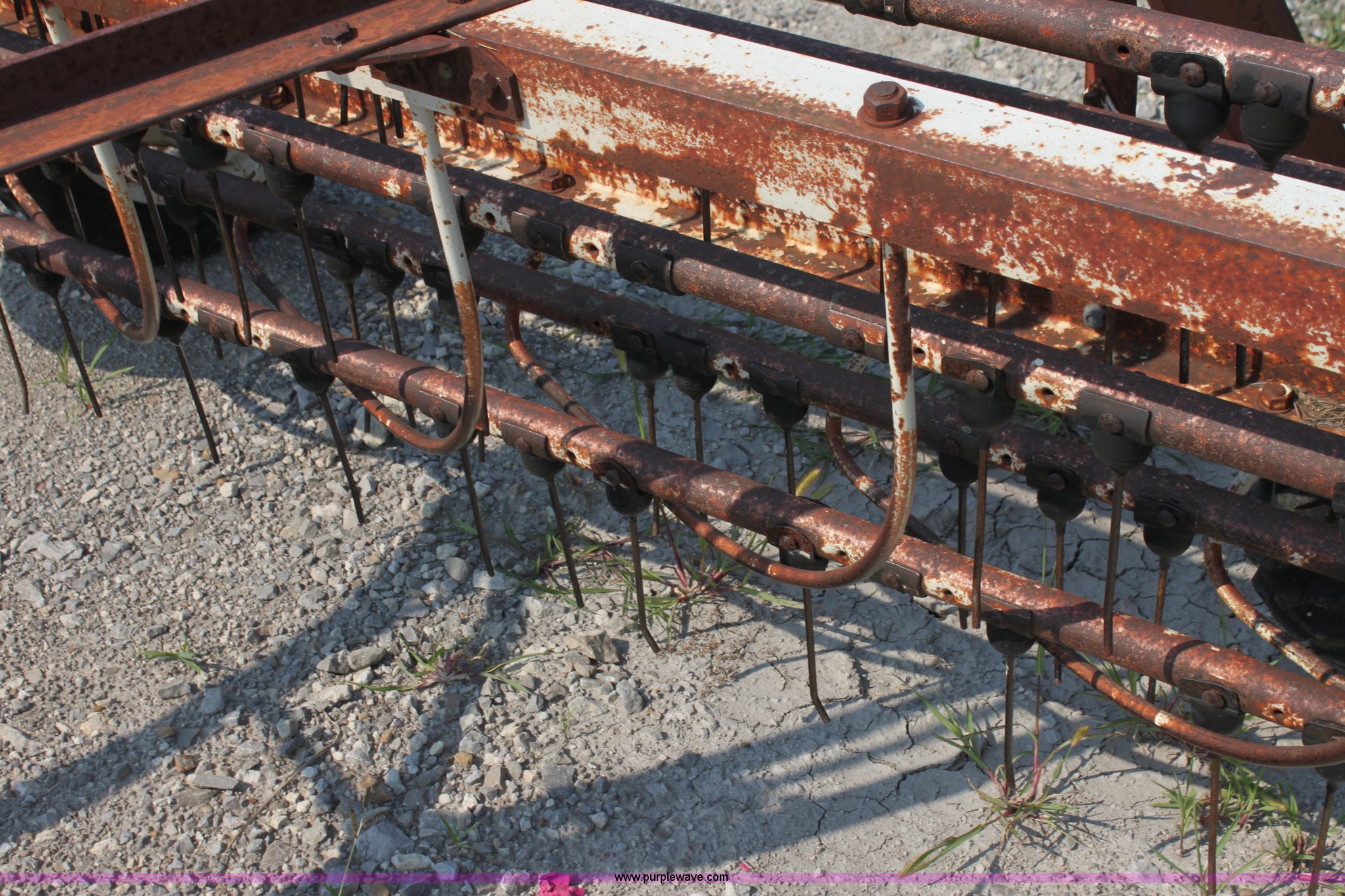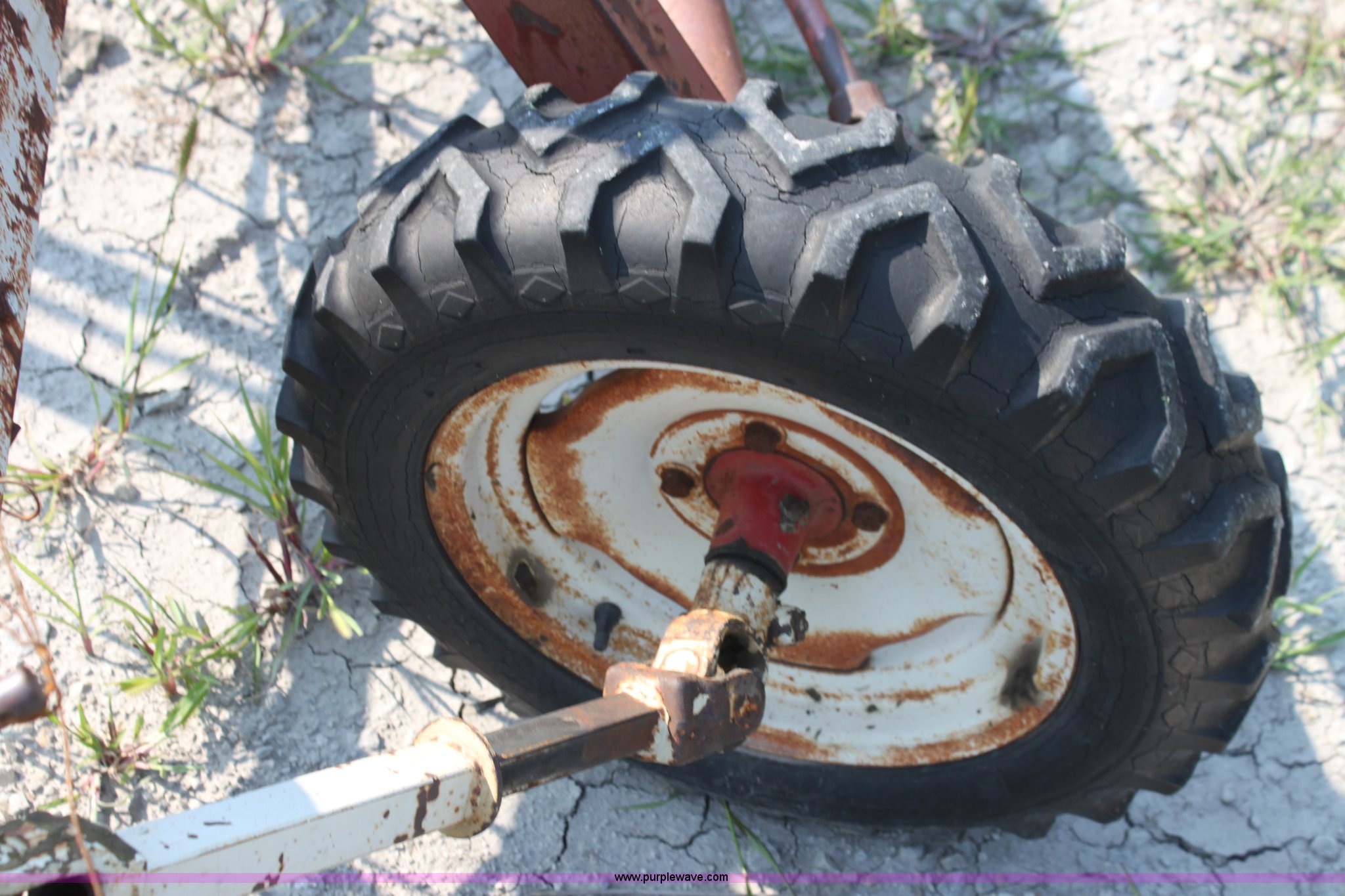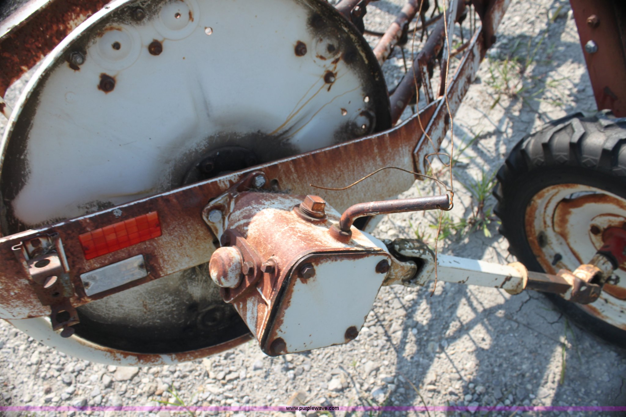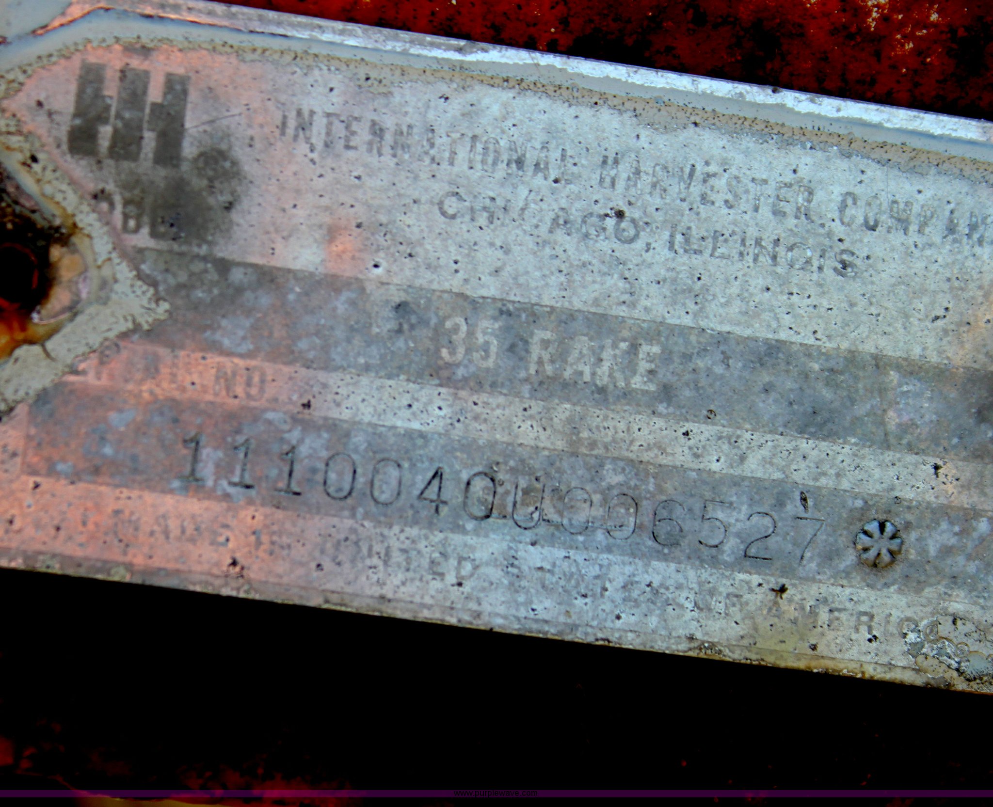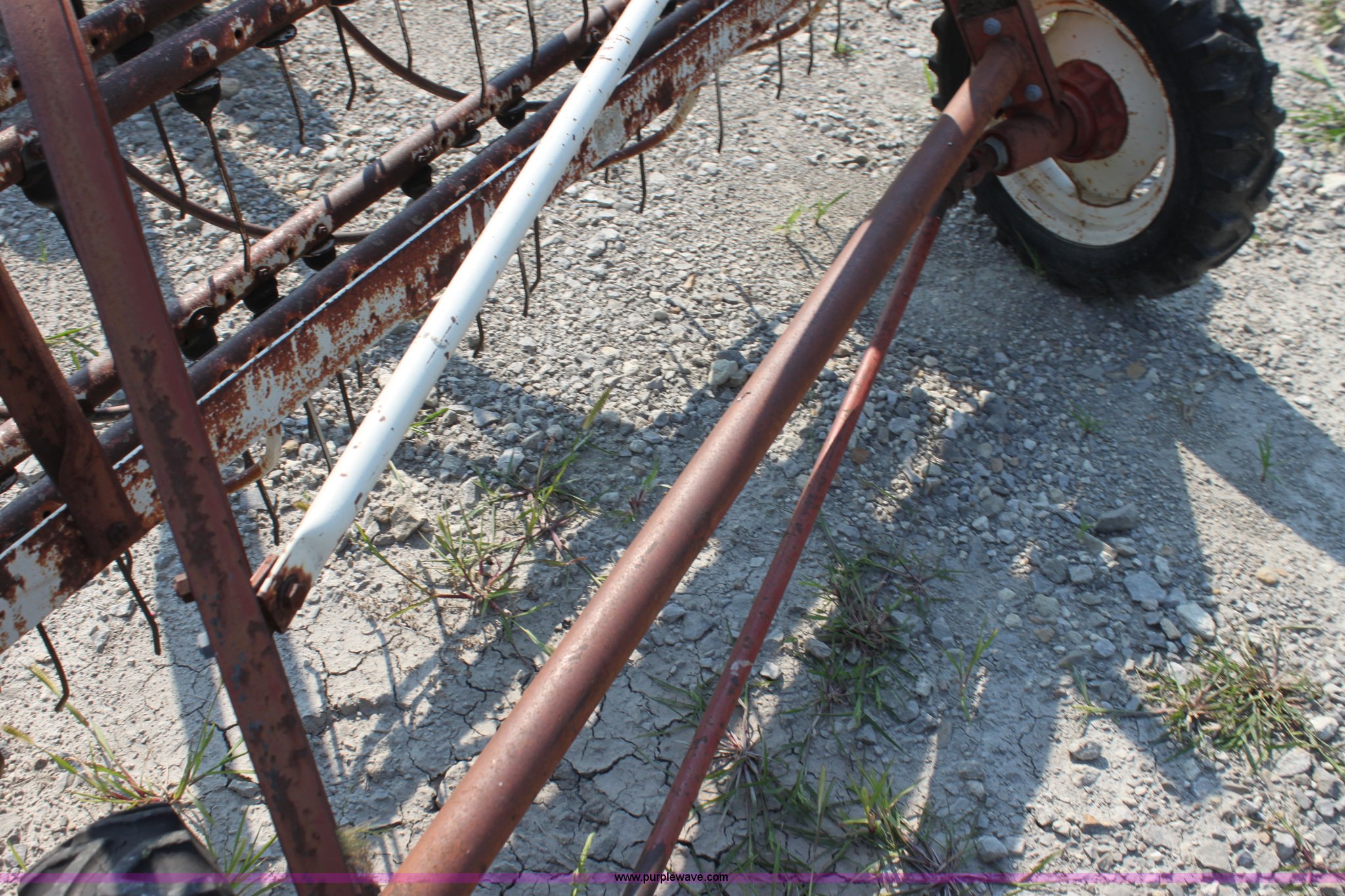 Purple Wave is selling a used Hay Rake in Kansas. This item is a International 35 side delivery hay rake with the following: Ground driven, Manual height adjustment, 15" tires, Serial 1110040U006527