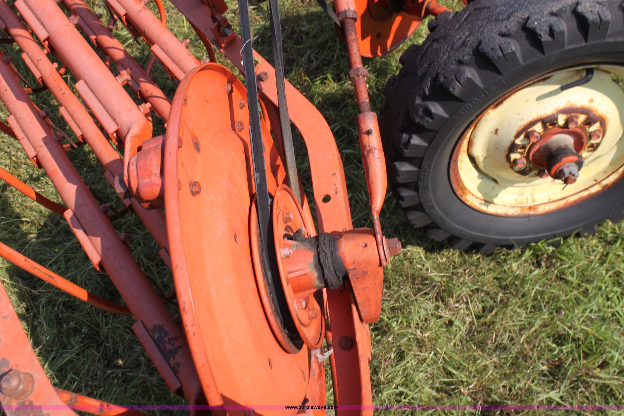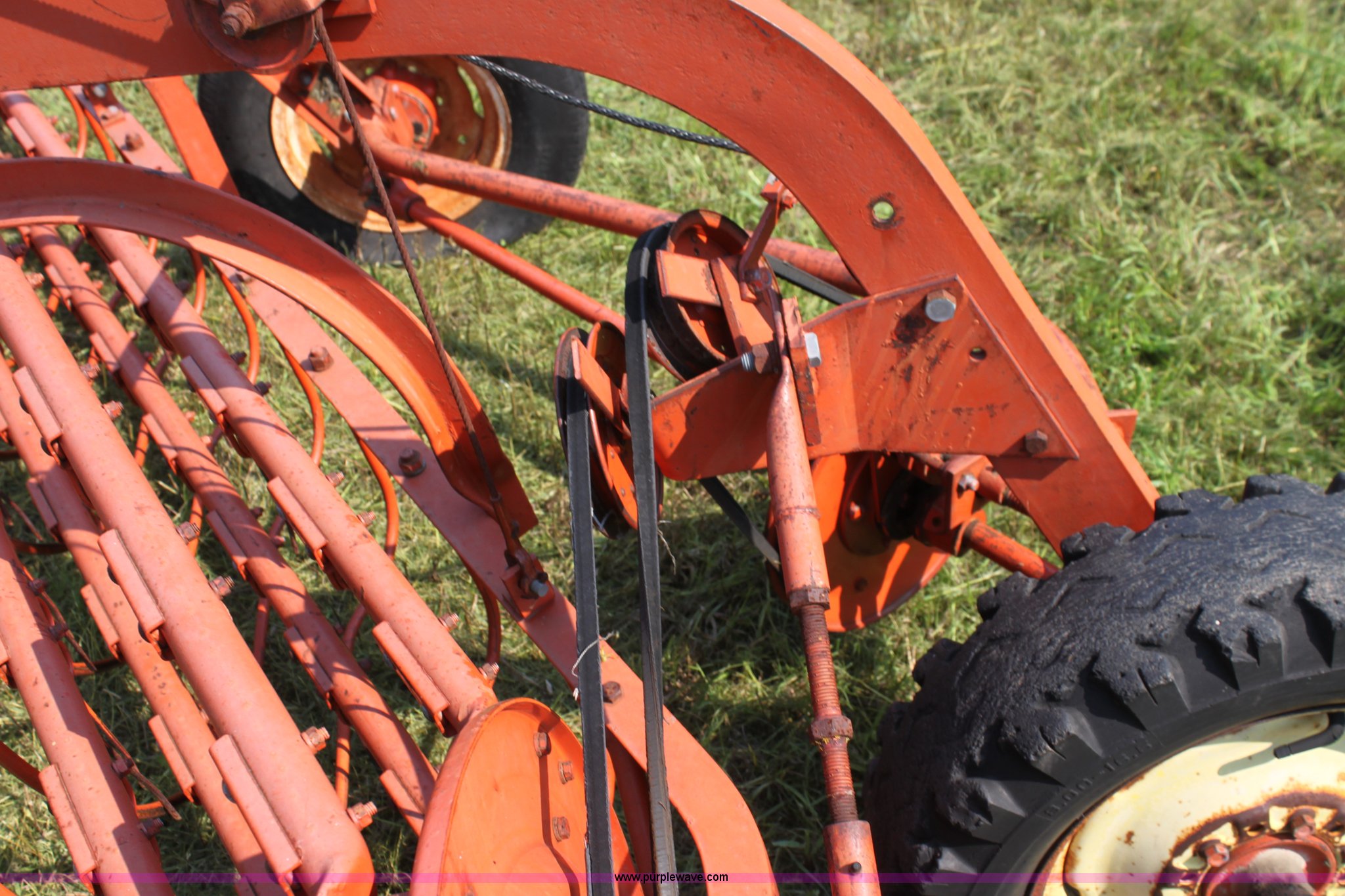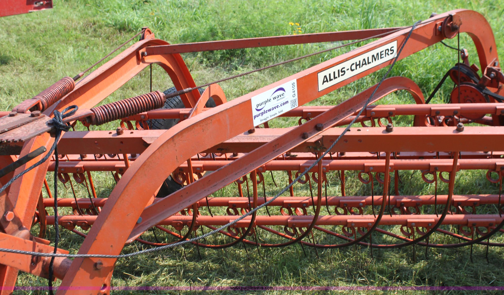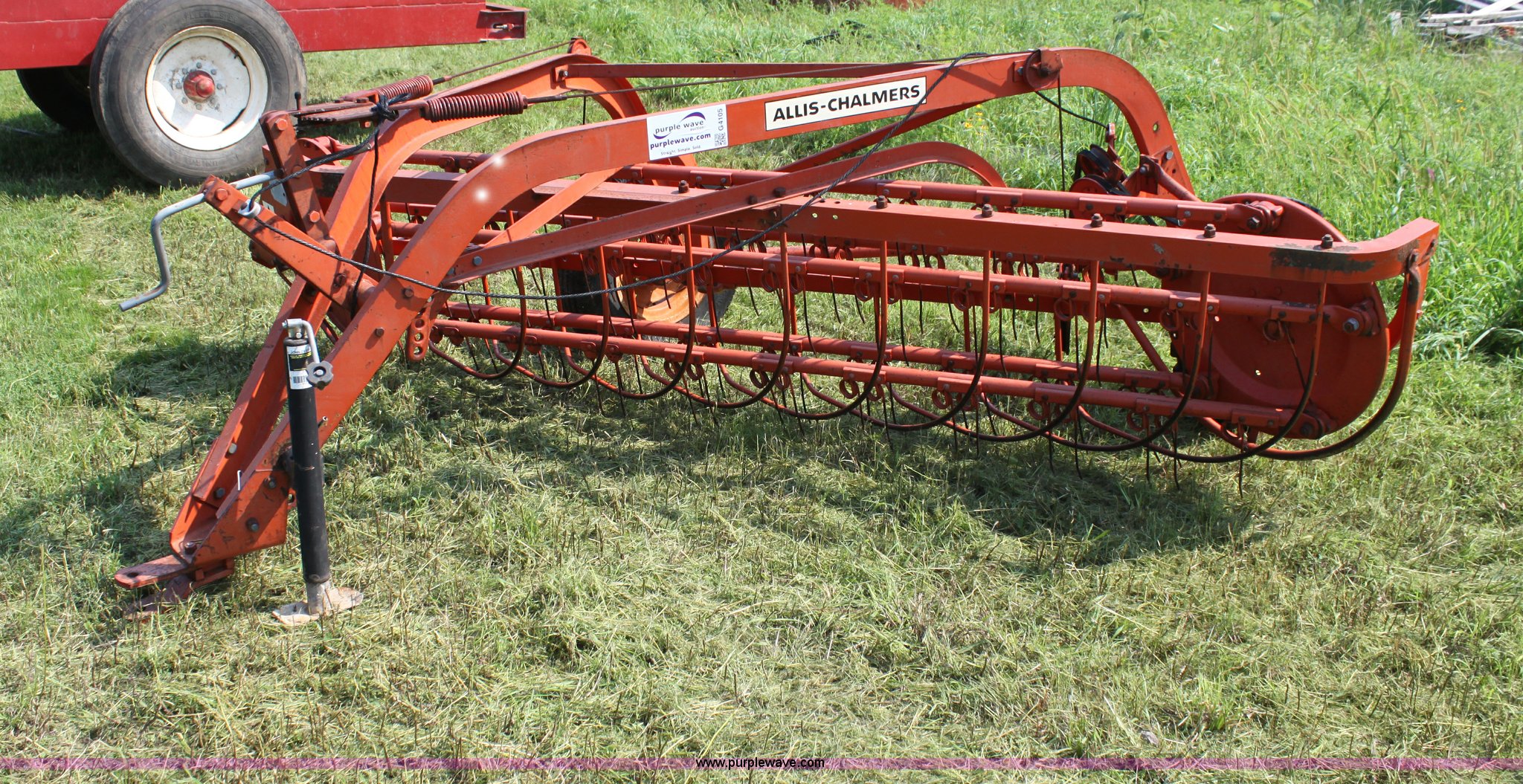 Purple Wave is selling a used Hay Rake in Kansas. This item is a Allis Chalmers side delivery hay rake with the following: Ground driven, Manual height adjustment, 15" tires