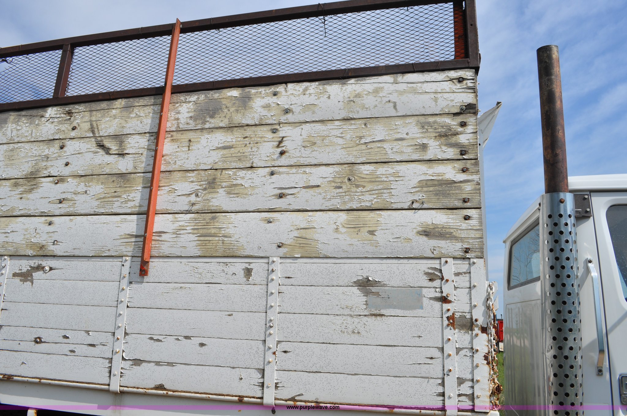 Purple Wave is selling a used Construction Dump Truck in Nebraska. This item is a 1979 International 1854 dump truck with the following: 181,947 miles on odometer, International 466 diesel engine, Five speed manual transmission, AM/FM, 20'L silage/sugar beet box, End dump and side dump, Electric over hydraulic side board close, Dual ram three stage hoist, Two stage side dump cylinders, PTO, Electric over hydraulic tag axle, Spring suspension, Hydraulic brakes, 254" wheelbase, 11R22.5 tires, Kill cable needs handle, Hood latch missing, Windshield cracked
