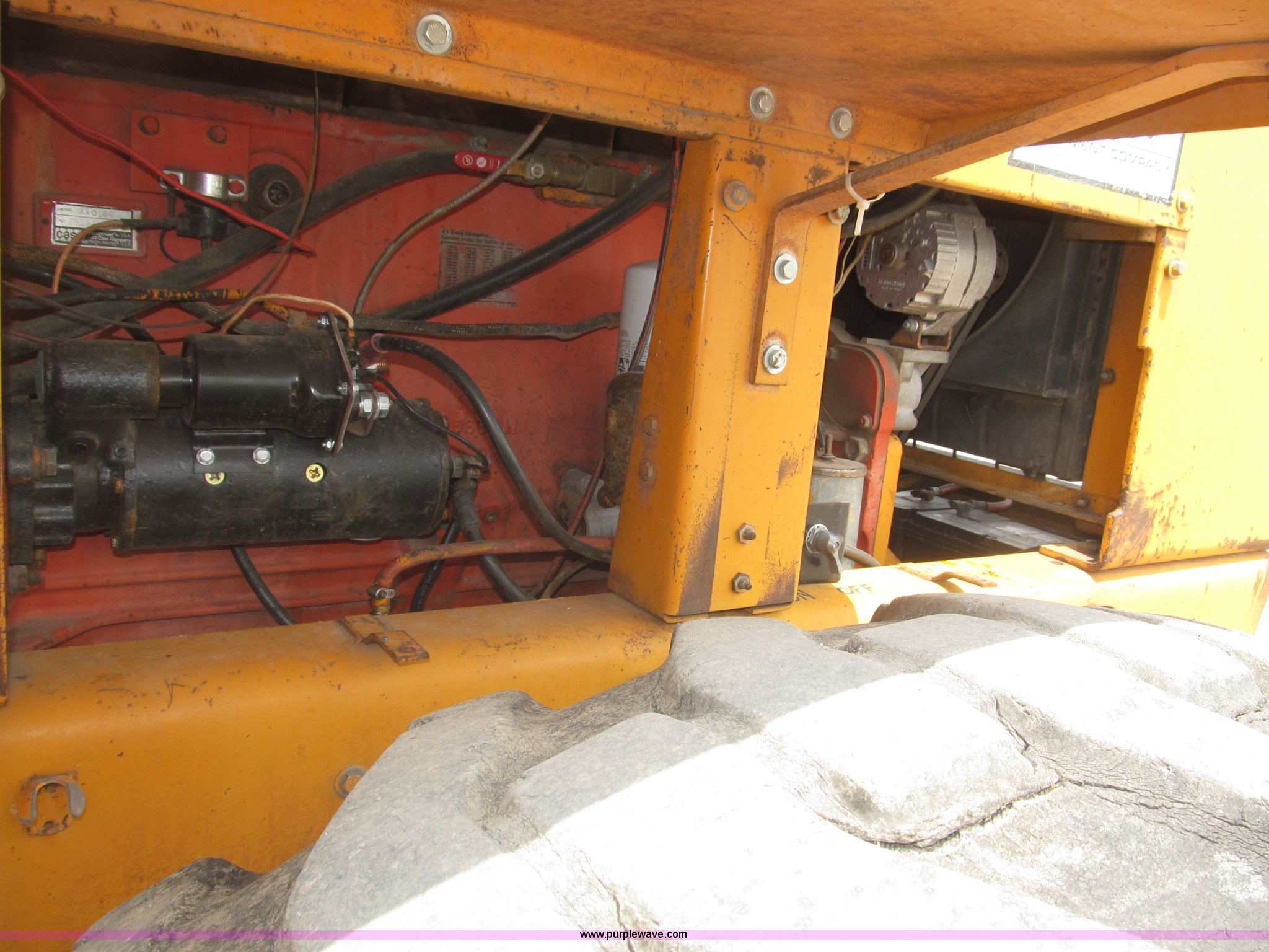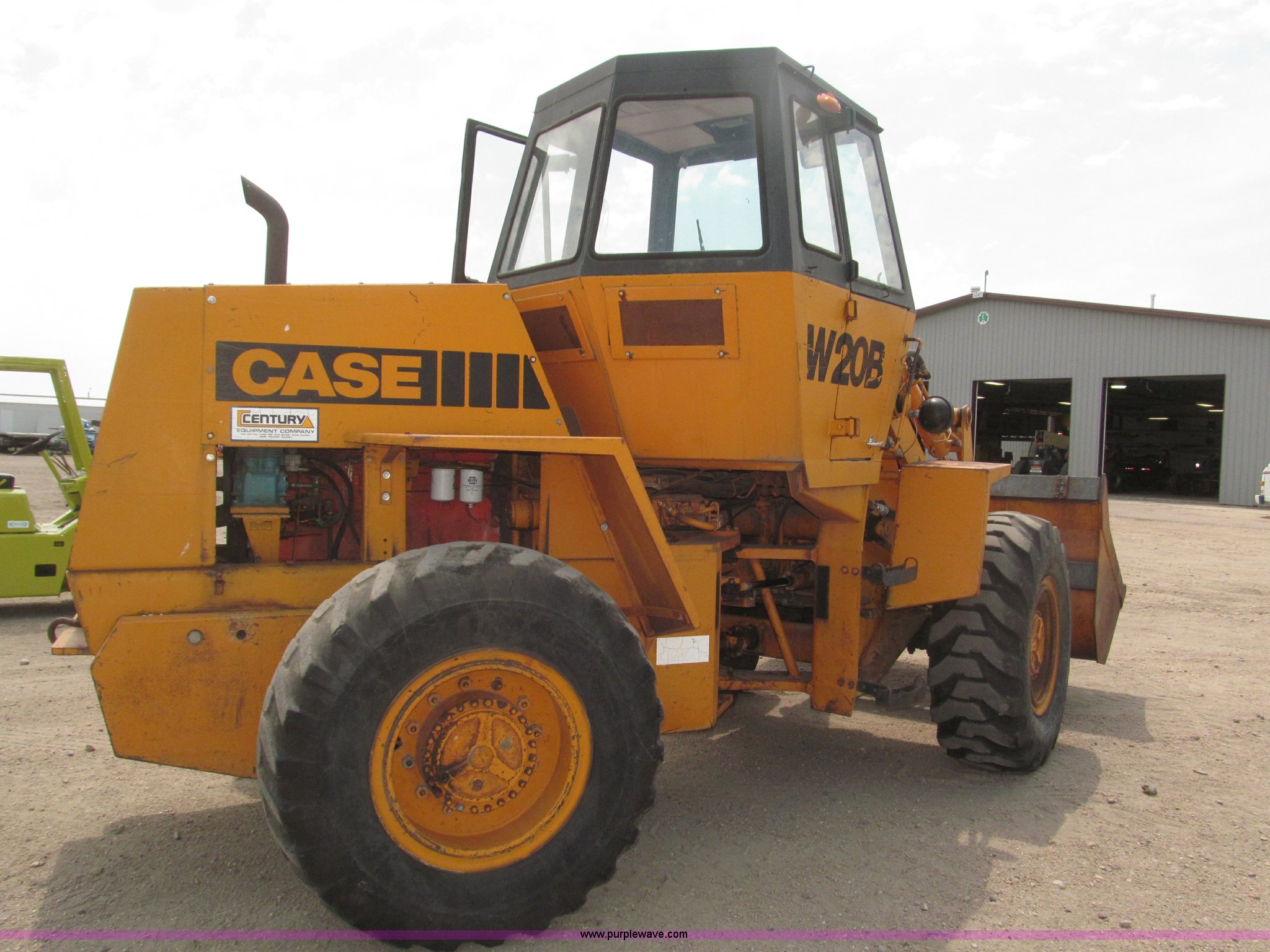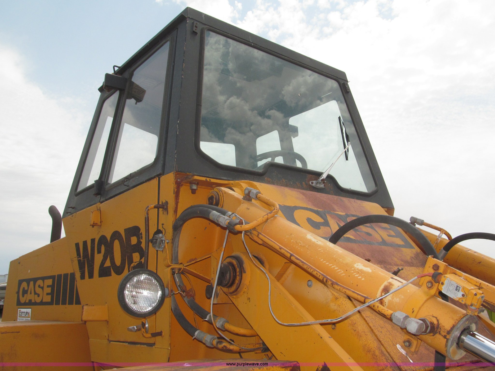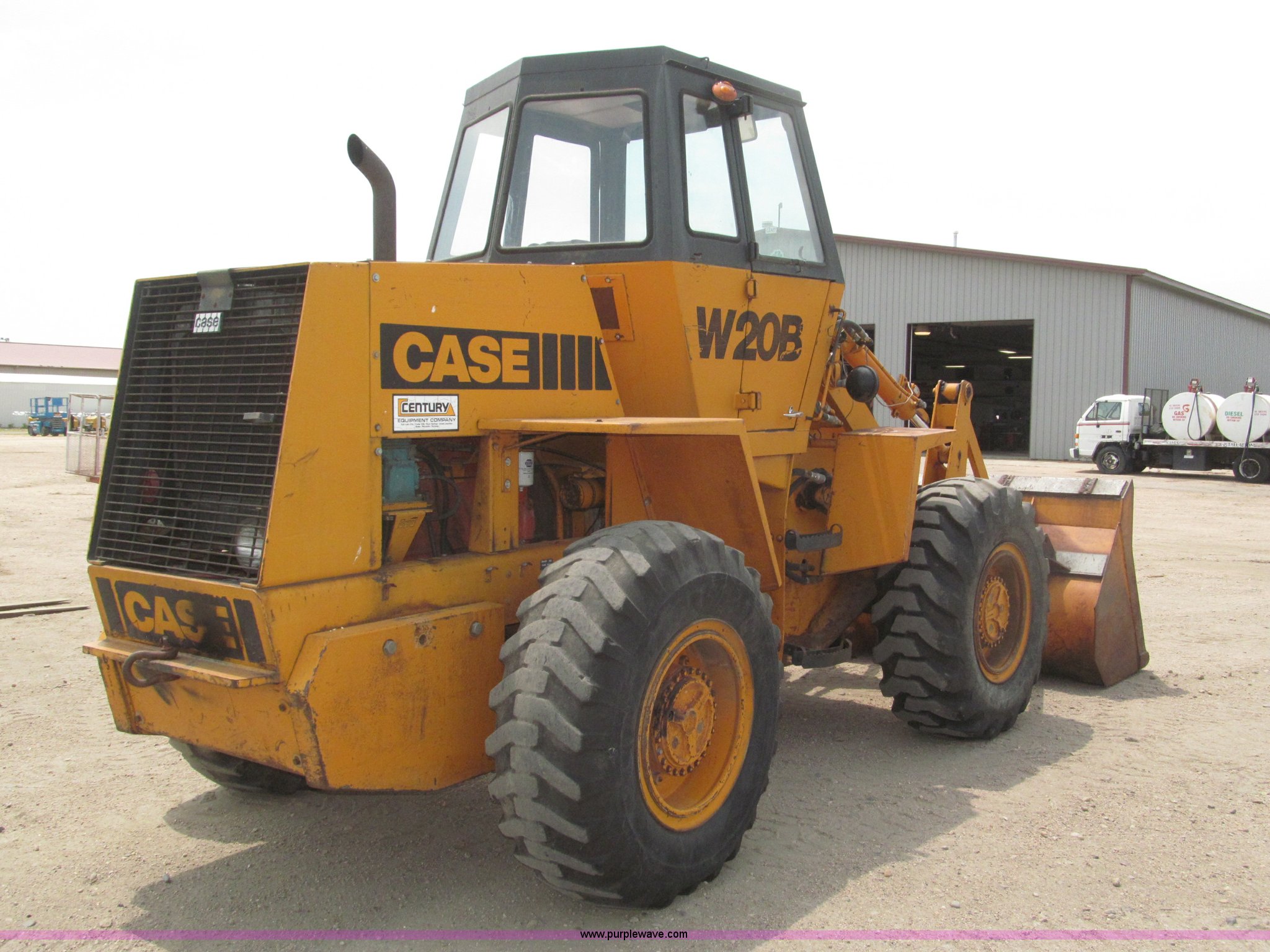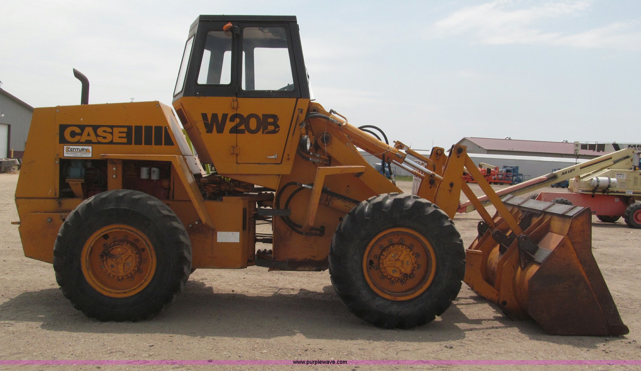 Purple Wave is selling a used Wheel Loader in Nebraska. This item is a Case W20B articulated wheel loader with the following: Case A401BD diesel engine, Serial 2318419D2, Enclosed cab, Heat, Interior rear view convex mirror, Front wiper, Front and rear work lights, One rear work light missing,, 94"W bucket, Weld-on cutting edge, Holes for bolt-on cutting edge, Plumbed for two front hydraulic remotes, No fittings, Rear clevis, 17.5-25 tires, Seat cracking, Bottom step bent on left side, Right side cab door will not open, Rear tires show cracking and tears, Transmission is beginning to slip, Serial 9148071