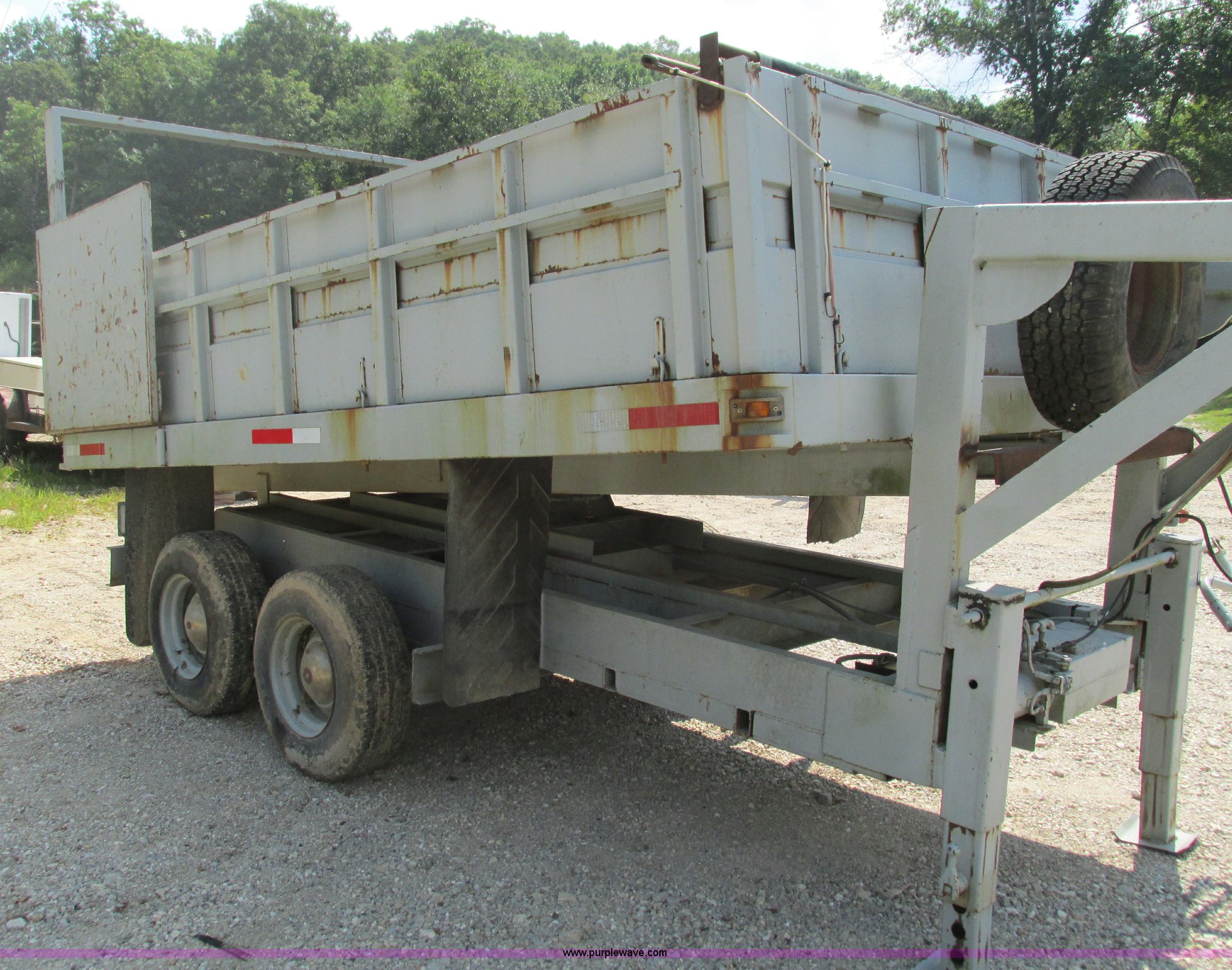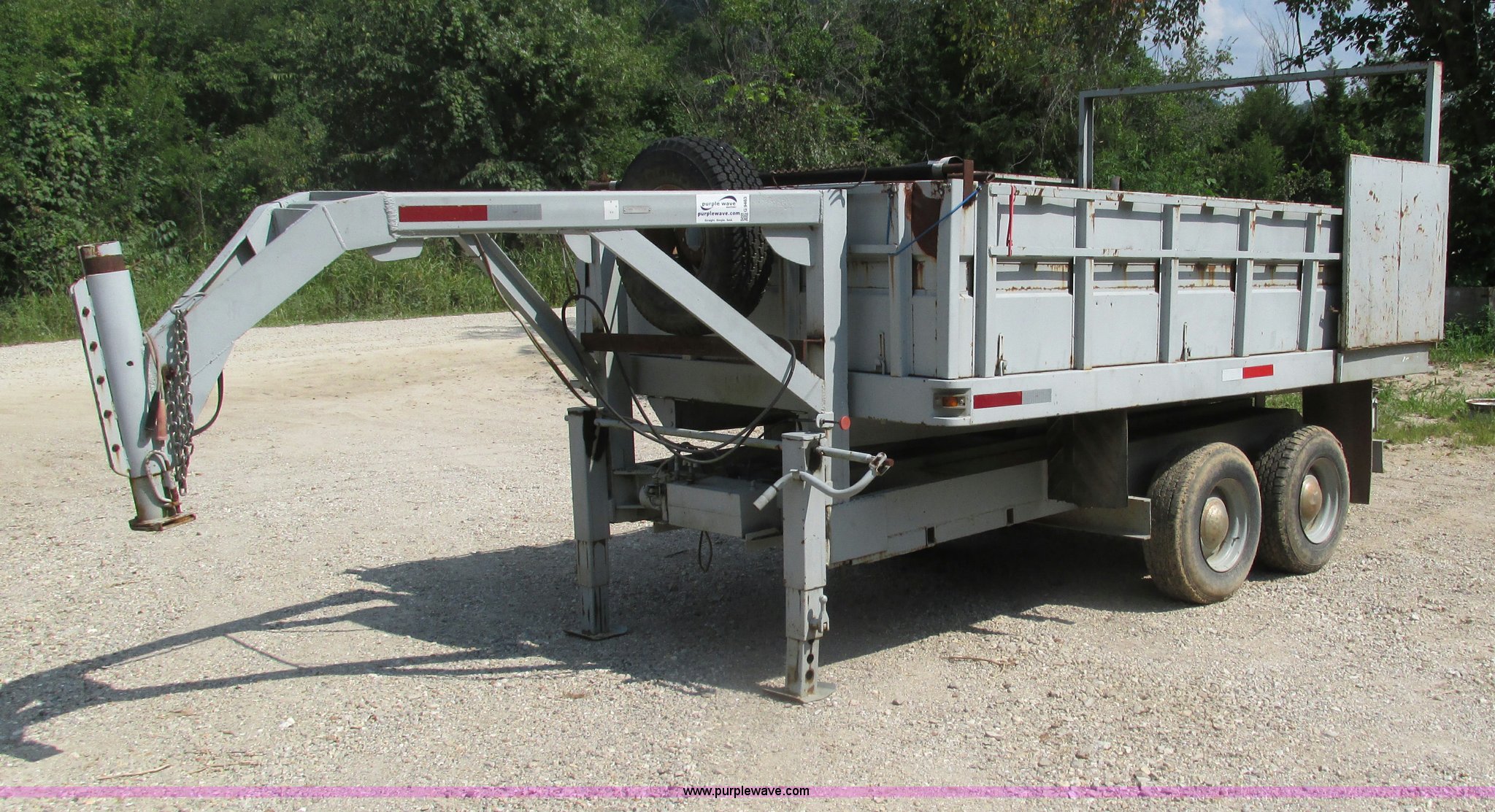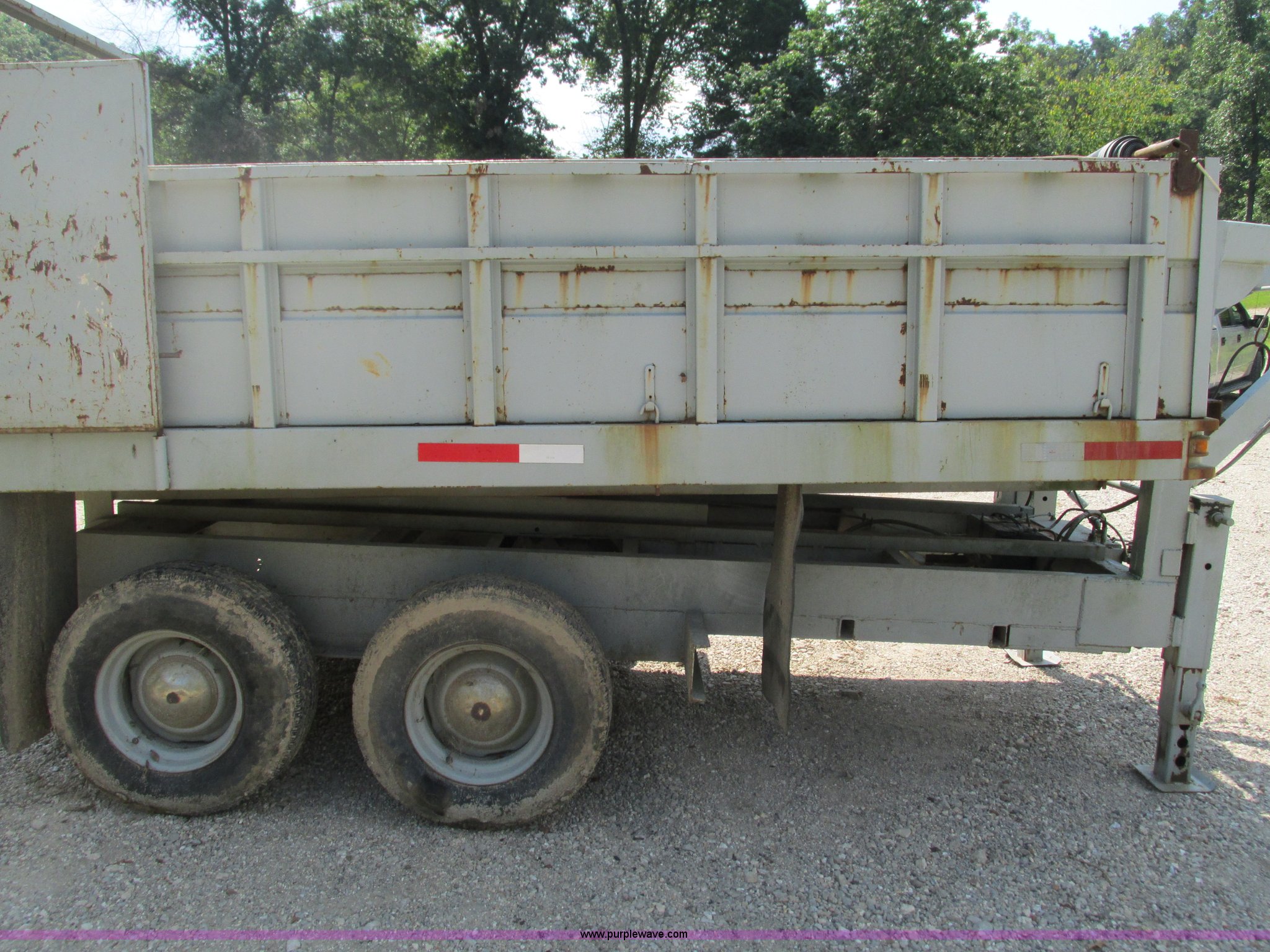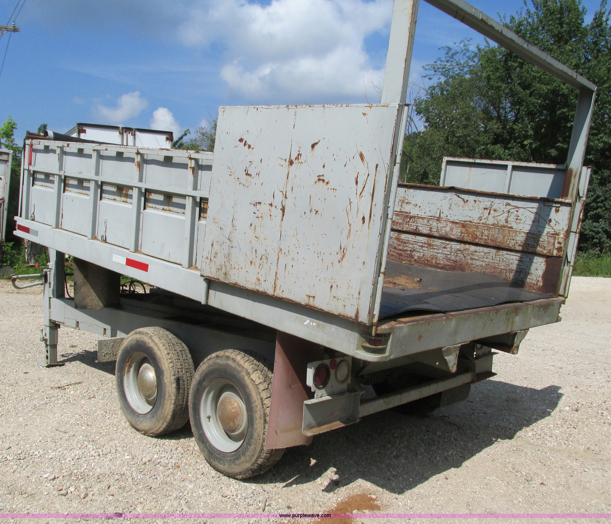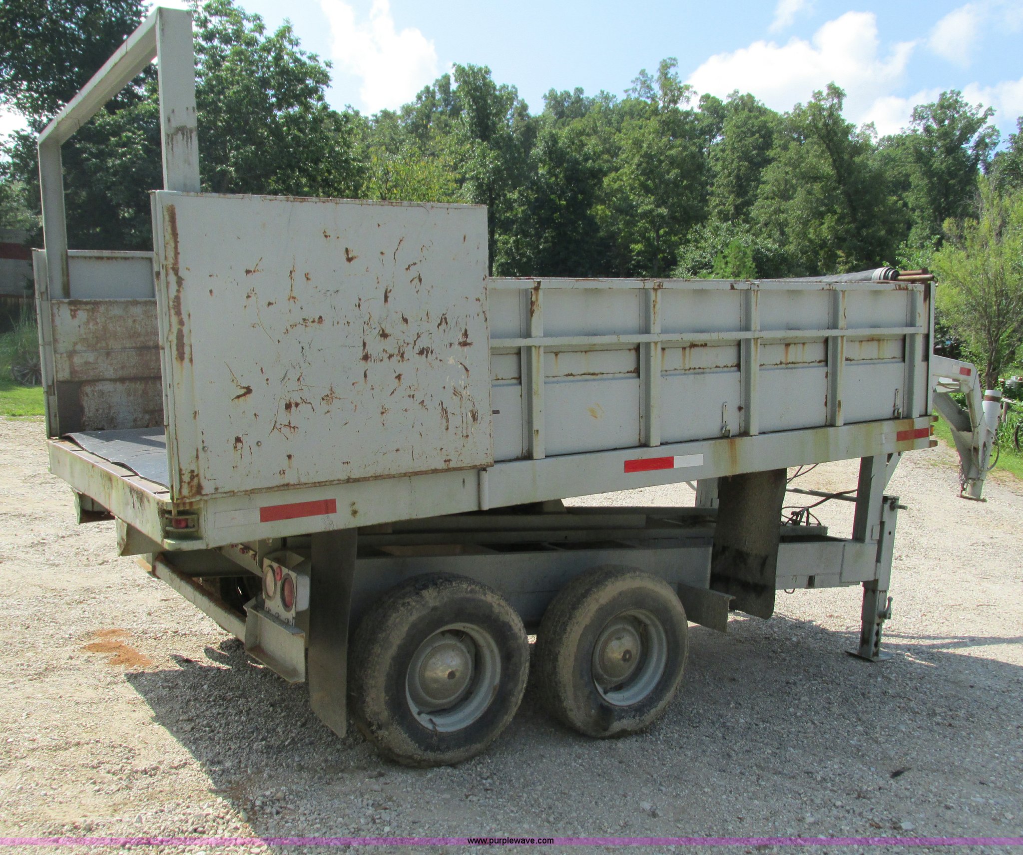 Purple Wave is selling a used Dump Trailer in Missouri. This item is a 2000 HDMD dump trailer with the following: 8' x 13' x 28" side board, Rubber floor mat, Manual rollover tarp, Hydraulic raise and lower bed, Battery quick connects, Spring torsion axle, Dual hand crank jack stands, Six hole wheels, 9.5R16.5LT tires, GAWR 6,000 lbs, Brakes on both axles, Rust, Exterior damage