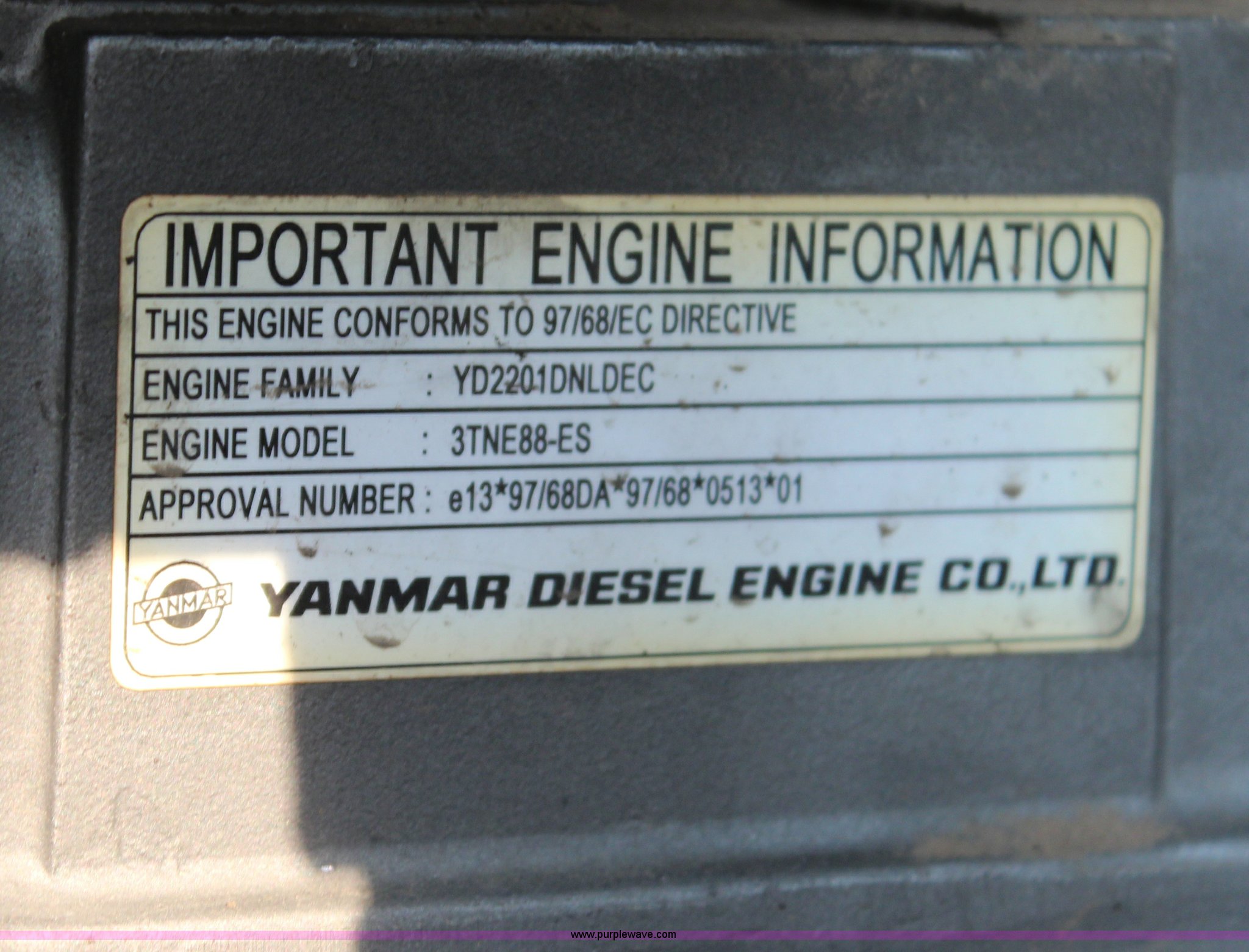 Purple Wave is selling a used Wheel Loader in Kansas. This item is a Magnum 136A sod loader with the following: Yanmar three cylinder diesel engine, Model 3TNE88-ES, 36 HP, Hydrostatic transmission, Four wheel drive, Four wheel steering, Telescoping loader, 1,000 lbs operating capacity, 33/16Lx16.1 tires, 4,920 lbs. base operating weight, Operators manual, Recently replaced battery, Serial 1360501014