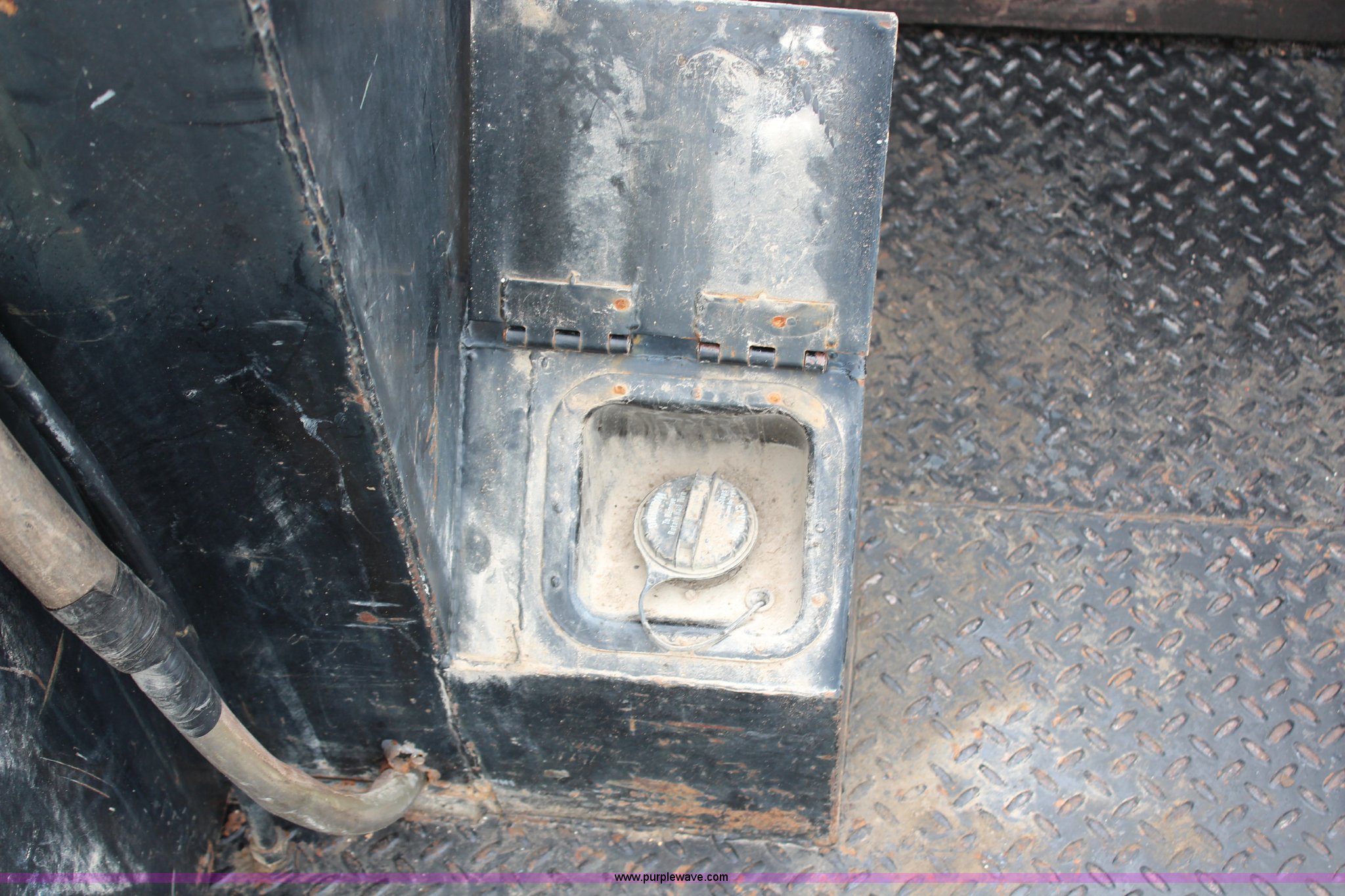 Purple Wave is selling a used Service Truck in Kansas. This item is a 1990 Ford F450 Super Duty flatbed truck with the following: 36,704 miles on odometer, 7.3L V8 diesel engine, Automatic transmission, Heat, Manual windows and locks, Vinyl interior, 12'L x 97"W flatbed, Toolboxes, Air compressor, Two cylinder gas engine, Electric start, (2) fluid tanks, Electric over hydraulic crane, 235/85R16 tires