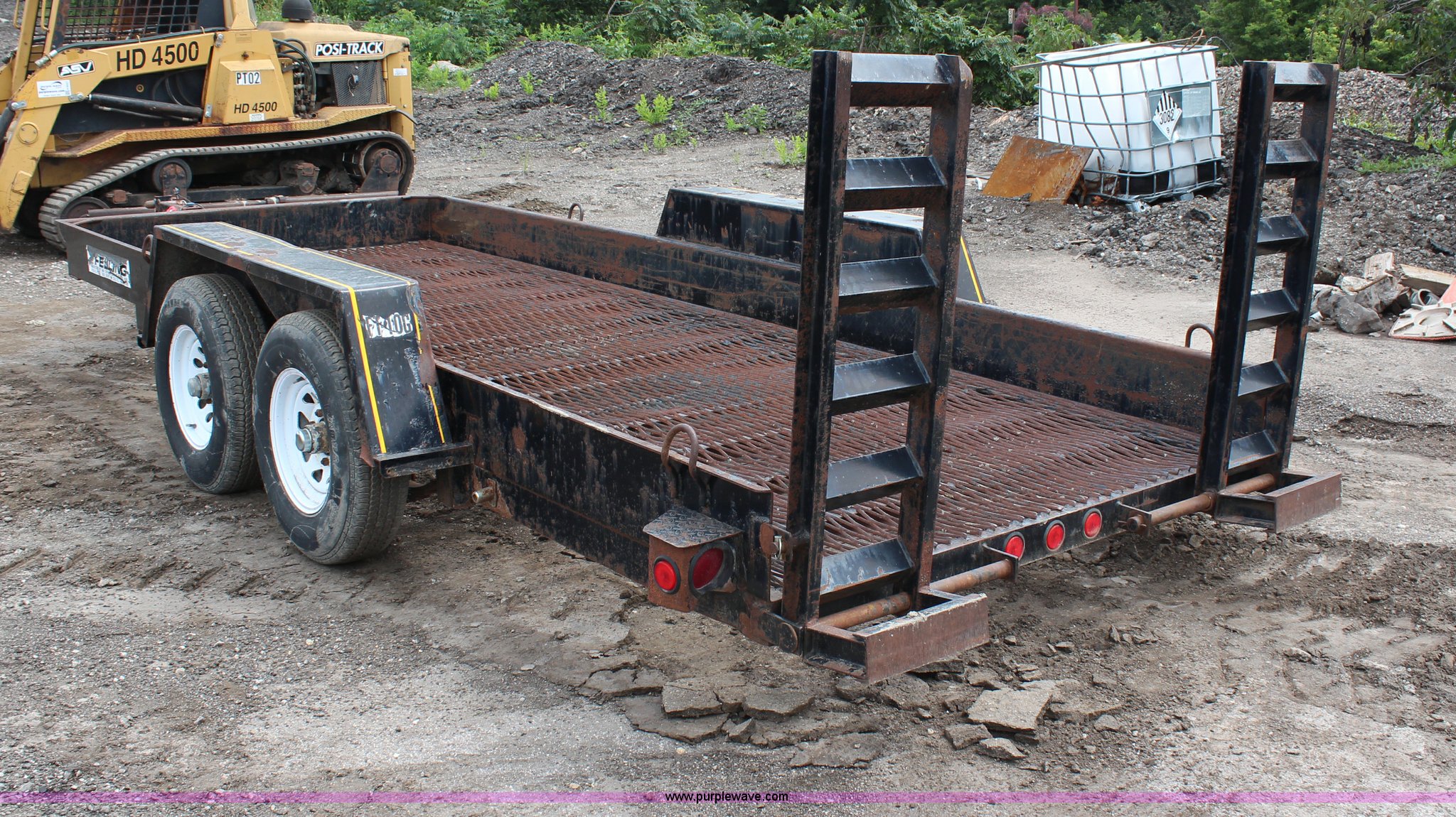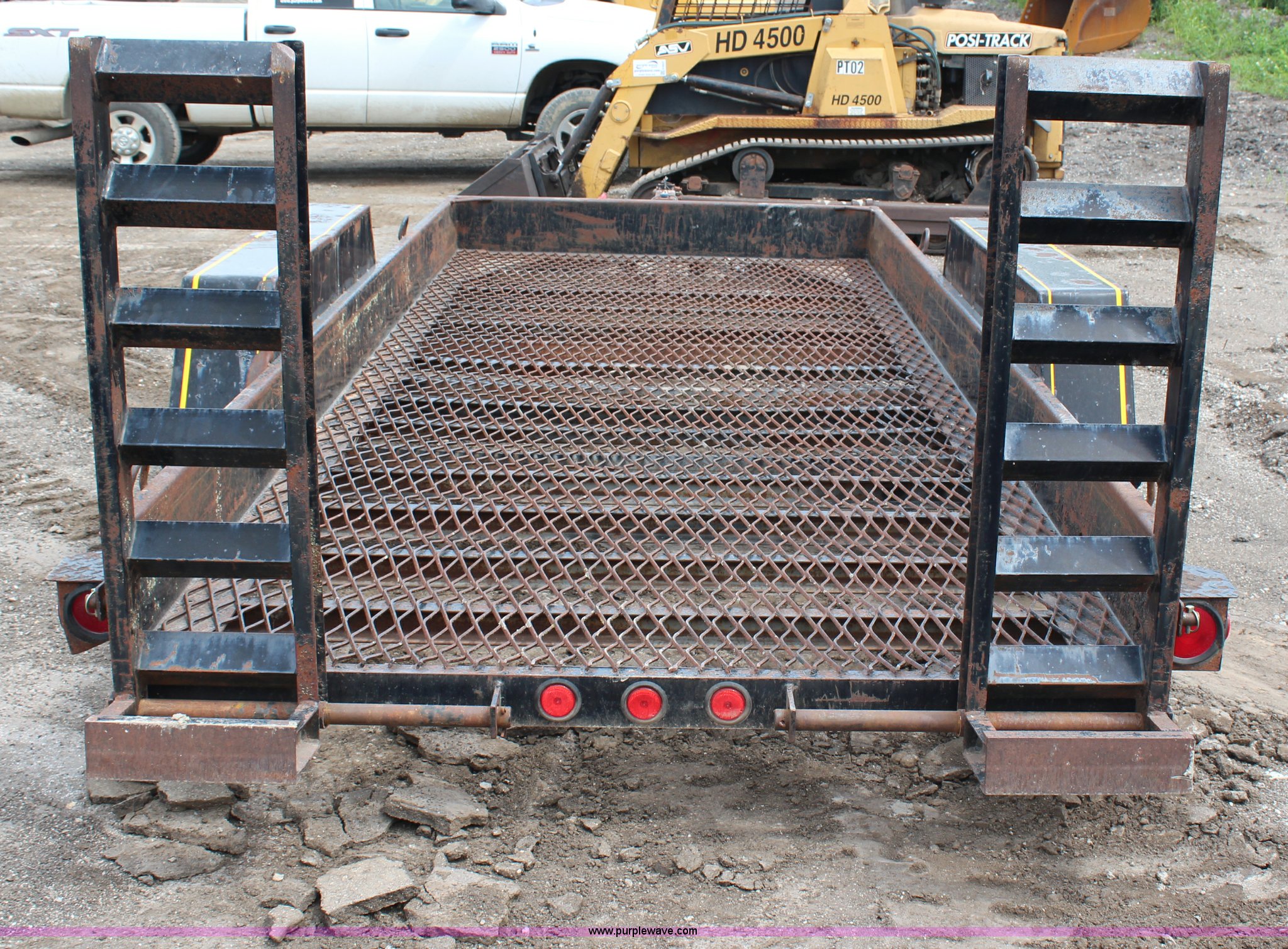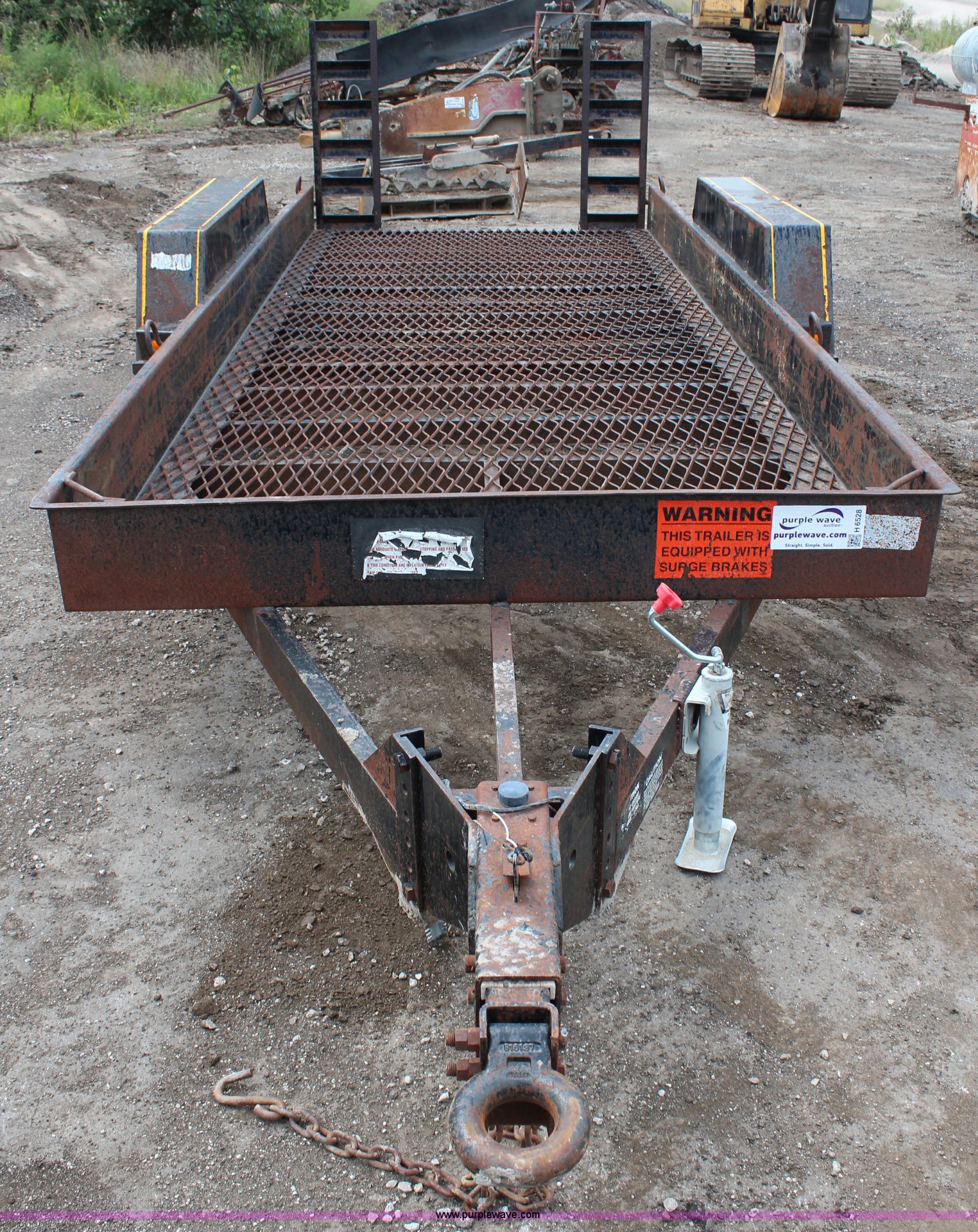 Purple Wave is selling a used Equip. Trailer in Kansas. This item is a 1996 Felling double axle trailer with the following: 16'L x 74"W, 4' ramps, Pintle hitch, Surge brakes, 225/75R15 tires, GVWR 12,000 lbs, GAWR 6,000 lbs