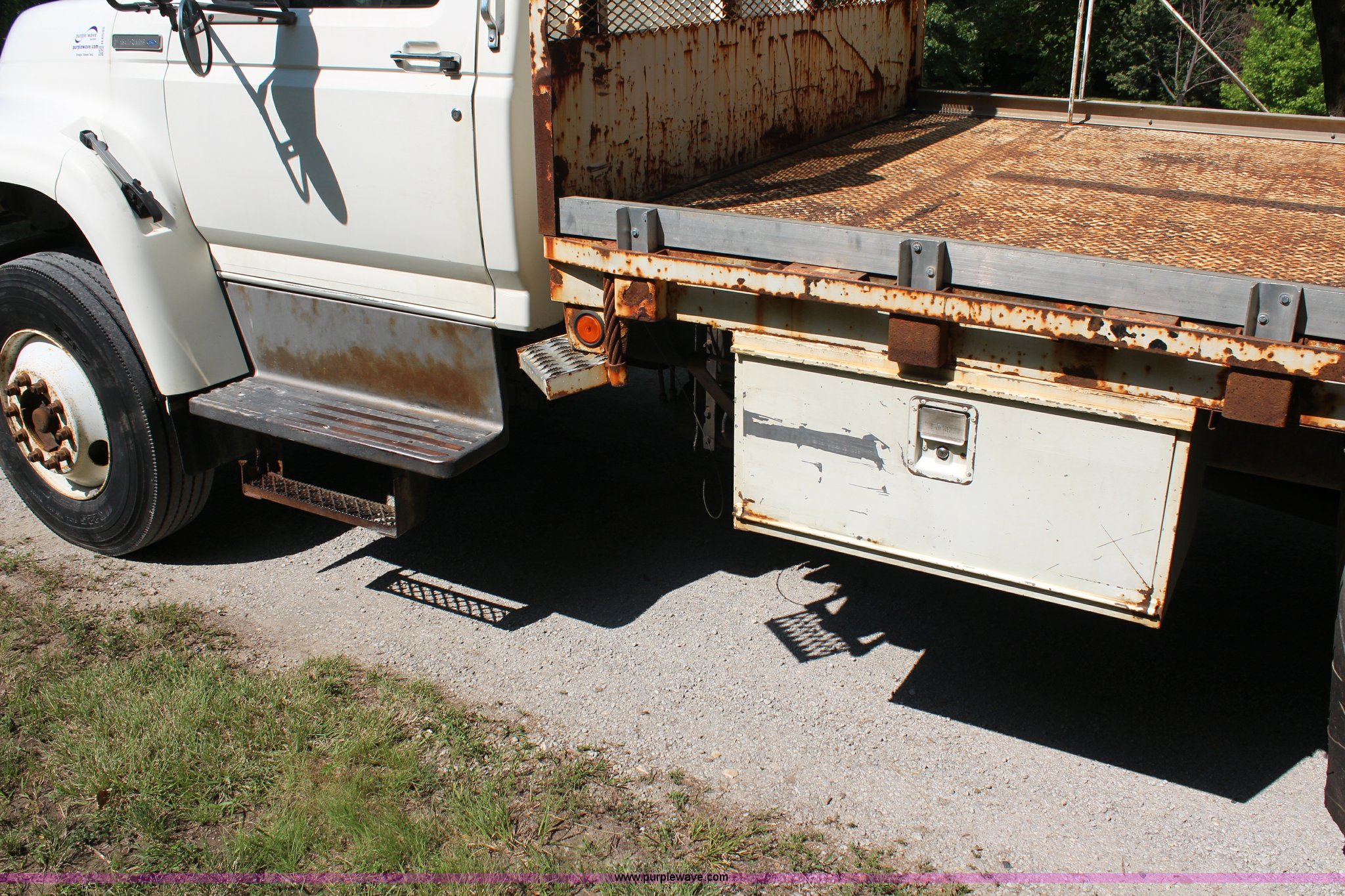 1996 Ford F800 flatbed truck has sold in St. Joseph, Missouri for $7480. Item H6545 sold on September 12th, 2013.