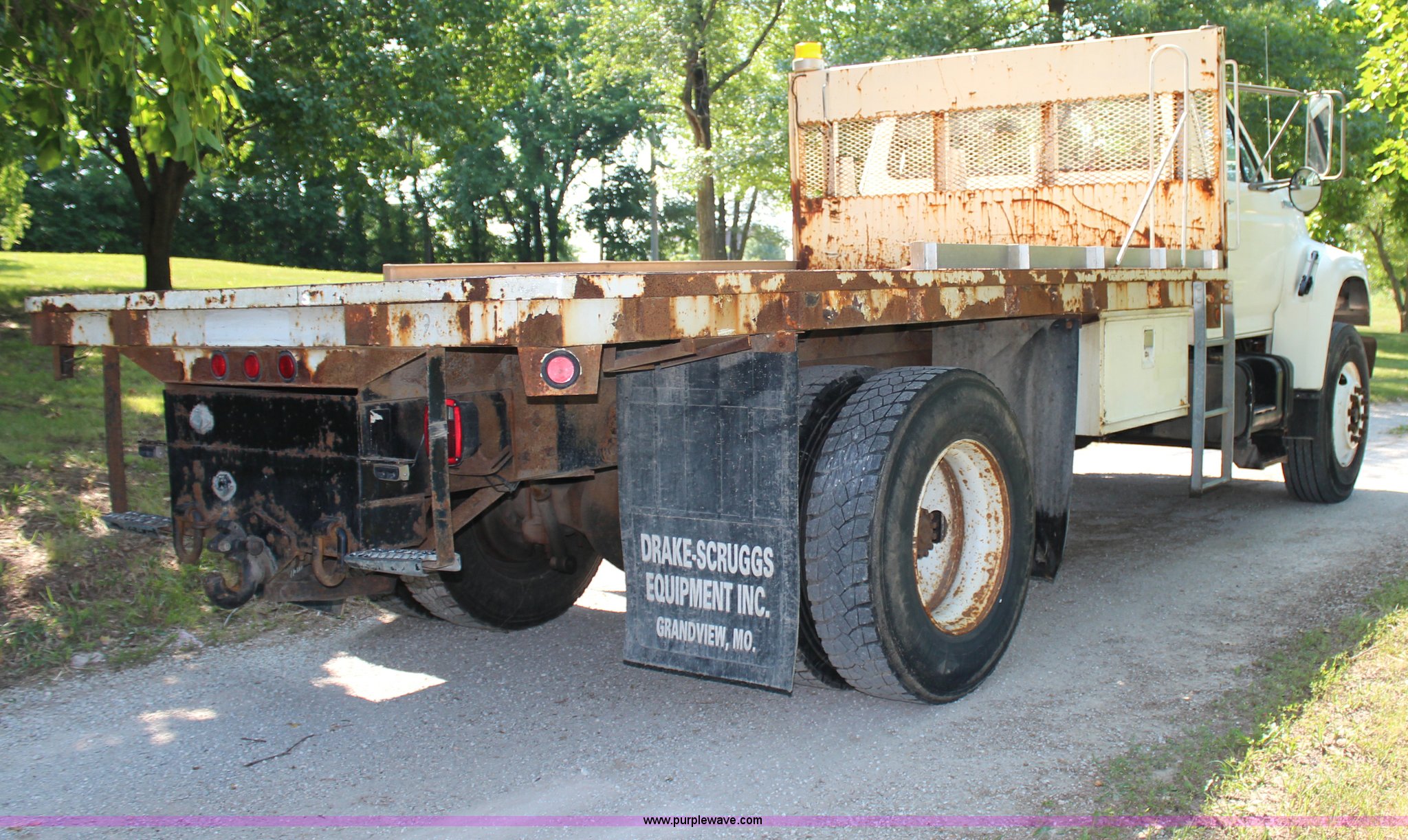 This 1996 Ford F800 flatbed truck will sell to the highest bidder regardless of price.