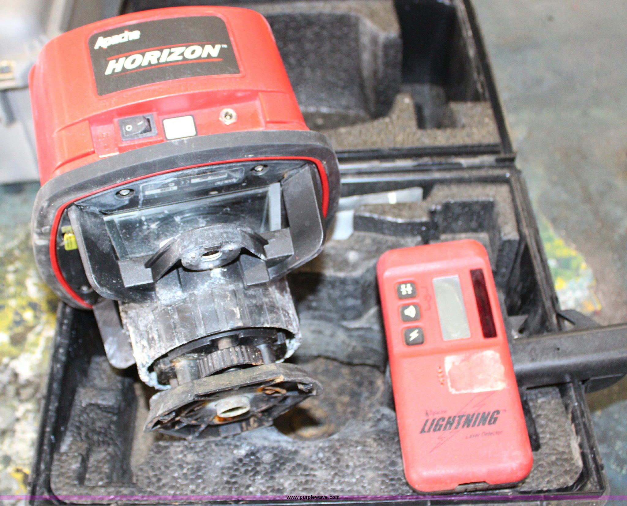 Apache horizon rotary laser with receiver has sold in Kansas City, Kansas for $66. Item AU9022 sold on September 12th, 2013.