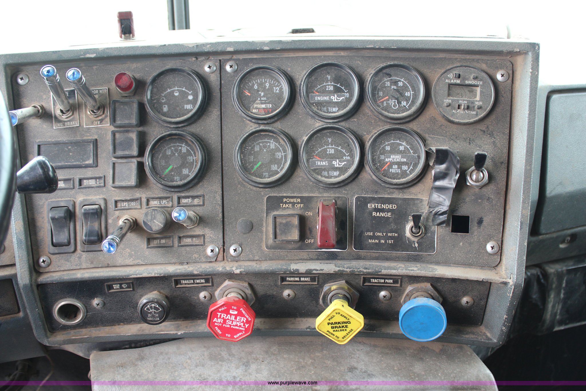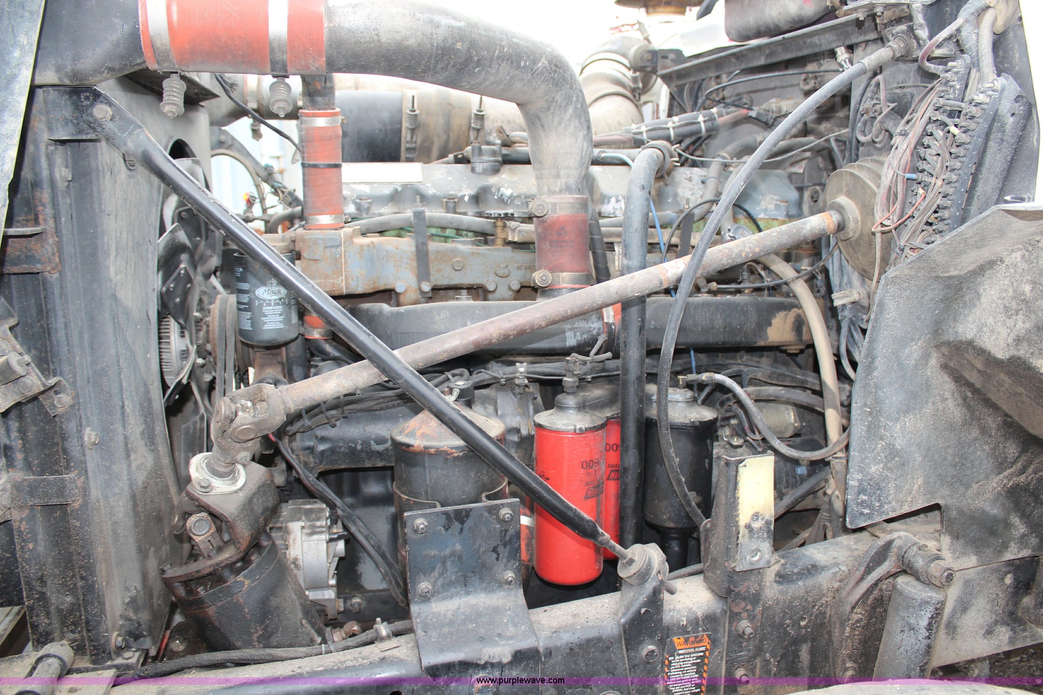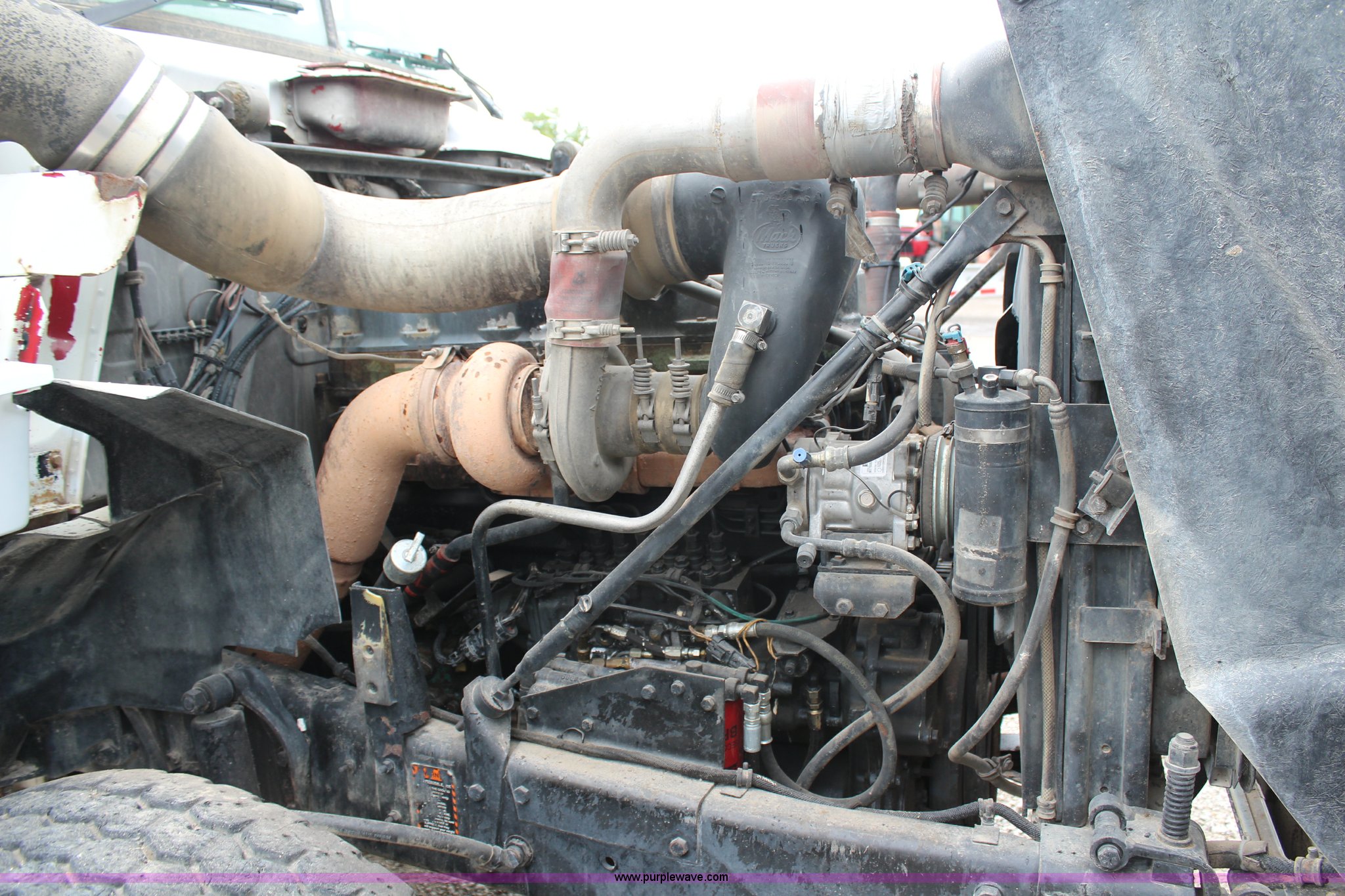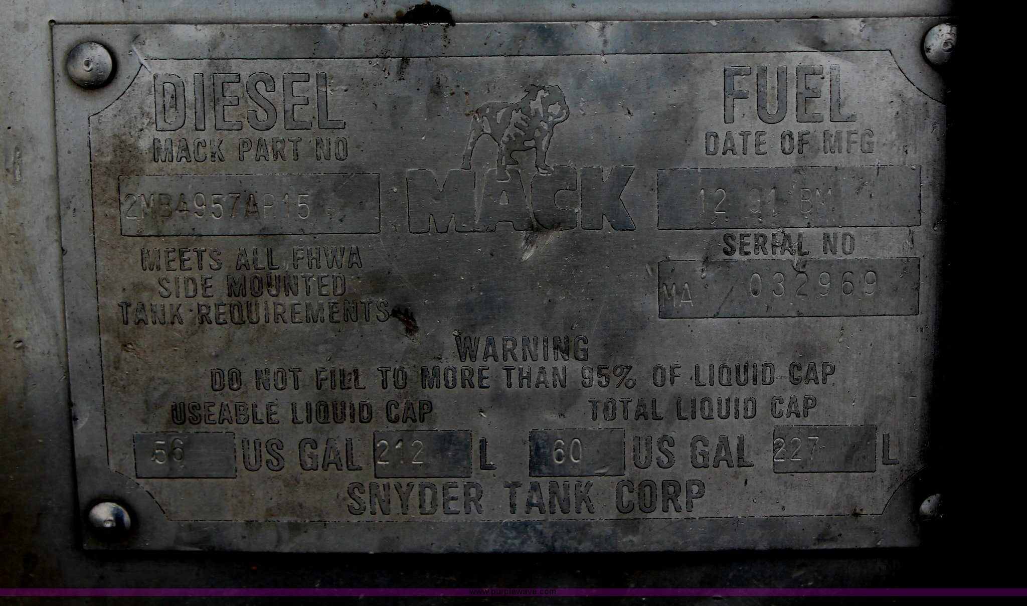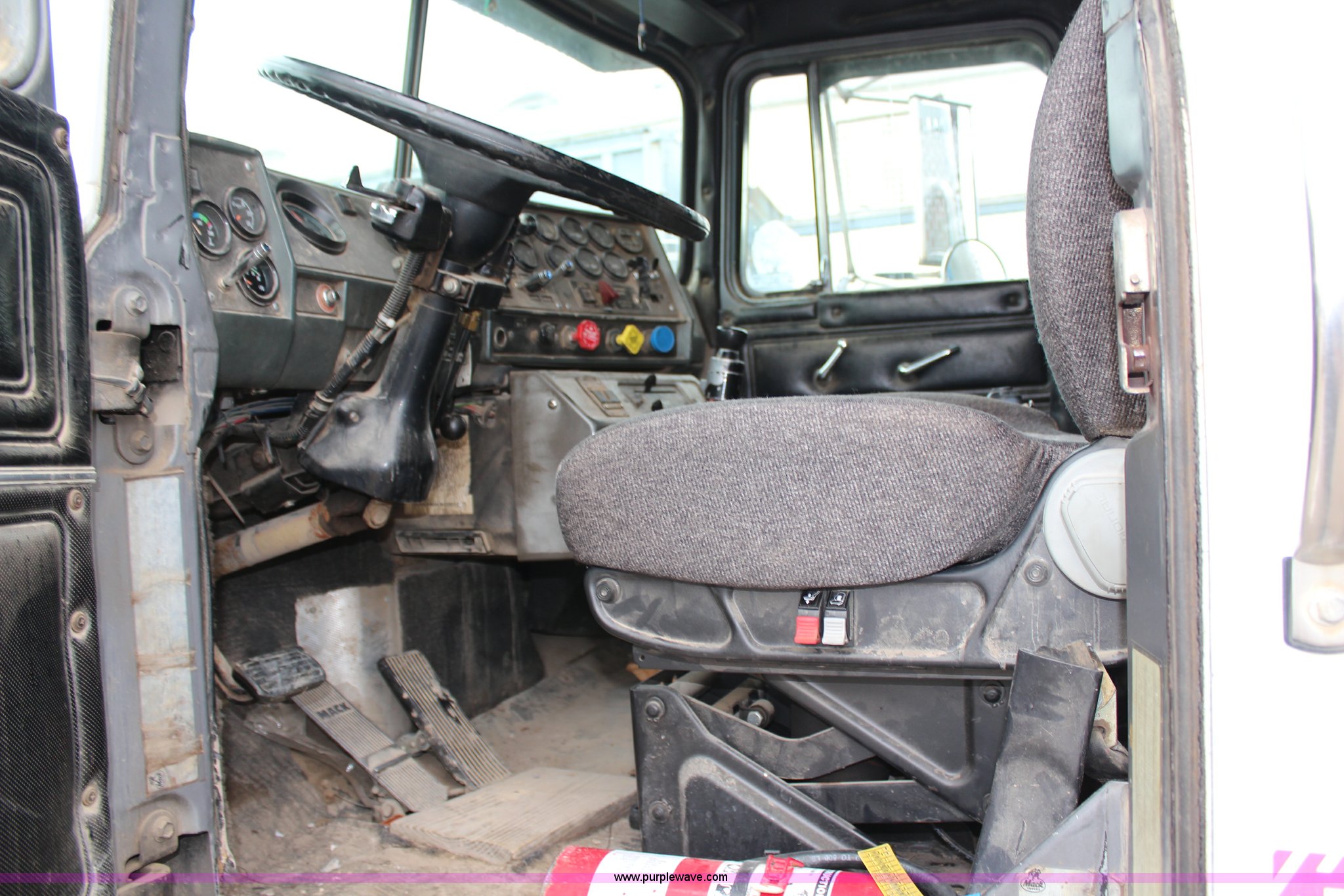 Purple Wave is selling a used Construction Dump Truck in Kansas. This item is a 1992 Mack RD688S quad axle dump truck with the following: 230,426 miles on odometer, 10,879 hours on meter, Mack E7-400 12.0L L6 diesel engine, 400 HP, Eaton Fuller 13 speed manual transmission, Twin screw, AC and heat, AM/FM/cassette, Air suspension seat, 17'L dump bed, Air operated end gate, Single ram hoist, Electric roll over tarp, Exterior visor, Chrome bumper, Air up, air down pusher axles, Front pusher axle steerable, PTO, Dual 59 gallon fuel tanks, Spring suspension, Air brakes, Jake brake, 425/65R22.5 front tires, 225/70R22.5 pusher axle tires, 11R22.5 rear tires, GVWR 78,000 lbs, FAWR 18,000 lbs, IAWR 19,000 lbs, RAWR 19,000 lbs, 12,000 lbs pusher axles, Front pusher axle missing tires, Left headlight is loose, Cosmetic damage, Dead batteries