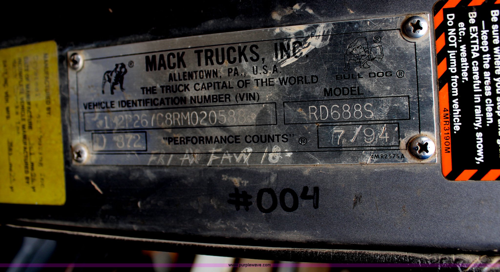 1994 Mack RS688S quad axle dump truck has sold in Kansas City, Kansas for $9570. Item H6510 sold on September 12th, 2013.