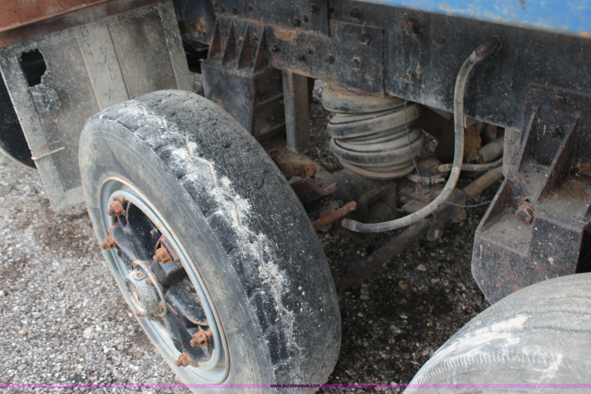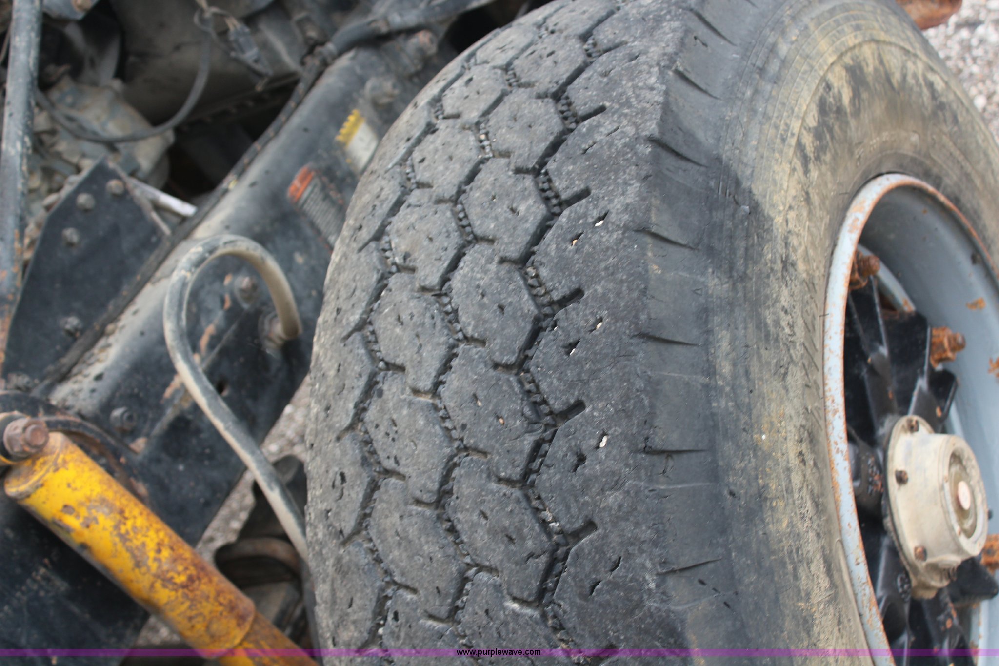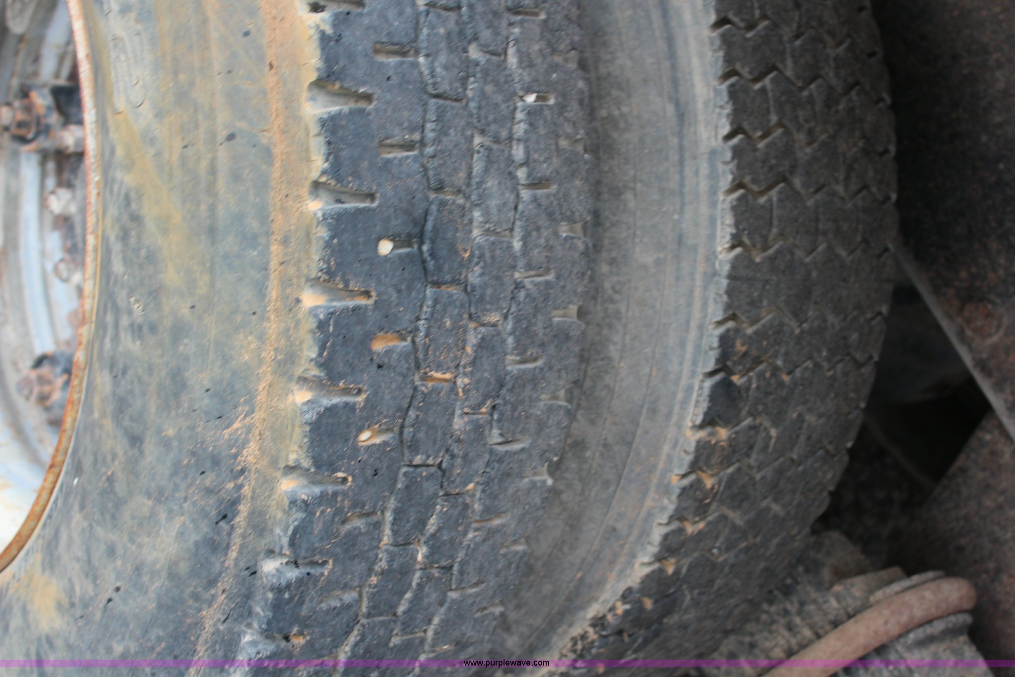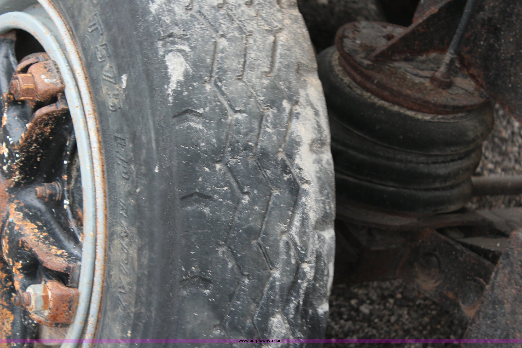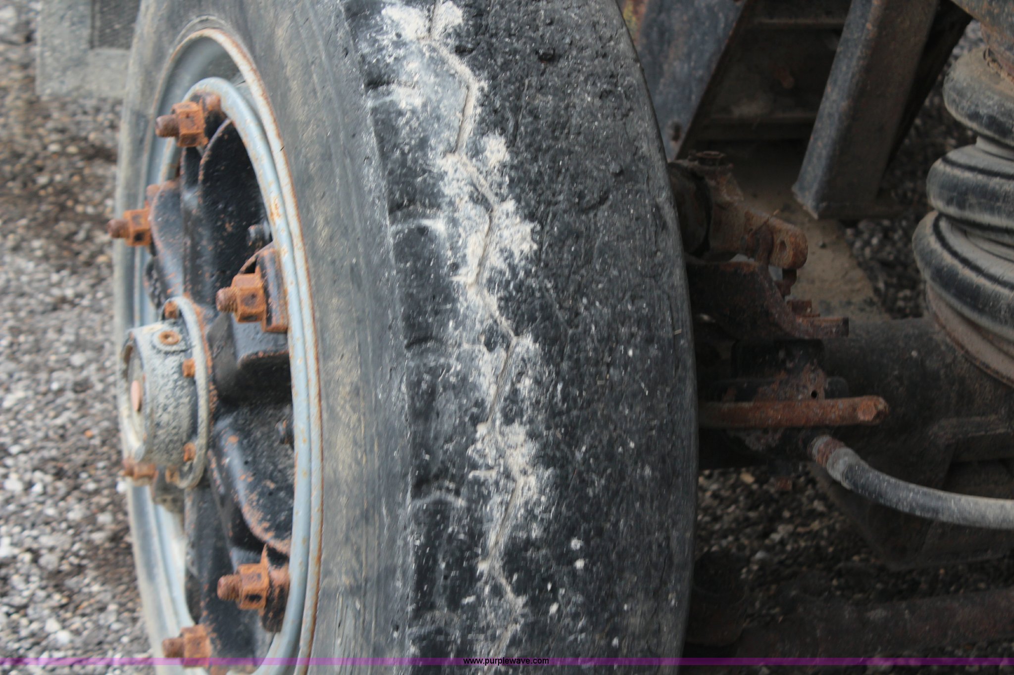 Purple Wave is selling a used Construction Dump Truck in Kansas. This item is a 1994 Mack RS688S quad axle dump truck with the following: 171,928 miles on odometer, 25,924 hours on meter, Mack E7-350 12L L6 diesel engine, 350 HP, Eaton Fuller eight speed manual transmission, Twin screw, AC and heat, AM/FM/cassette, Air suspension seat, 17'L dump bed, Air operated end gate, Electric roll over tarp, Single ram hoist, PTO, Dual 59 gallon fuel tanks, Pintle hitch, Air up, air down pusher axles, Front pusher axle is steerable, Spring suspension, Air brakes, 425/65R22.5 front tires, 225/70R22.5 pusher axle tires, 11R22.5 rear tires, GVWR 78,000 lbs, FAWR 18,000 lbs, IAWR 19,000 lbs, RAWR 19,000 lbs, Dual 12,000 lbs pusher axles, Hood damage, Bed rust