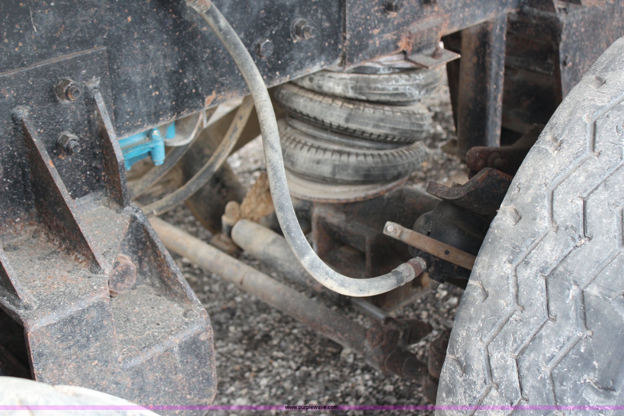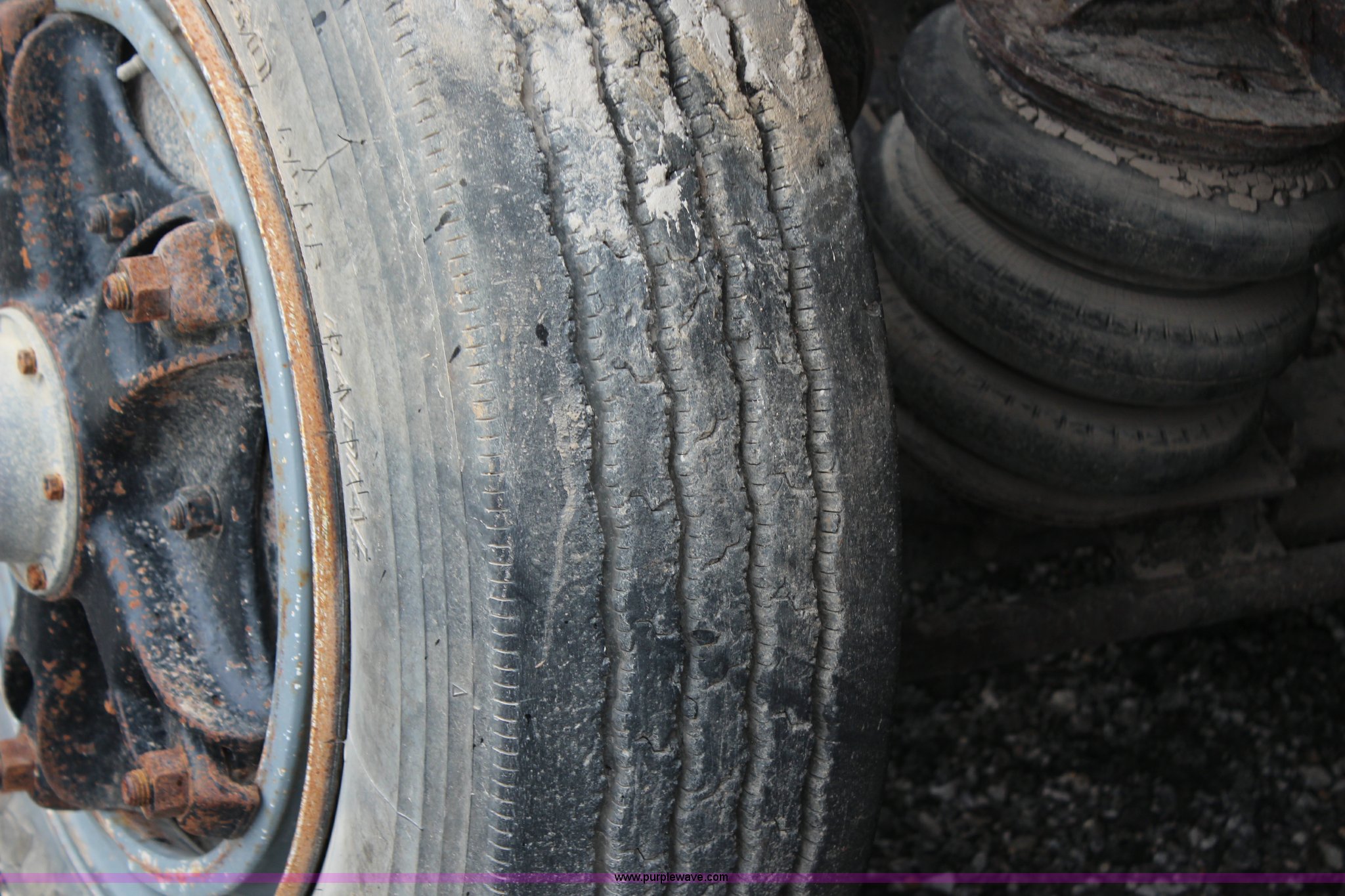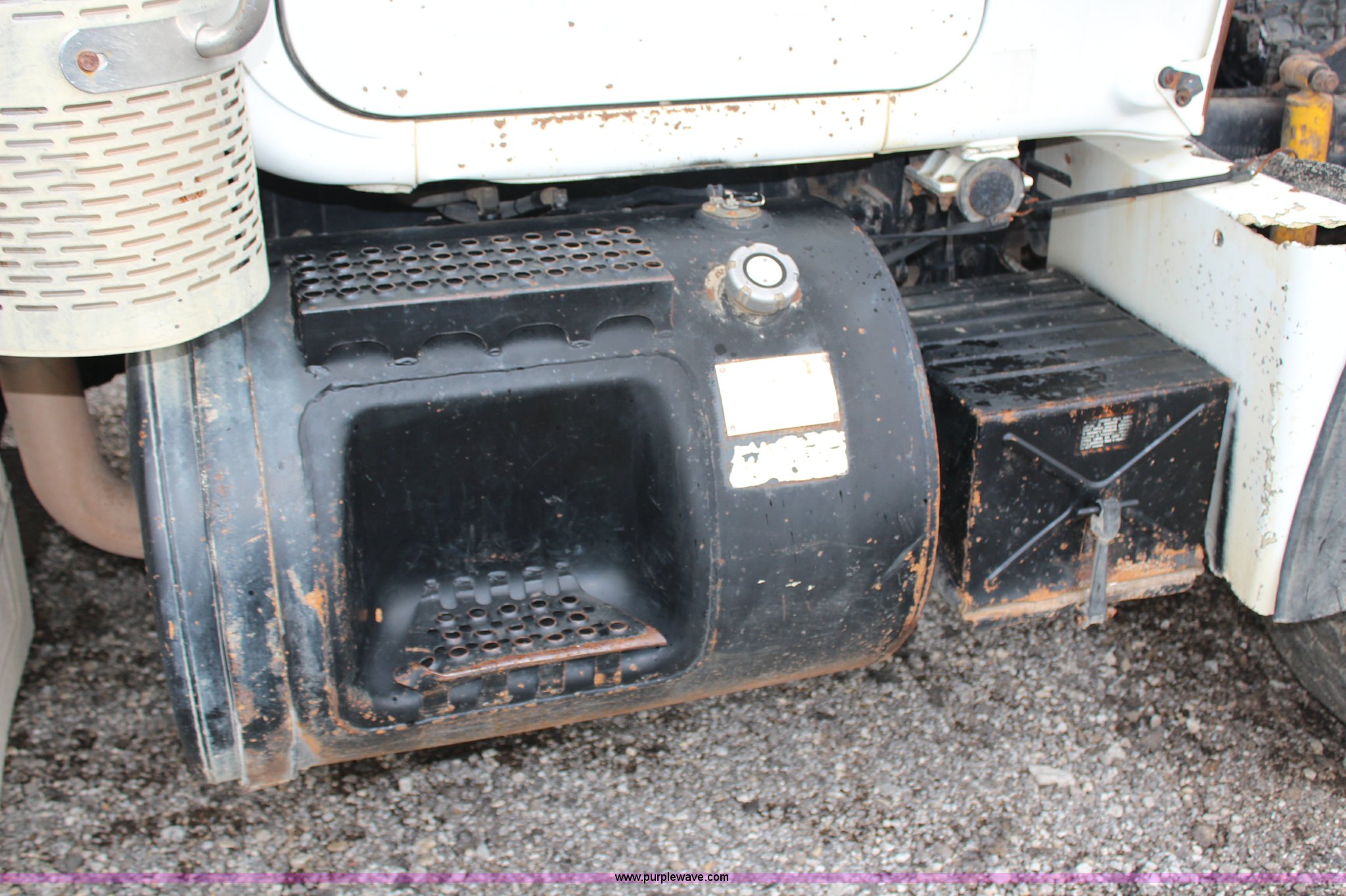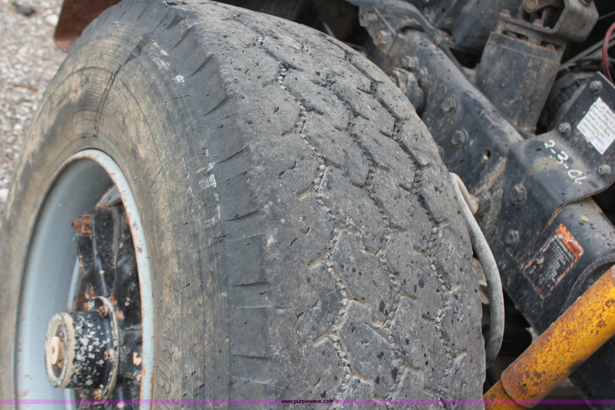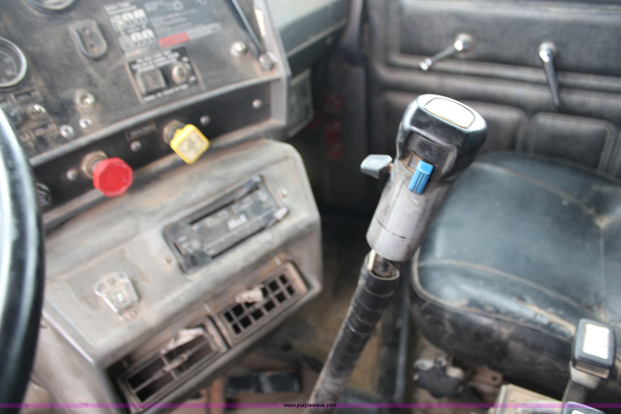 Purple Wave is selling a used Construction Dump Truck in Kansas. This item is a 1994 Mack RS688S quad axle dump truck with the following: 171,928 miles on odometer, 25,924 hours on meter, Mack E7-350 12L L6 diesel engine, 350 HP, Eaton Fuller eight speed manual transmission, Twin screw, AC and heat, AM/FM/cassette, Air suspension seat, 17'L dump bed, Air operated end gate, Electric roll over tarp, Single ram hoist, PTO, Dual 59 gallon fuel tanks, Pintle hitch, Air up, air down pusher axles, Front pusher axle is steerable, Spring suspension, Air brakes, 425/65R22.5 front tires, 225/70R22.5 pusher axle tires, 11R22.5 rear tires, GVWR 78,000 lbs, FAWR 18,000 lbs, IAWR 19,000 lbs, RAWR 19,000 lbs, Dual 12,000 lbs pusher axles, Hood damage, Bed rust