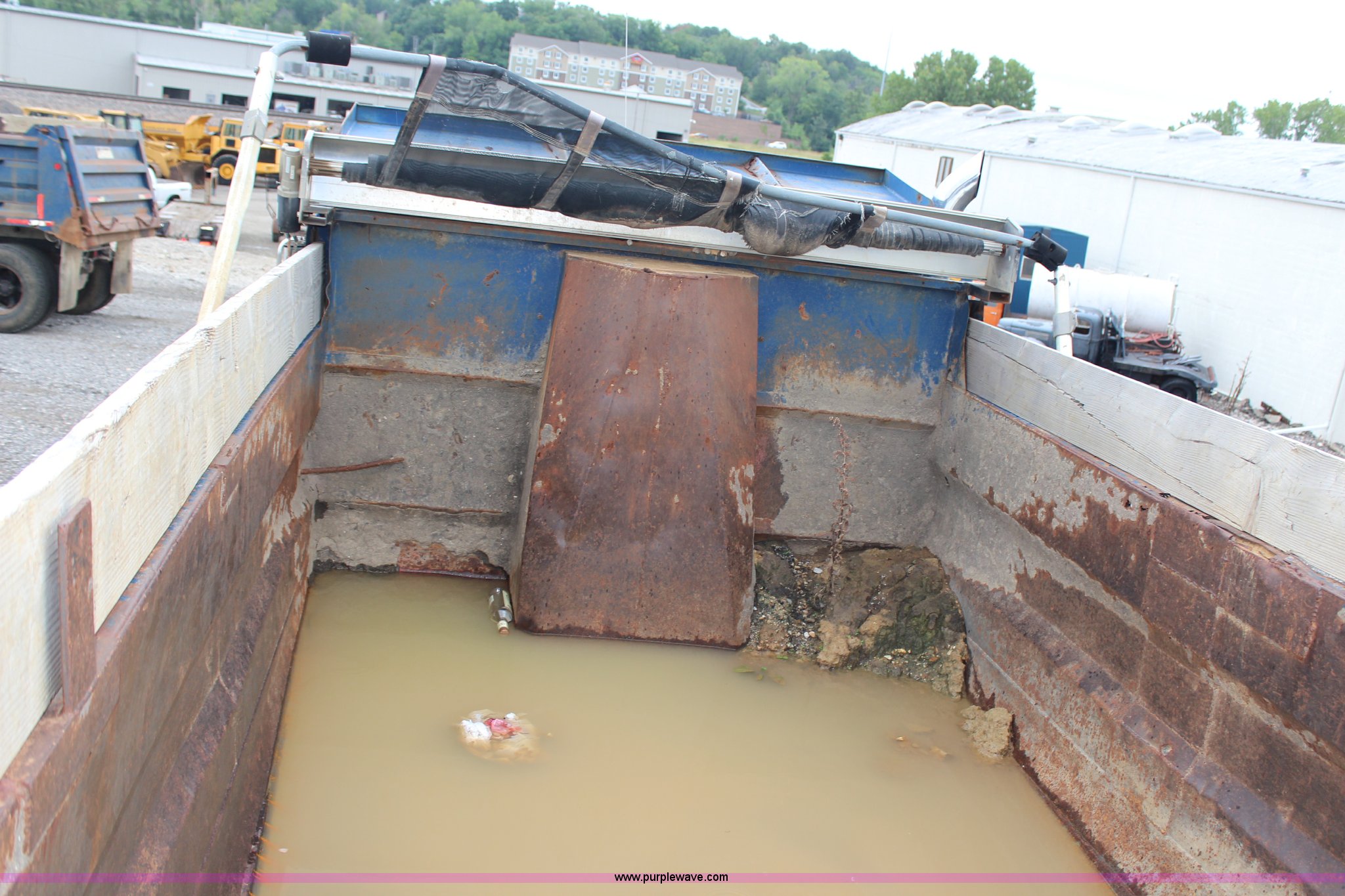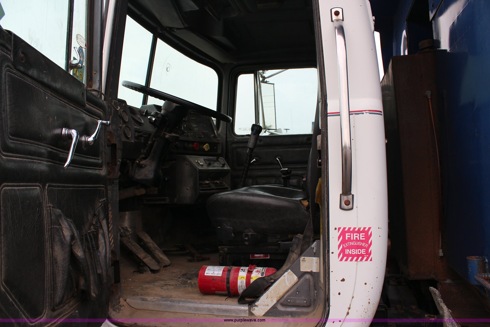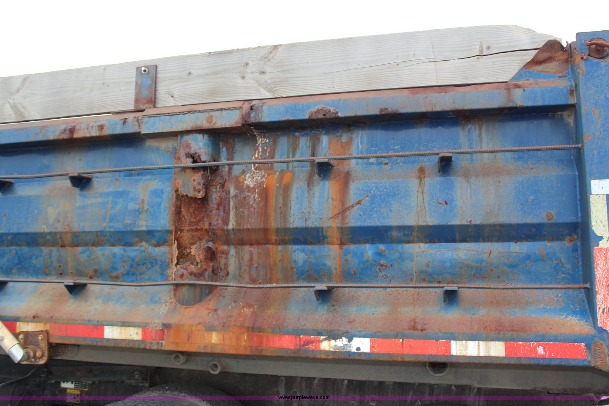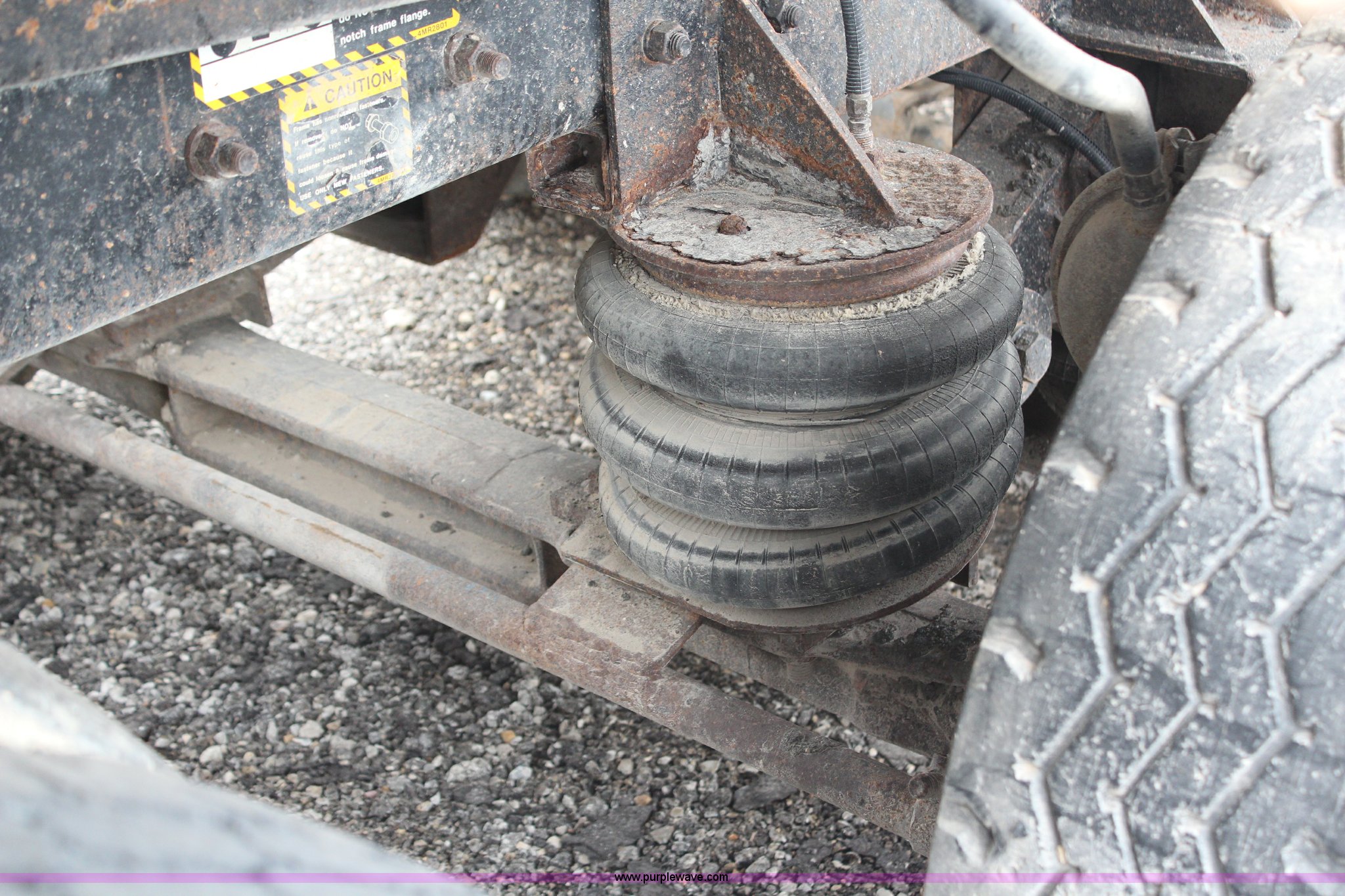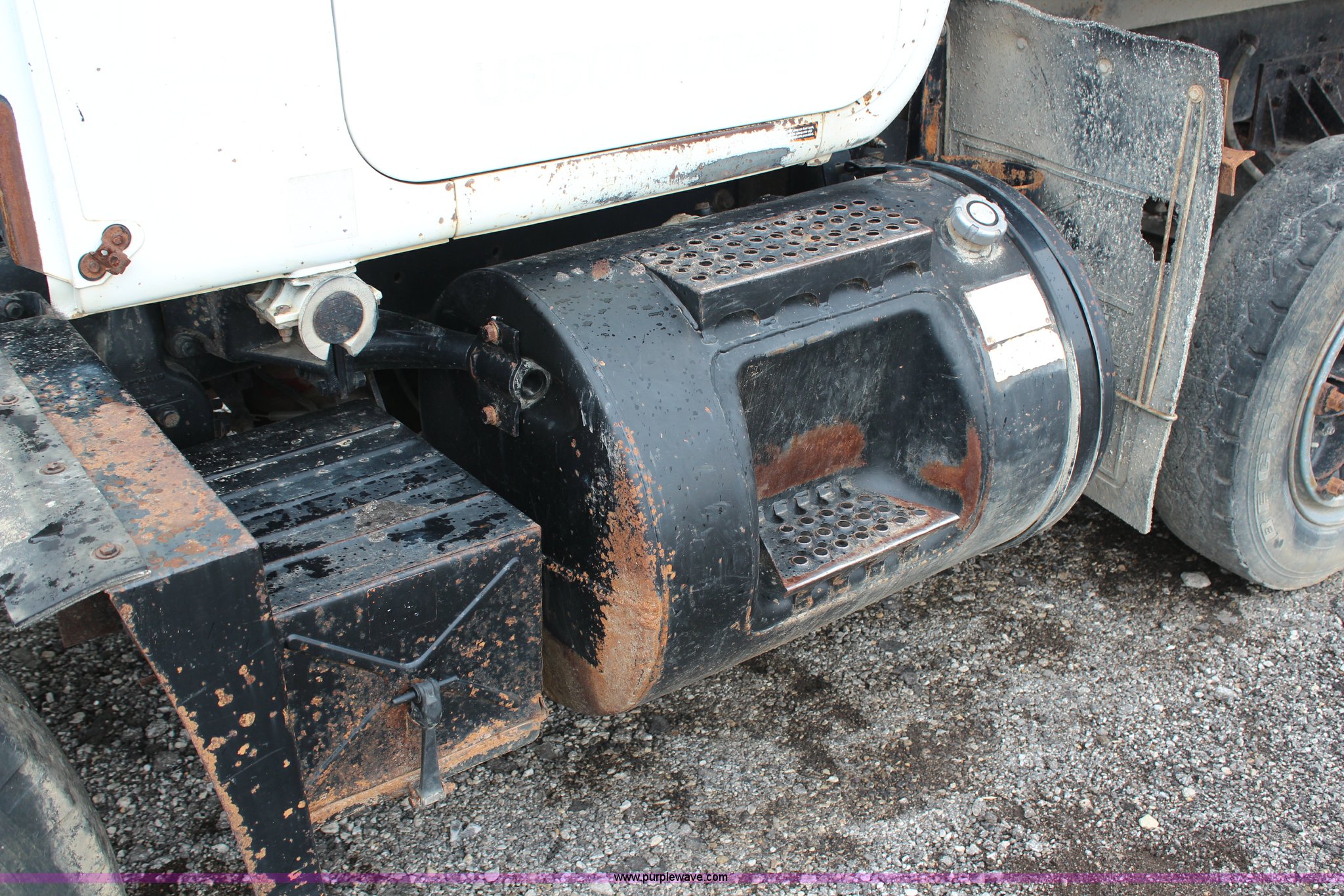 Purple Wave is selling a used Construction Dump Truck in Kansas. This item is a 1994 Mack RS688S quad axle dump truck with the following: 171,928 miles on odometer, 25,924 hours on meter, Mack E7-350 12L L6 diesel engine, 350 HP, Eaton Fuller eight speed manual transmission, Twin screw, AC and heat, AM/FM/cassette, Air suspension seat, 17'L dump bed, Air operated end gate, Electric roll over tarp, Single ram hoist, PTO, Dual 59 gallon fuel tanks, Pintle hitch, Air up, air down pusher axles, Front pusher axle is steerable, Spring suspension, Air brakes, 425/65R22.5 front tires, 225/70R22.5 pusher axle tires, 11R22.5 rear tires, GVWR 78,000 lbs, FAWR 18,000 lbs, IAWR 19,000 lbs, RAWR 19,000 lbs, Dual 12,000 lbs pusher axles, Hood damage, Bed rust