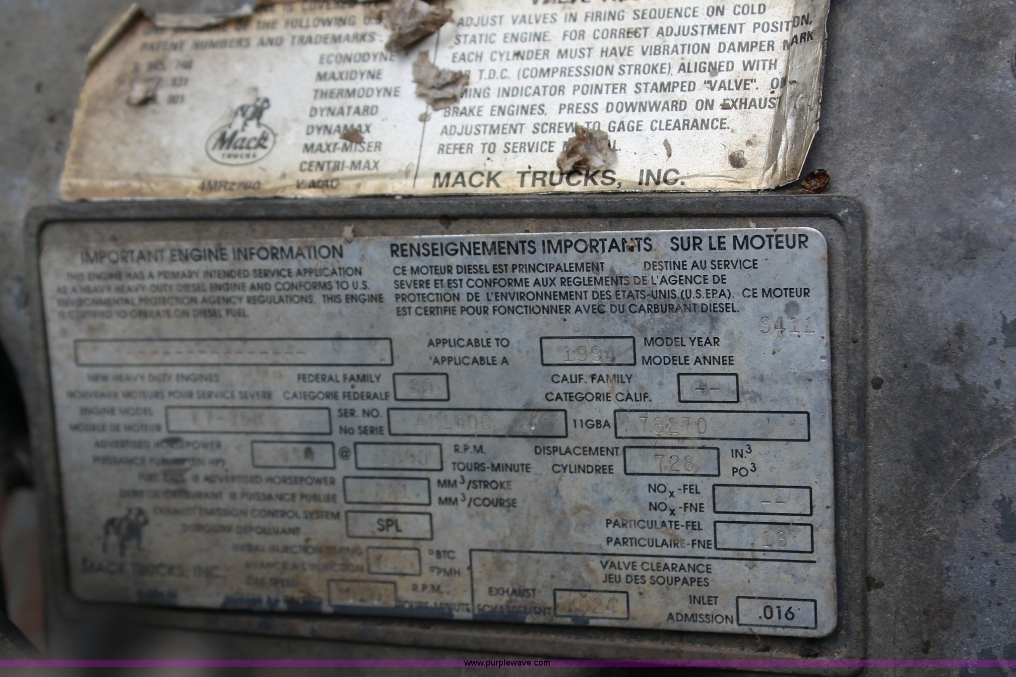 - Mack E7-350 12L L6 diesel engine