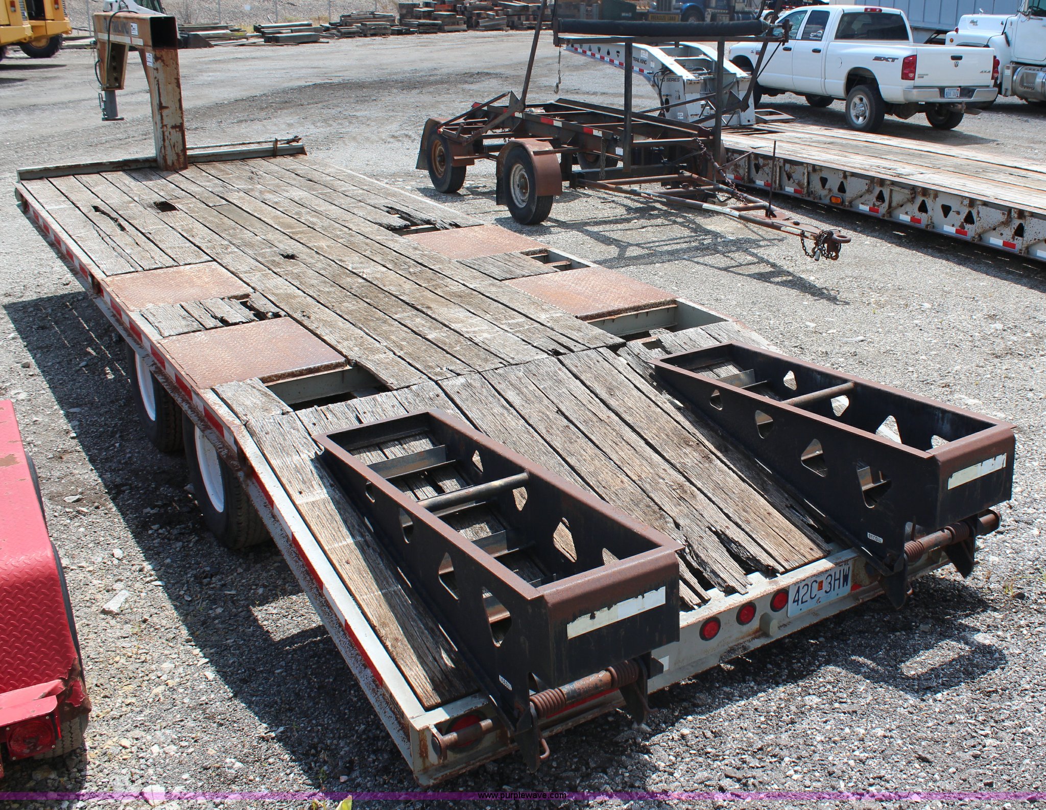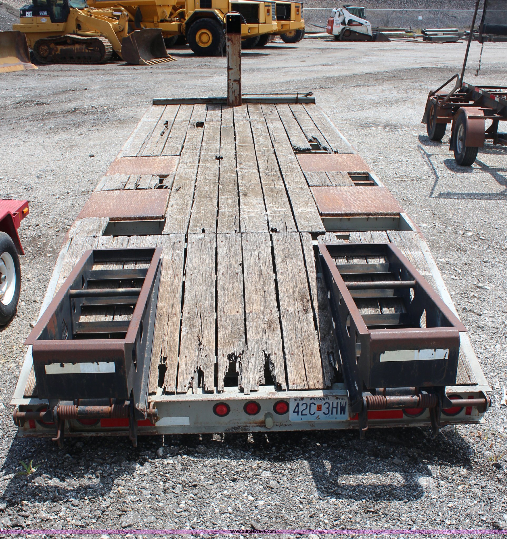 1999 Trail King double axle gooseneck trailer. Model TK18-2401, 24'L x 96"W, 19'L deck, 5' dovetail, 5' ramps, 235/85R16 tires, GVWR 24,780 lbs, FAWR 9,000 lbs. Buyer will receive title in buyer's name from the State of Missouri within 45 days of auction end. Bidders intending to later re-title the asset outside Missouri should research all tax and fee ramifications before bidding. 1TKC02425XM017134. Shipping quotes available. Ernie Rieke Equipment. 3311 Merriam Lane. Kansas City, KS 66106
