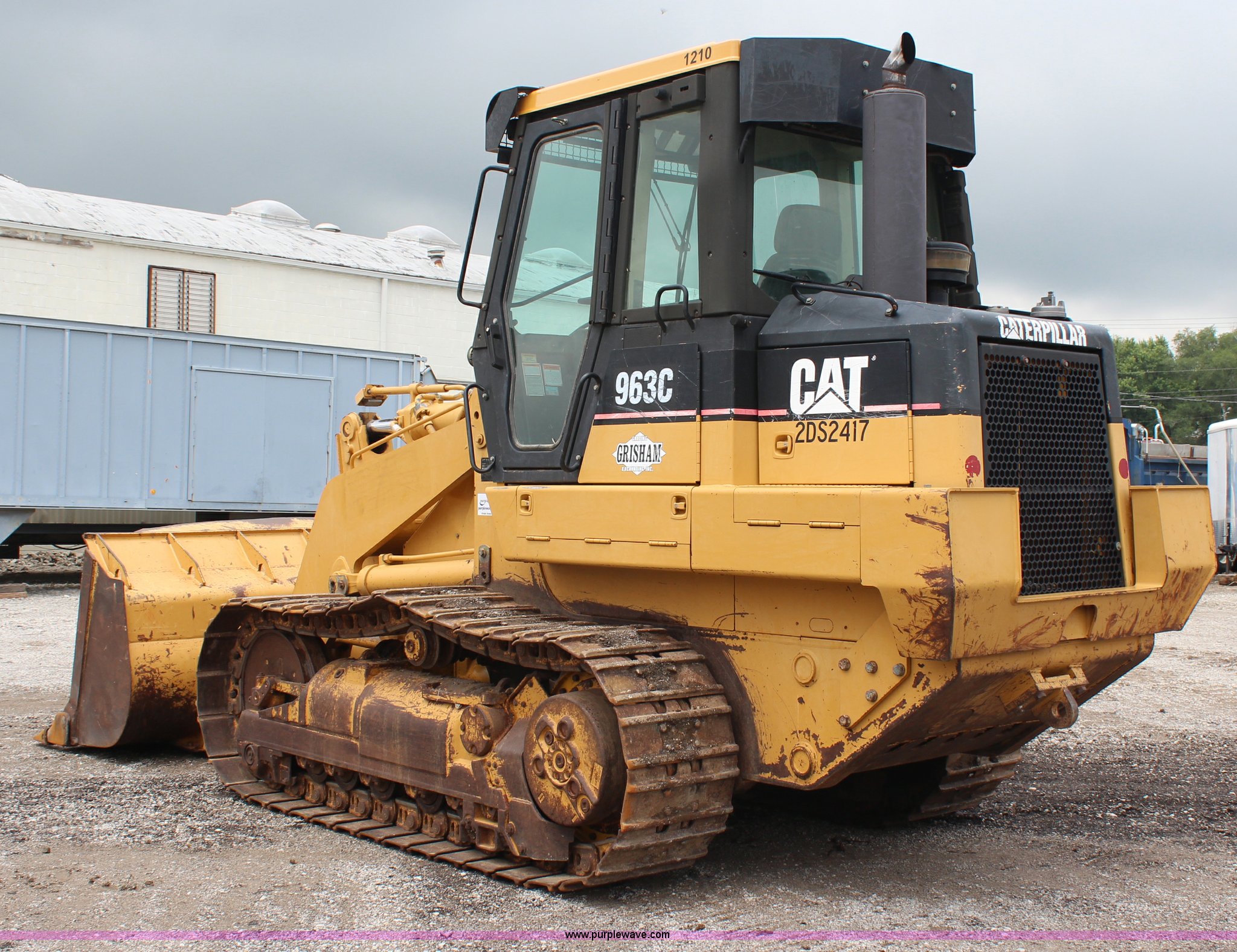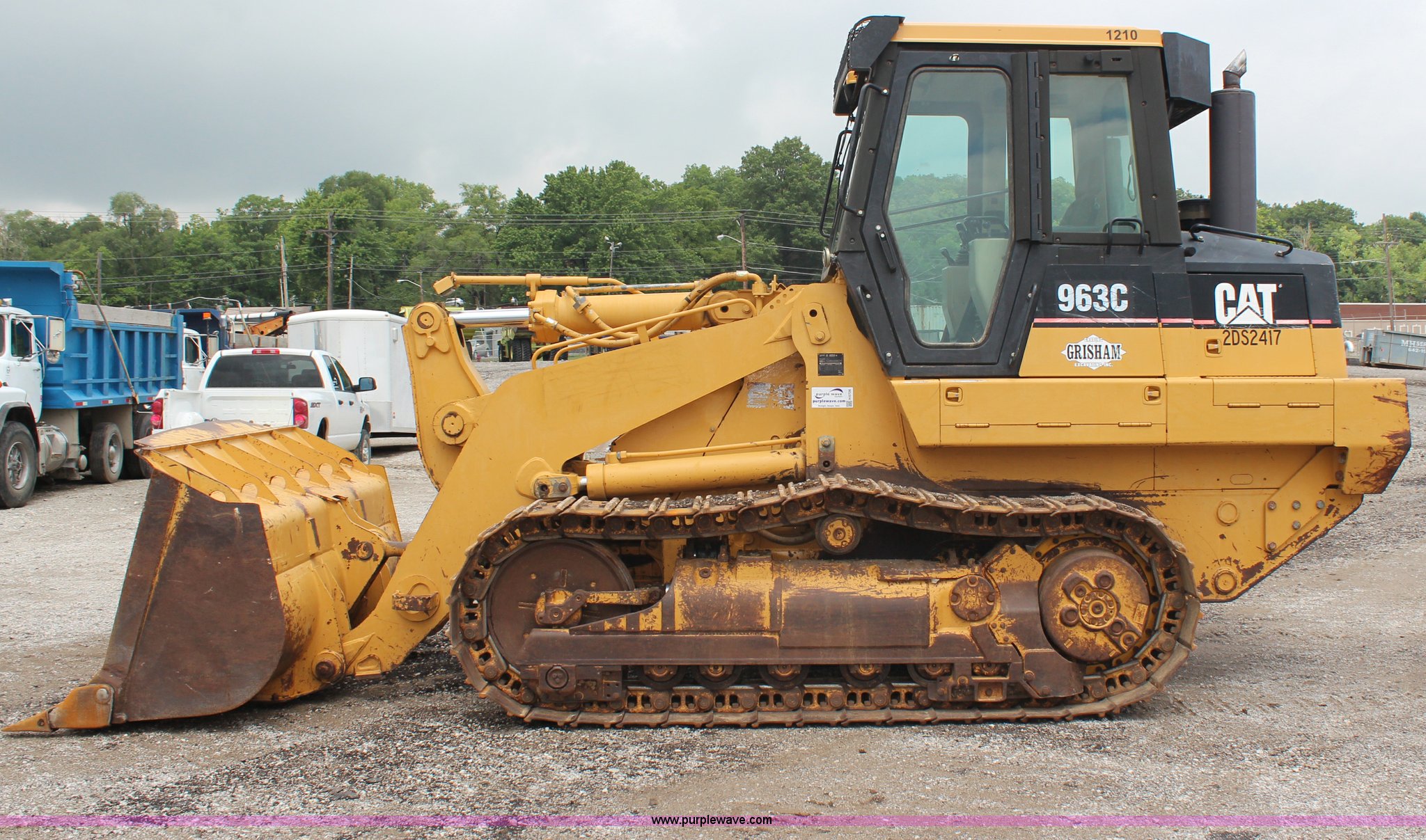 Purple Wave is selling a used Crawler Loader in Kansas. This item is a 2002 Caterpillar 963C track loader with the following: 6,777 hours on meter, Caterpillar 3116 diesel engine, 160 HP, Hydrostatic transmission, AC and heat, AM/FM, 22" tracks, Cracked right door glass, Serial CAA0963CA2DS02417