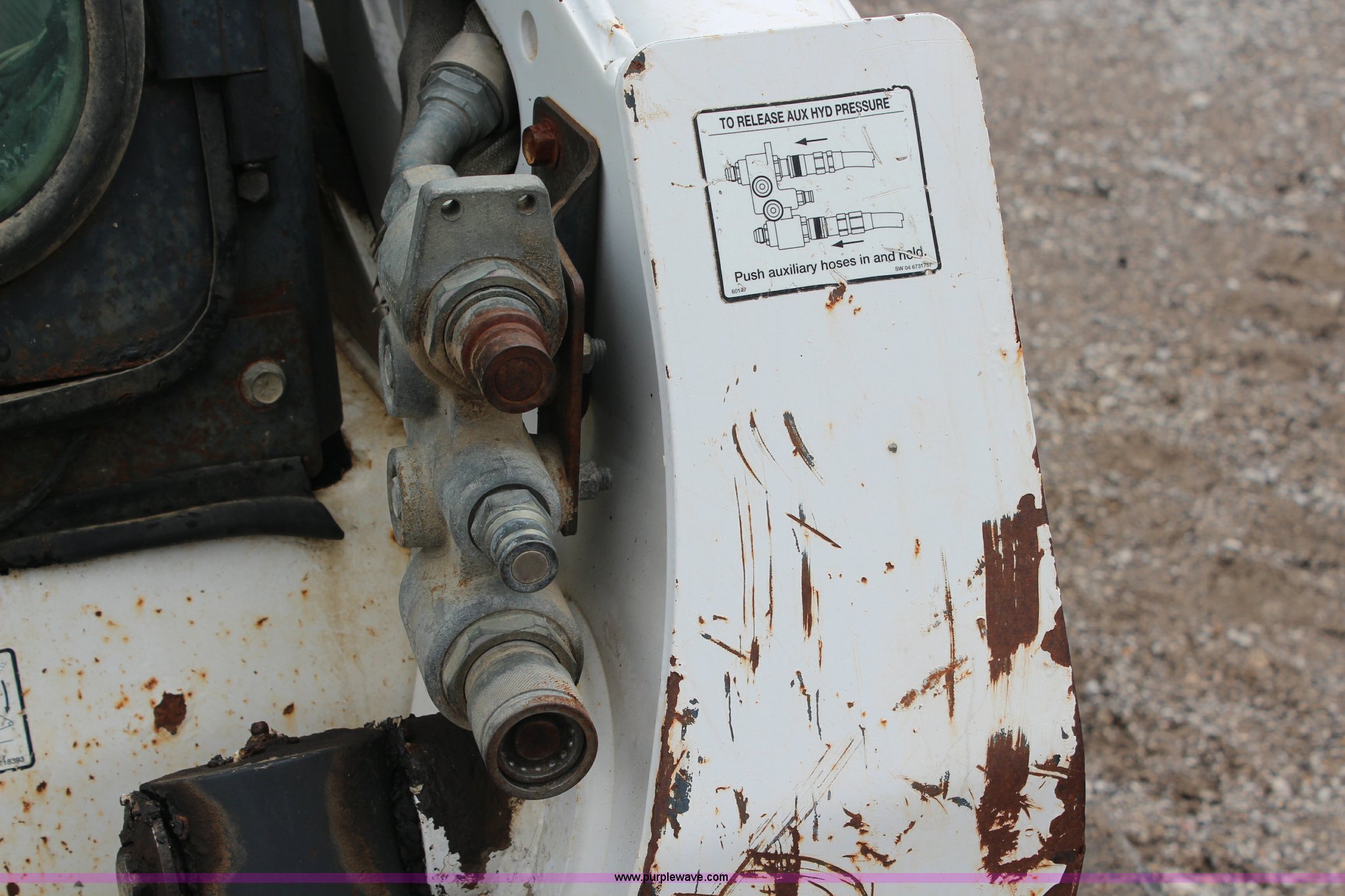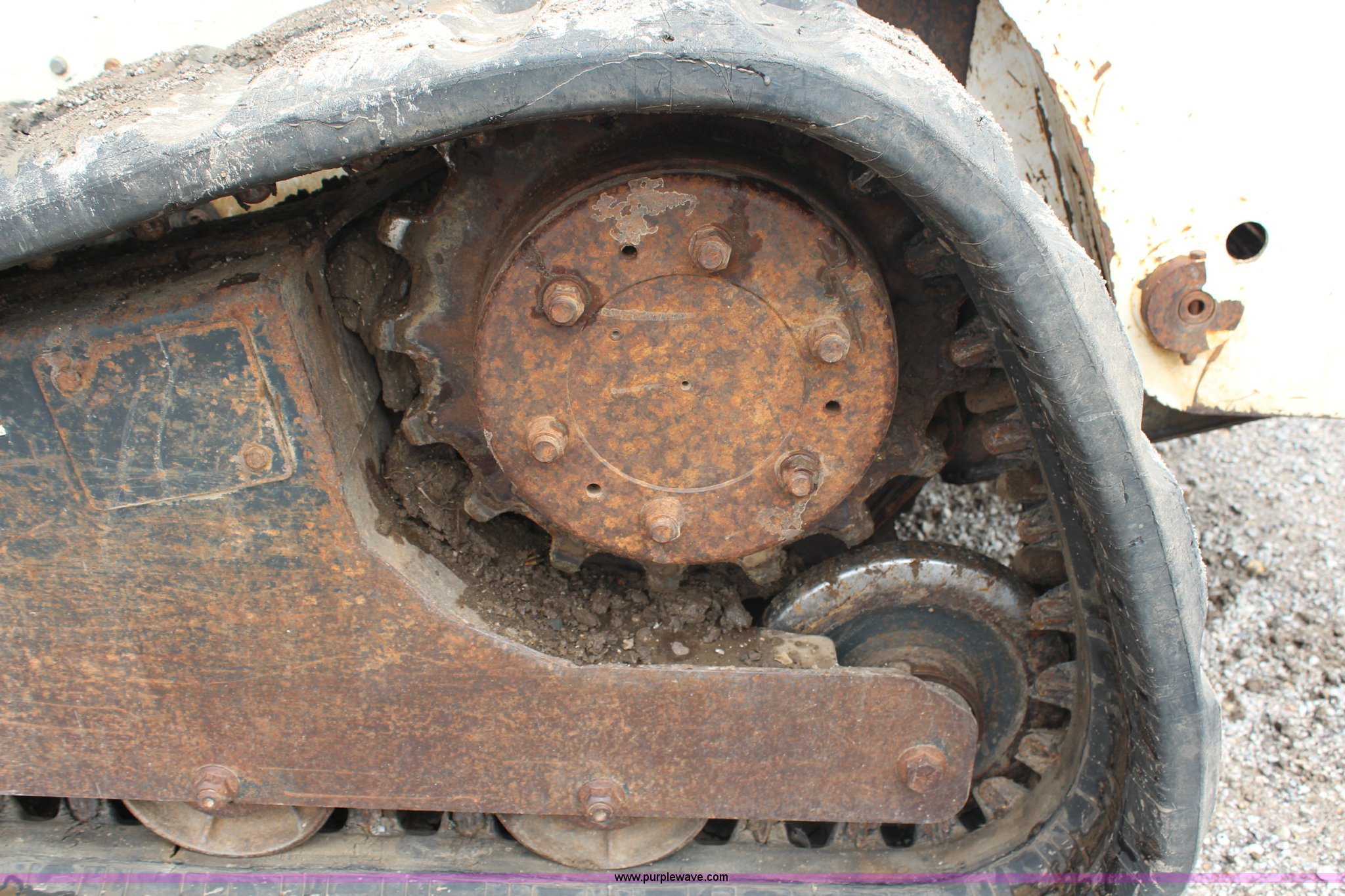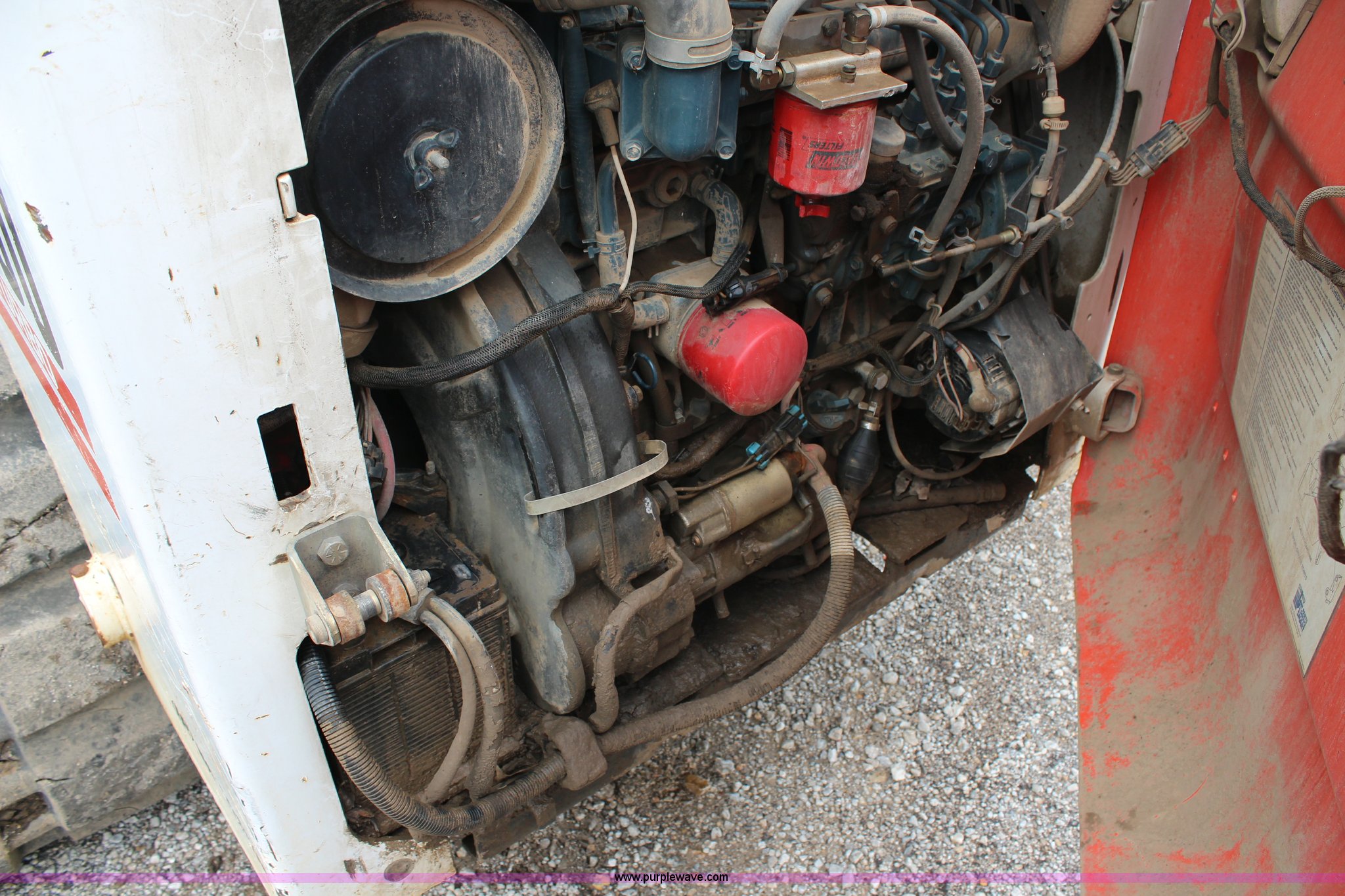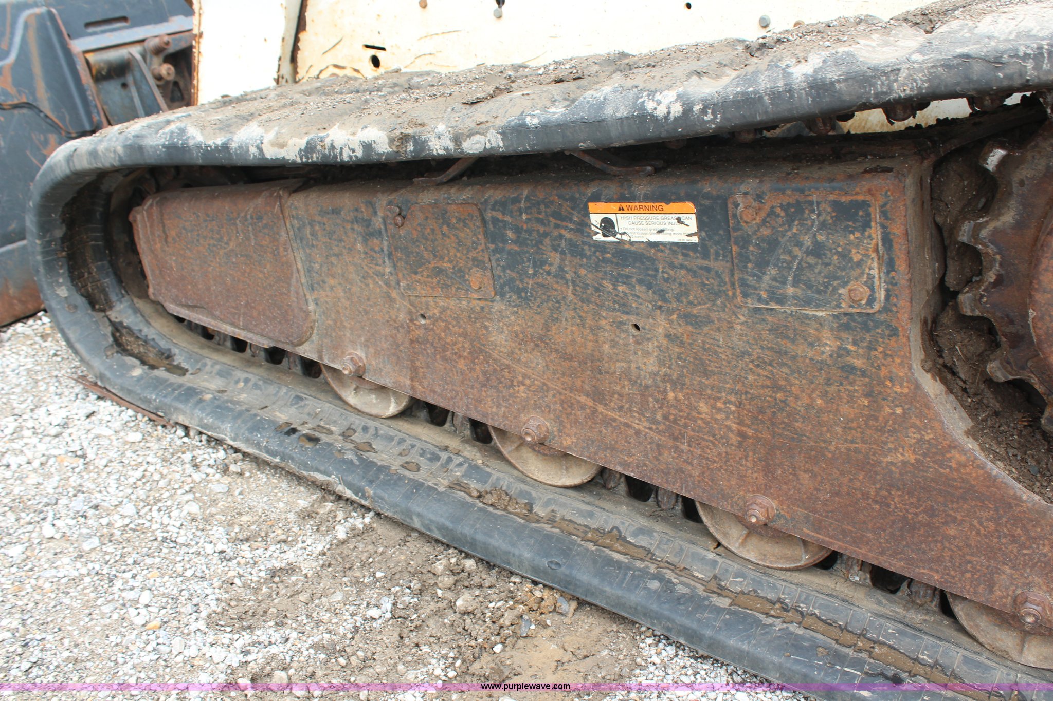 Purple Wave is selling a used Tracked Skid Steer Loader in Kansas. This item is a 2005 Bobcat T300 track skid steer with the following: 3,023 hours on meter, Kubota four cylinder turbo diesel engine, Foot and hand controls, AC and heat, AM/FM, 80" toothed bucket, Auxiliary hydraulics, 18" tracks, 9,702 lbs. base operating weight, Engine door is bent, Left track idler bearing needs replaced, Serial 525414394