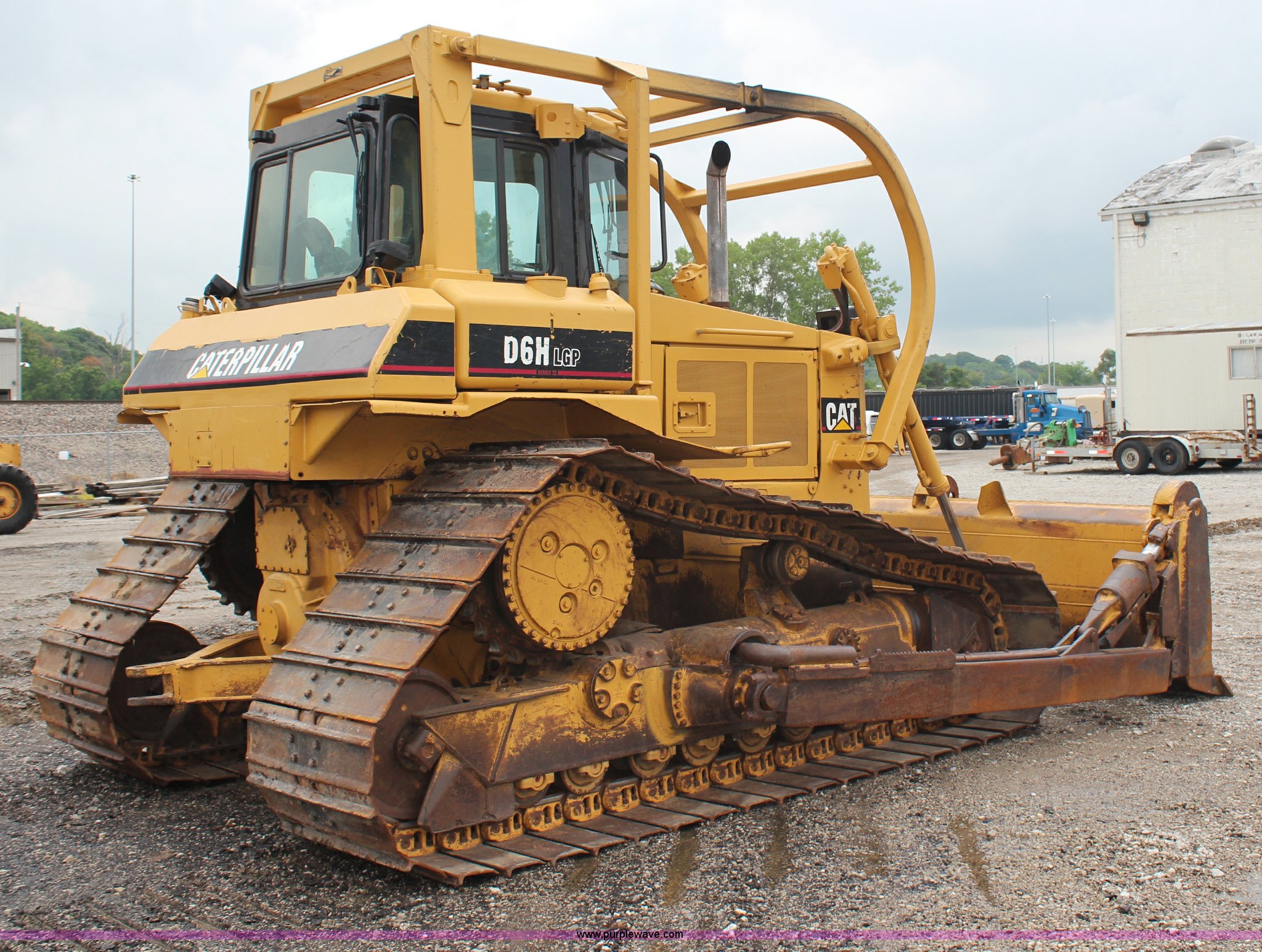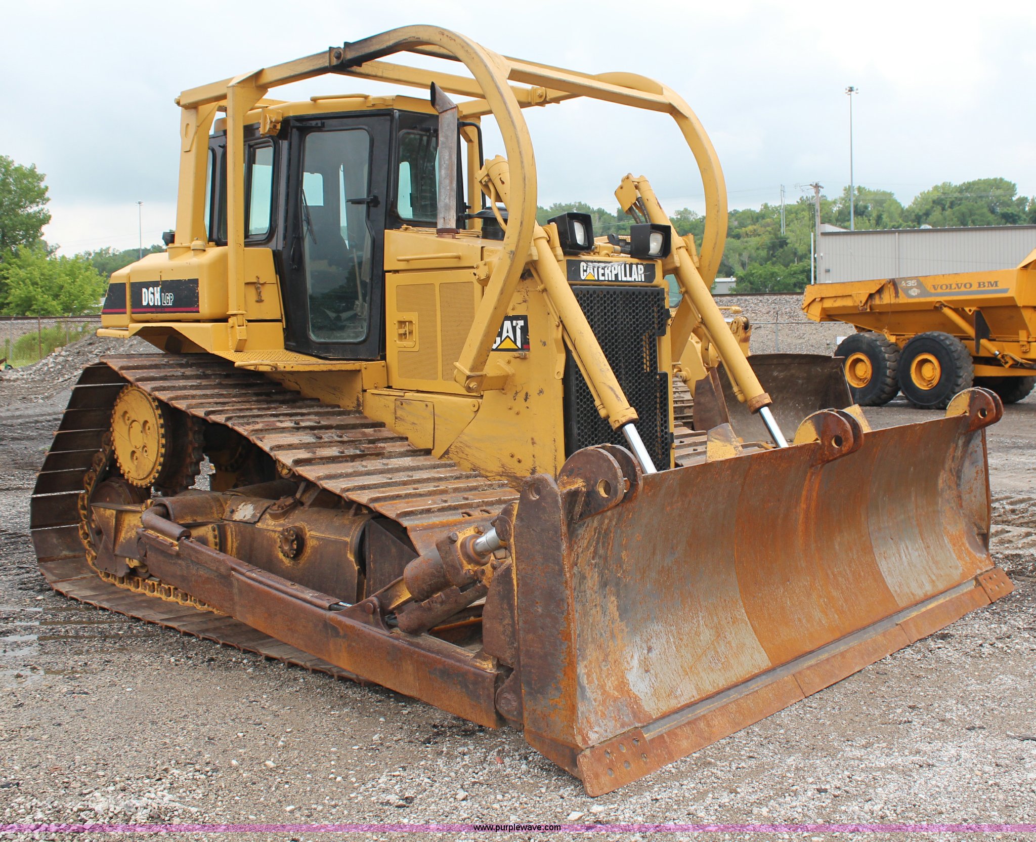 Purple Wave is selling a used Crawler Dozer in Kansas. This item is a 1992 Caterpillar D6H LGP Series II dozer with the following: 3,856 hours on meter, Caterpillar 3306 six cylinder turbo diesel engine, 170 HP, Powershift transmission, 3F-3R gears, Enclosed cab, AM/FM/CD, Front and rear work lights, Front and rear windshield wipers, Sweeps, Differential steering, 13' S-dozer blade, Tilt, Rear draw bar, V-track undercarriage, (8) bottom rollers, 36"W single grouser tracks, 45,163 lbs. base operating weight, Serial 4GG04256