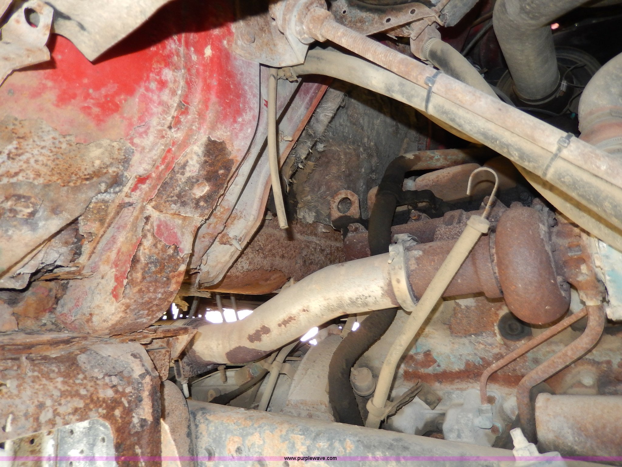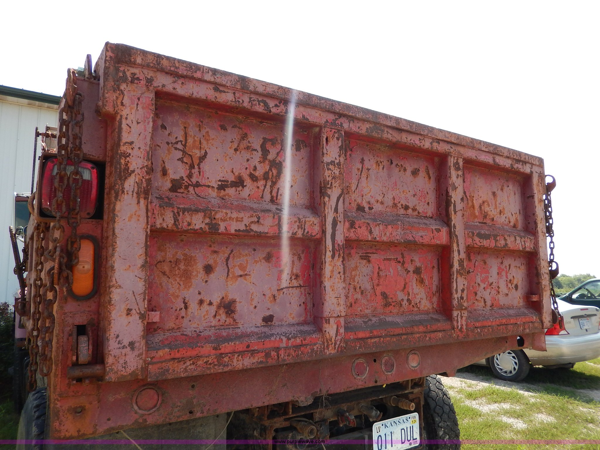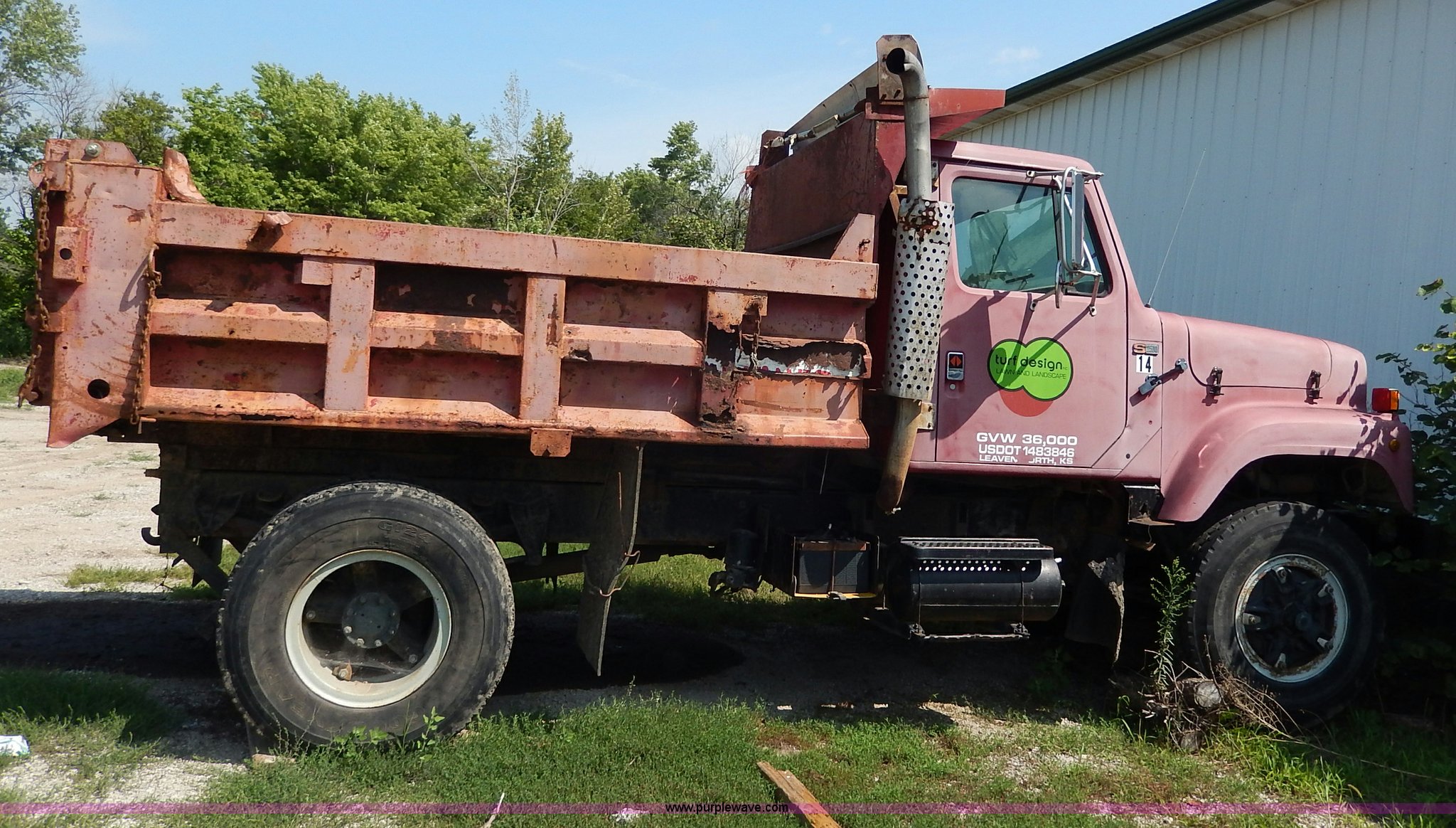 Purple Wave is selling a used Construction Dump Truck in Kansas. This item is a 1989 International S2500 dump truck with the following: 93,464 miles on odometer, International DT466 7.6L L6 diesel engine, Automatic transmission, Heat, AM/FM, Air horn, 10' x 8' bed, Manual end gate, Rollover tarp, Damaged,, Block heater, Plow and spreader controls, Trailer wiring, Pintle hitch, Rear hydraulic hookups, 50 gallon fuel tank, Front mount PTO, Spring suspension, Air brakes, 11.00-20 tires, GVWR 30,000 lbs, Body rust