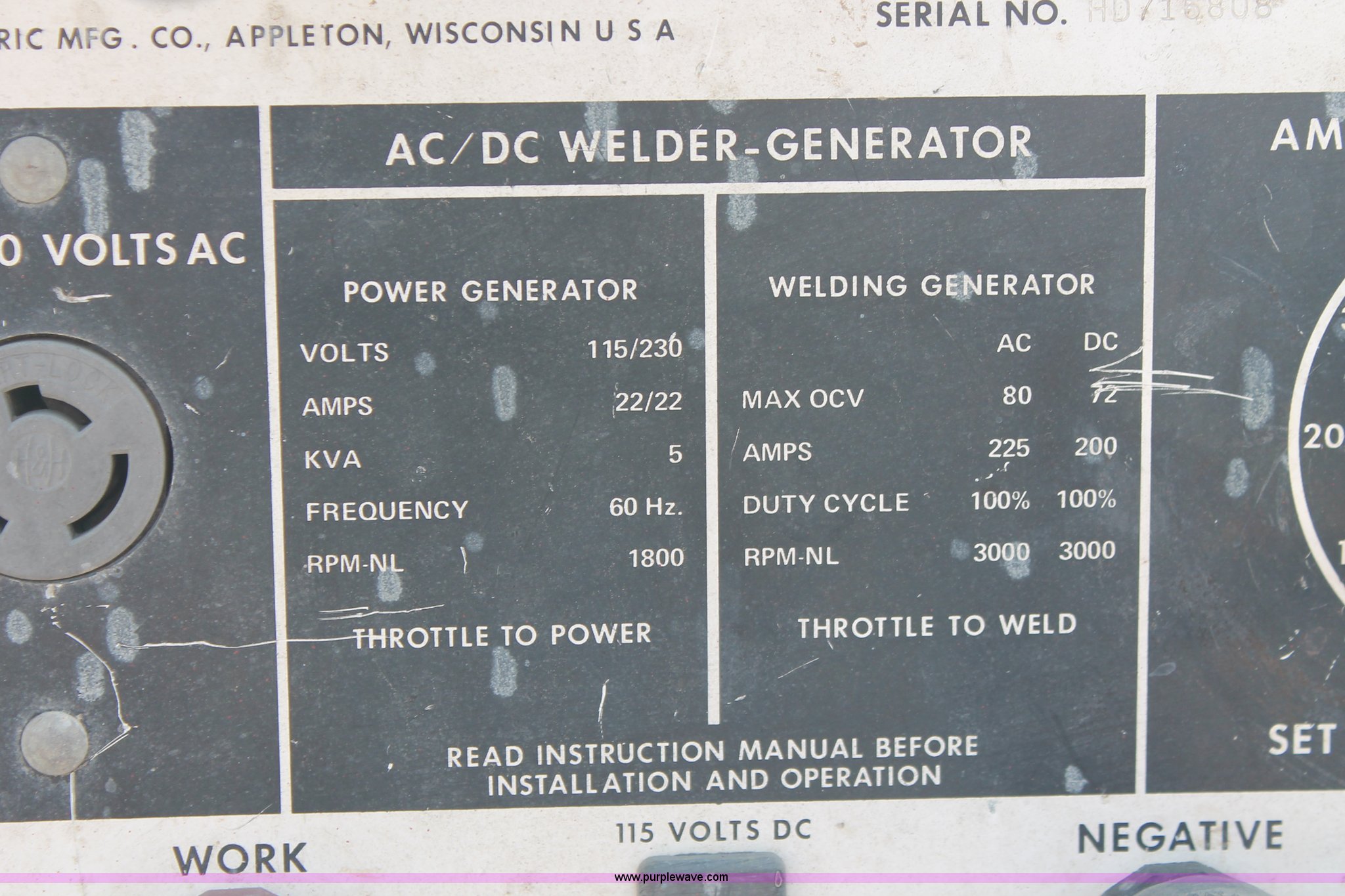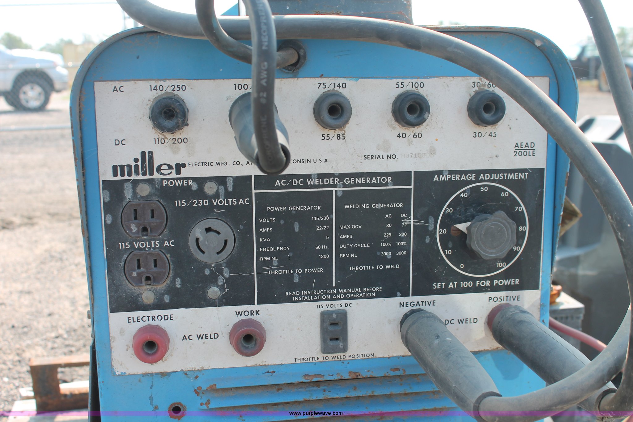 Purple Wave is selling a used Welder (Manual) in Kansas. This item is a Miller gas powered welder/generator with the following: Onan two cylinder gas engine, Serial 0973692757, AC/DC, 115/230V, Serial HD716808, Unit# 7-9981