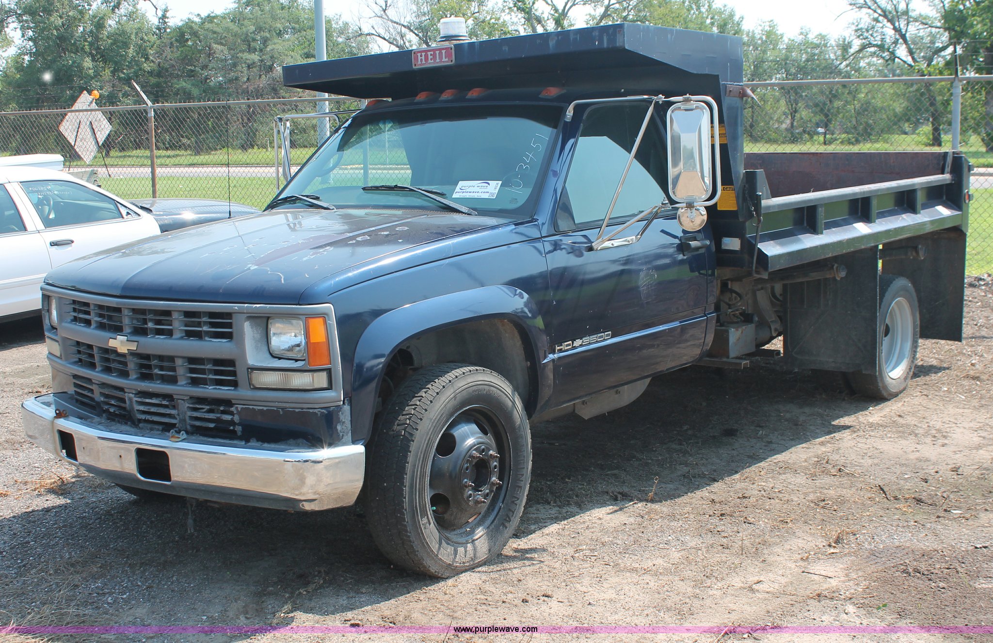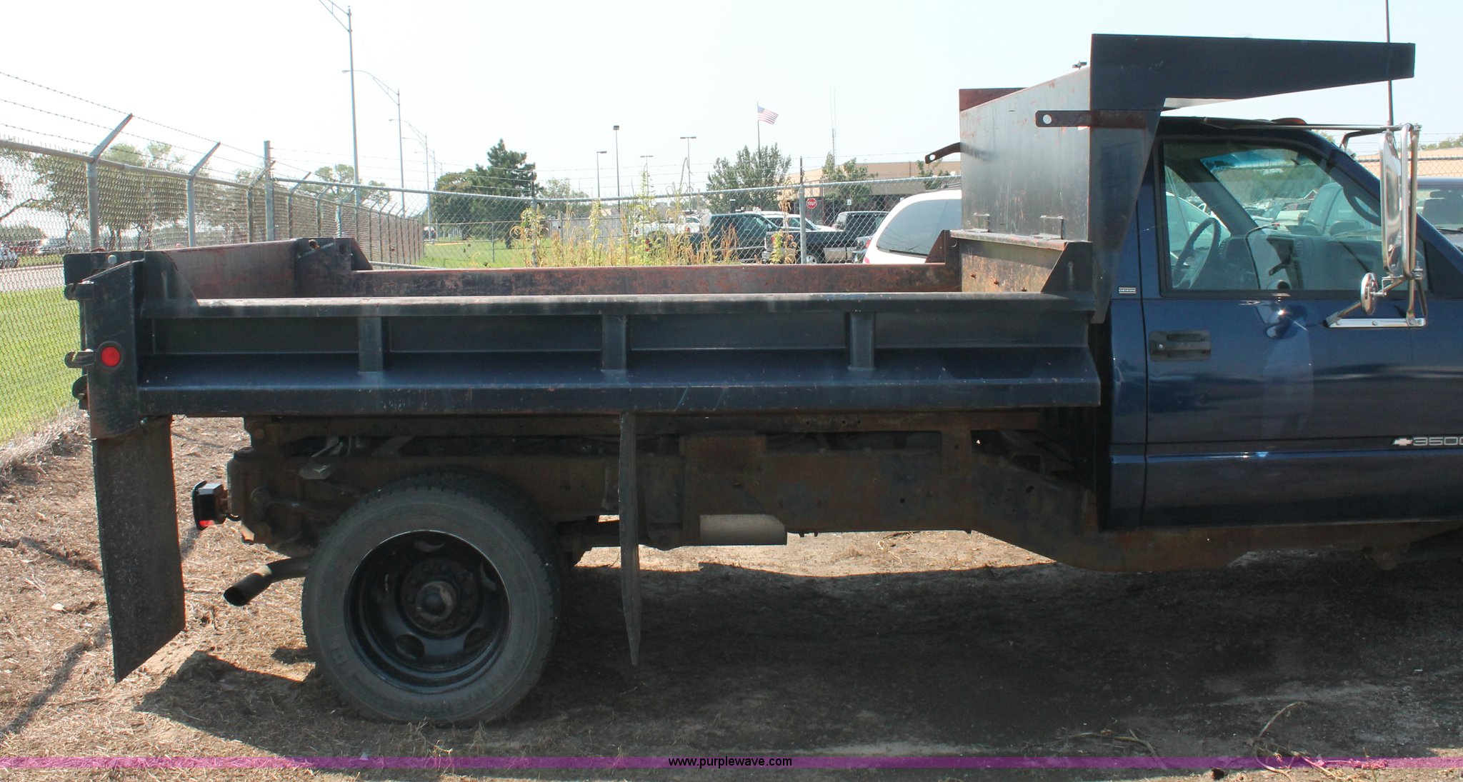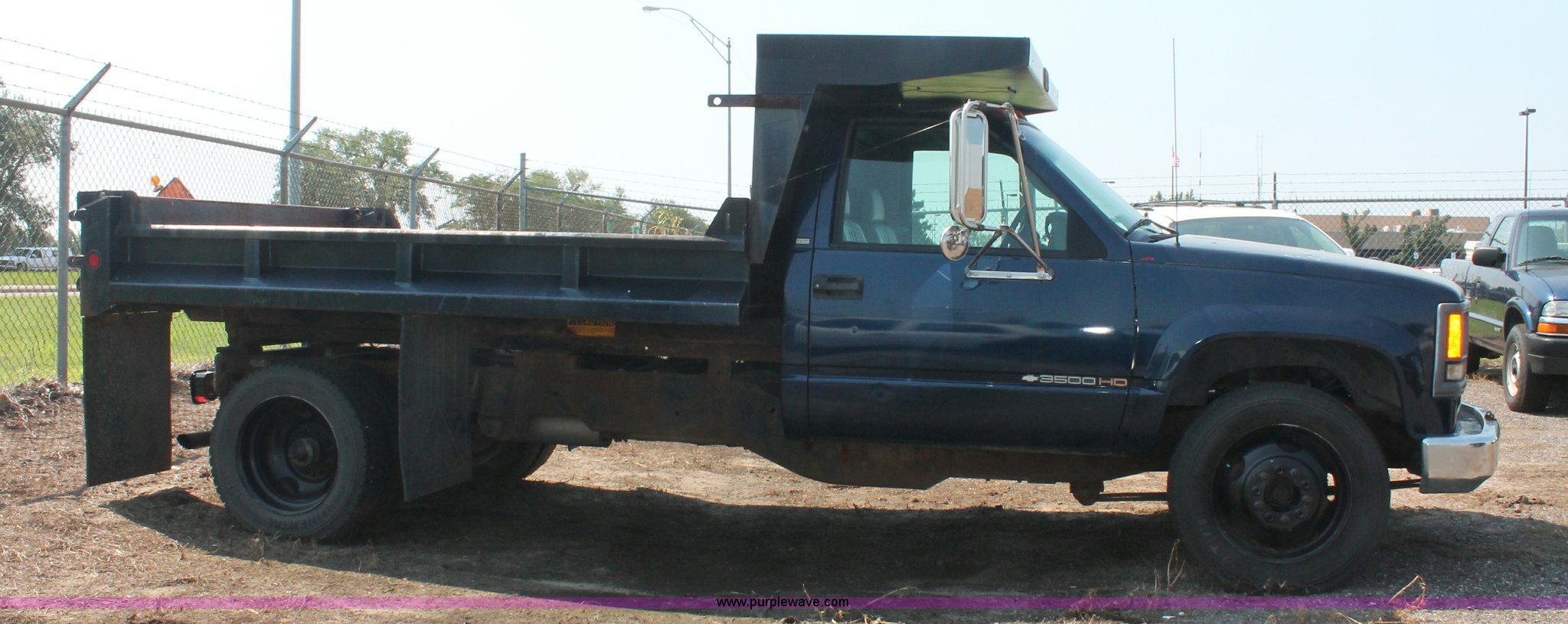 Purple Wave is selling a used 3/4 or 1 Ton Pickup or Van in Kansas. This item is a 1998 Chevrolet Silverado 3500HD dump body truck with the following: 69,183 miles on odometer, 7,533 hours on aftermarket hour meter, 6.5L V8 OHV 16V turbo diesel engine, Automatic transmission, Heat, Manual windows and locks, Vinyl interior, Electric trailer brake booster, Heil dump body, 10'L x 95"W, Over cab protector, Dump style tailgate, 10"H sides with top mount slots for additional 6" side boards, Electric/hydraulic bed hoist, Dual fuel tanks, Receiver hitch, Trailer wiring, 225/70R19.5 tires, Exterior scratches and dents, Paint peeling, Hail damage, Unit# 10-3451
