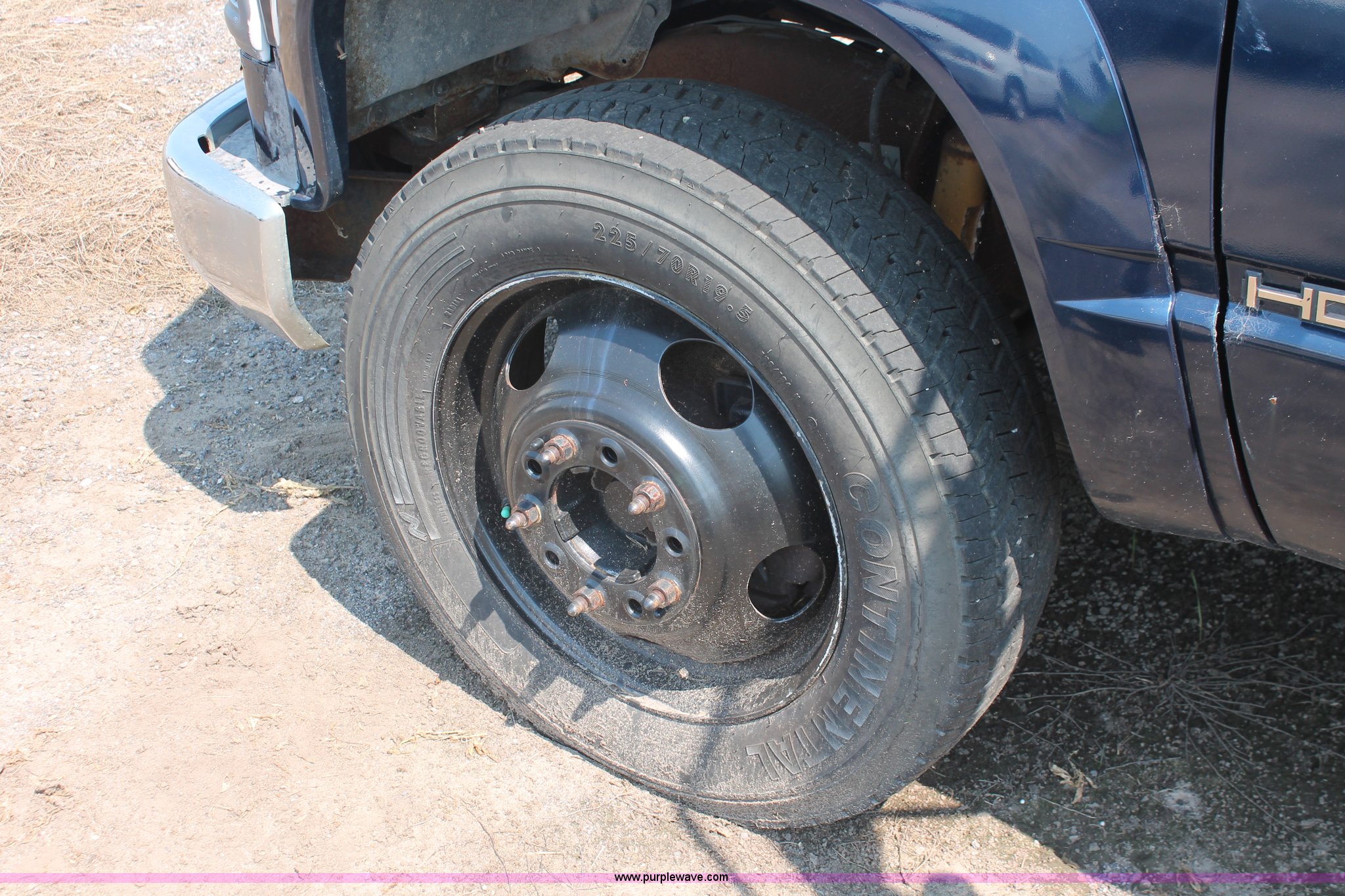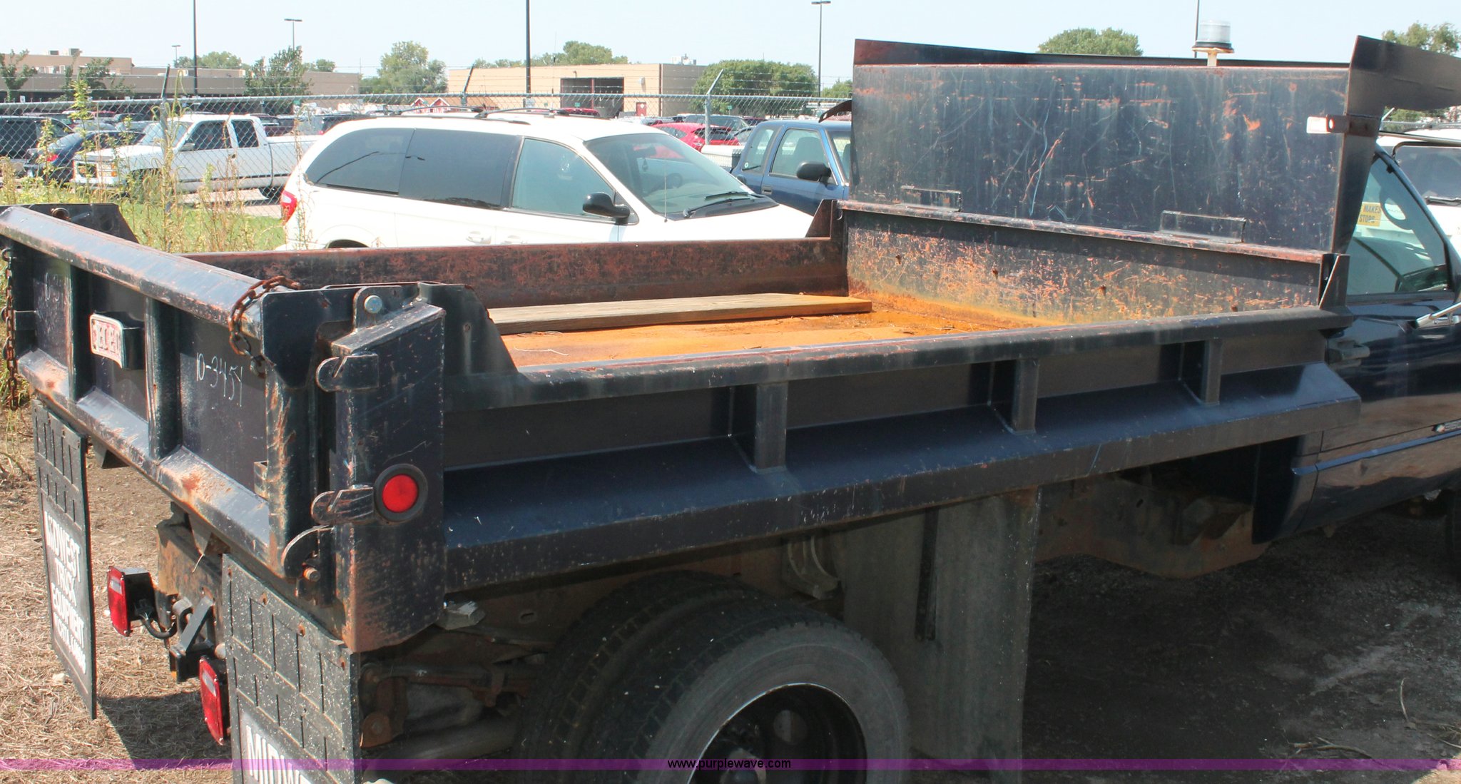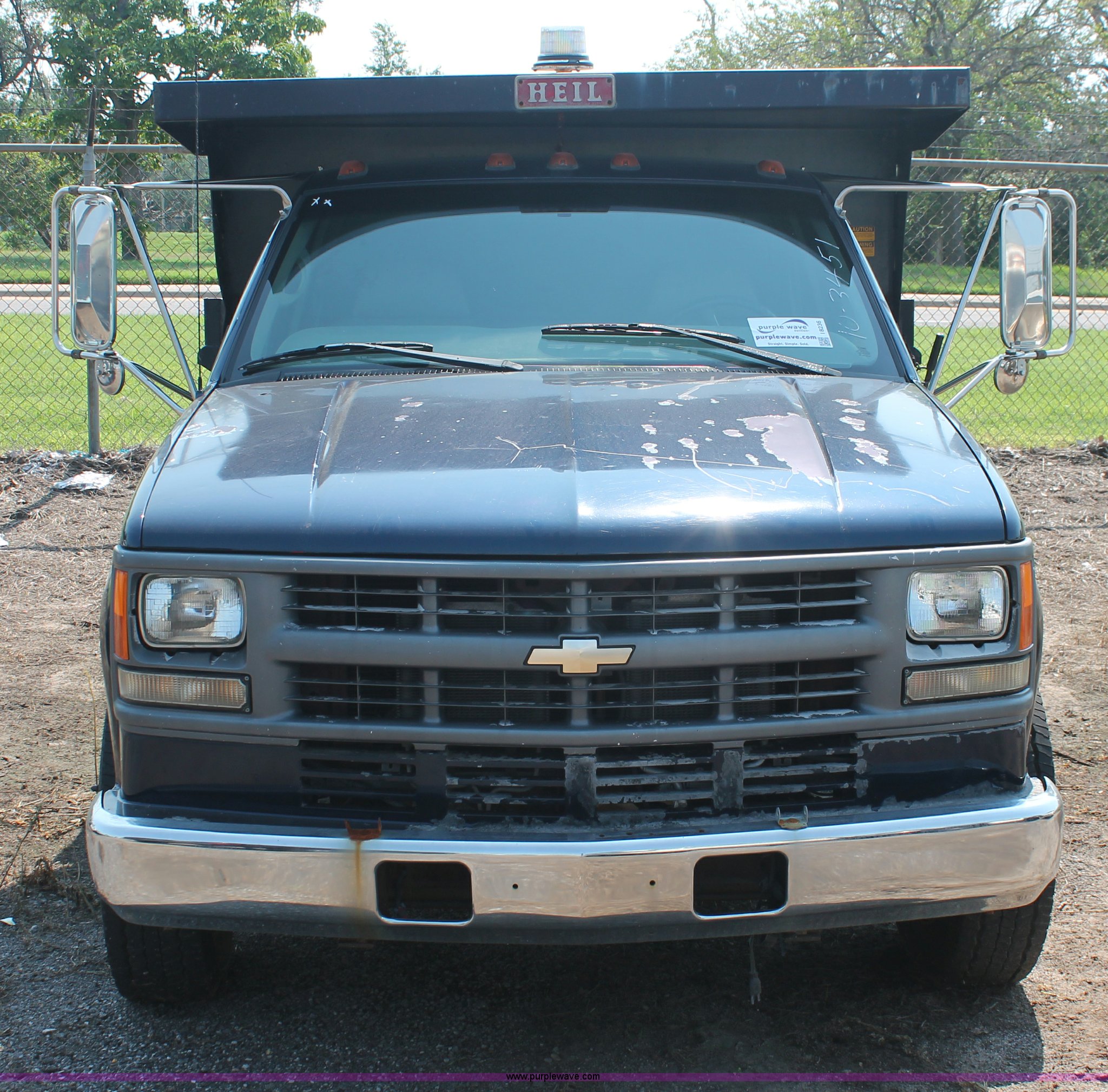 Purple Wave is selling a used 3/4 or 1 Ton Pickup or Van in Kansas. This item is a 1998 Chevrolet Silverado 3500HD dump body truck with the following: 69,183 miles on odometer, 7,533 hours on aftermarket hour meter, 6.5L V8 OHV 16V turbo diesel engine, Automatic transmission, Heat, Manual windows and locks, Vinyl interior, Electric trailer brake booster, Heil dump body, 10'L x 95"W, Over cab protector, Dump style tailgate, 10"H sides with top mount slots for additional 6" side boards, Electric/hydraulic bed hoist, Dual fuel tanks, Receiver hitch, Trailer wiring, 225/70R19.5 tires, Exterior scratches and dents, Paint peeling, Hail damage, Unit# 10-3451