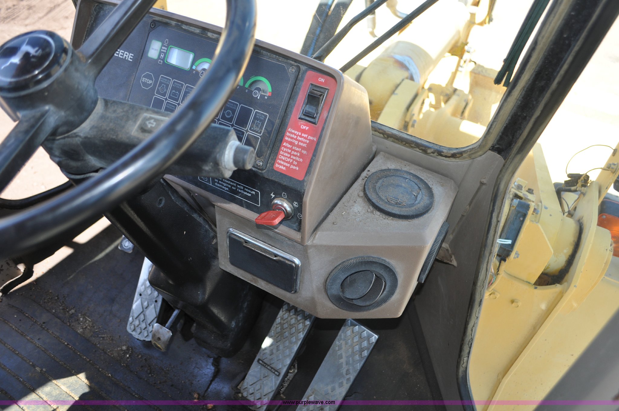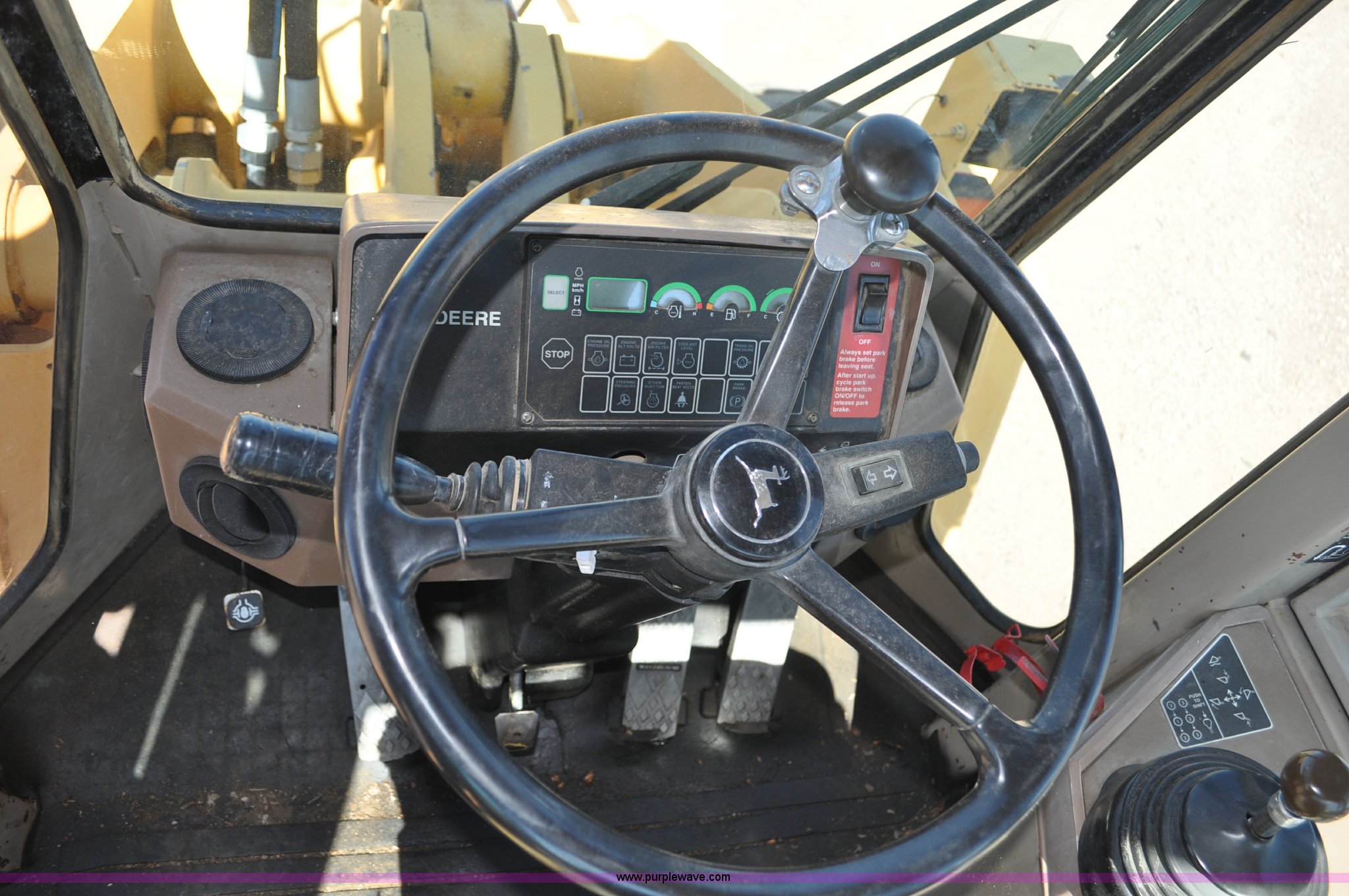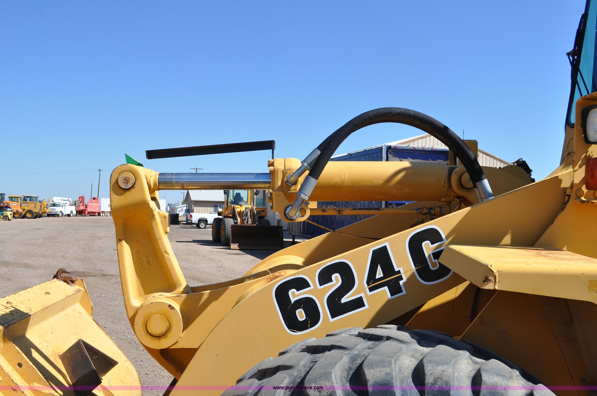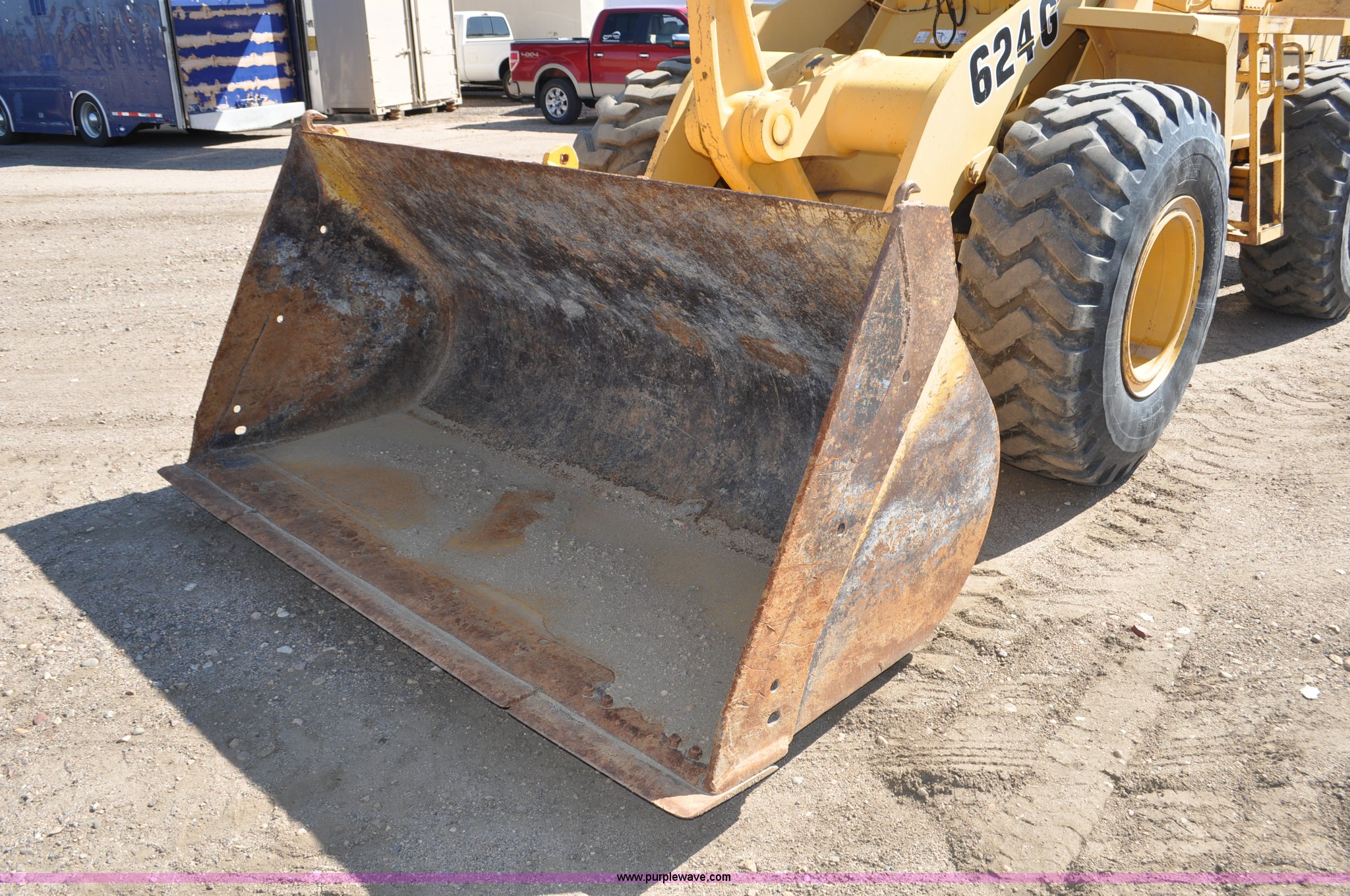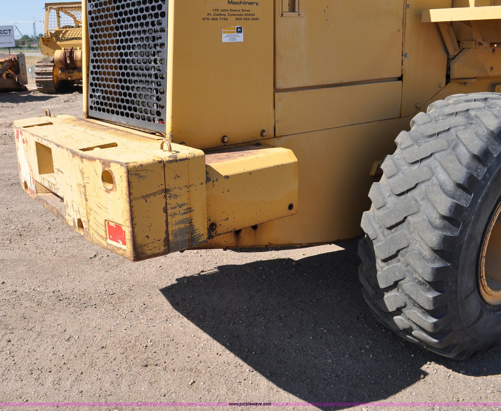 Purple Wave is selling a used Wheel Loader in Colorado. This item is a 1993 John Deere 624G wheel loader with the following: 17,424 hours on meter, John Deere 6068T diesel engine, Serial SE6068T365205, Four speed shuttle shift transmission, AC and heat, Suspension seat, Single joystick loader control, 100" pin-on bucket, Bolt-on cutting edge, Counter weights, 20.5x25L tires, 35,357 lbs. base operating weight, Serial DW624GB540158