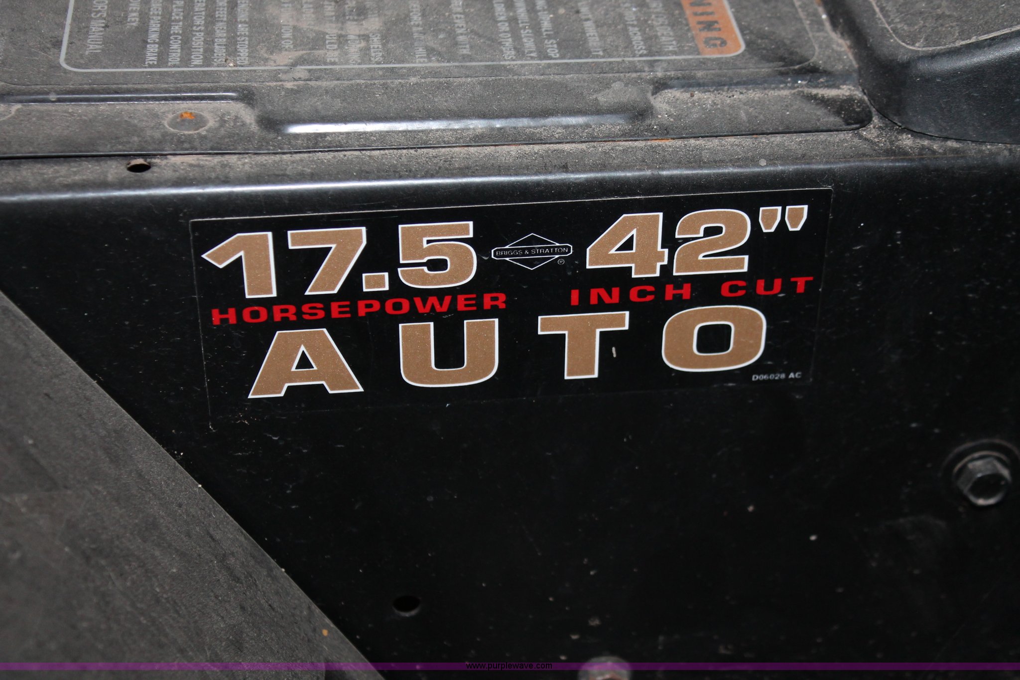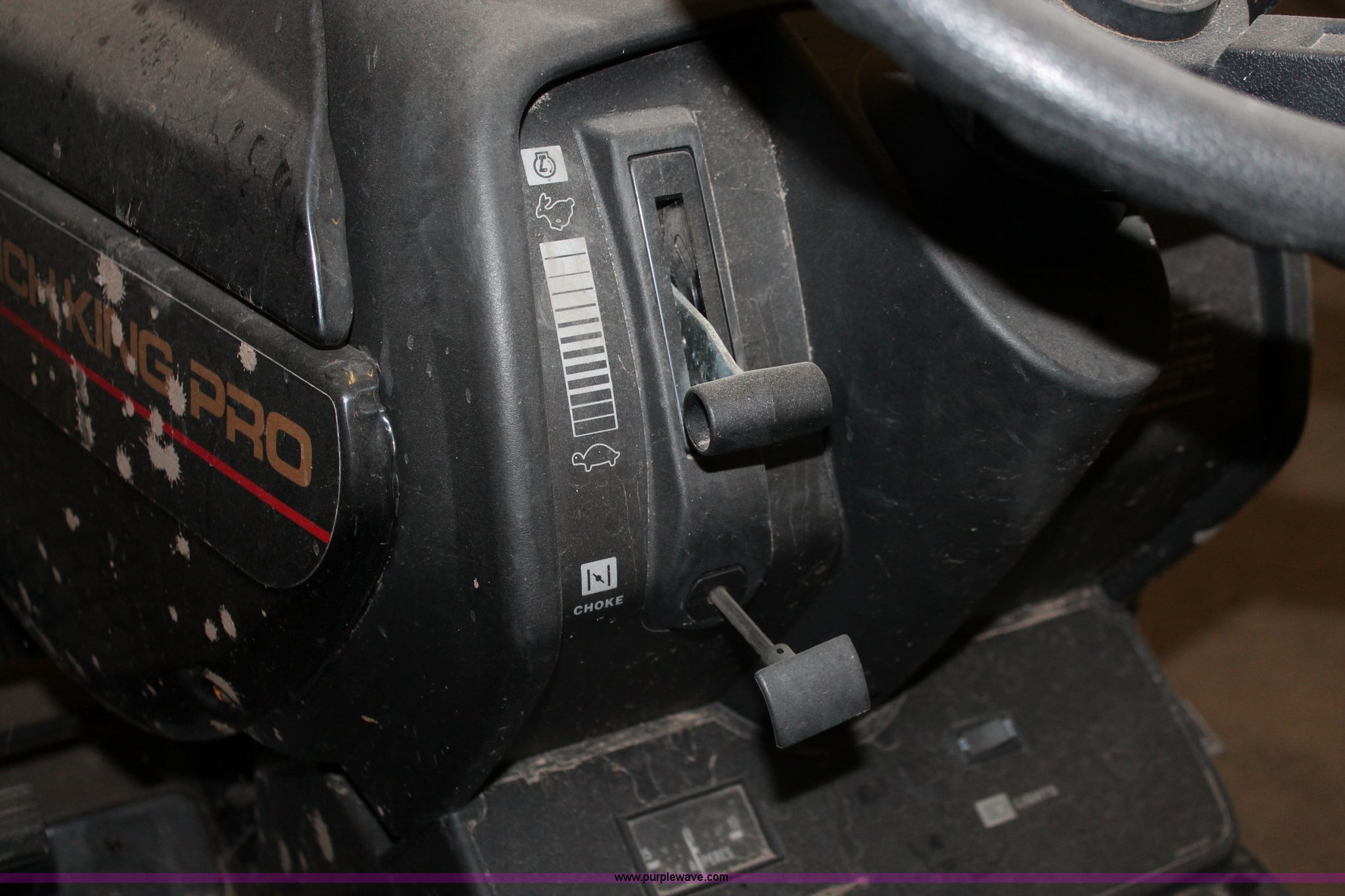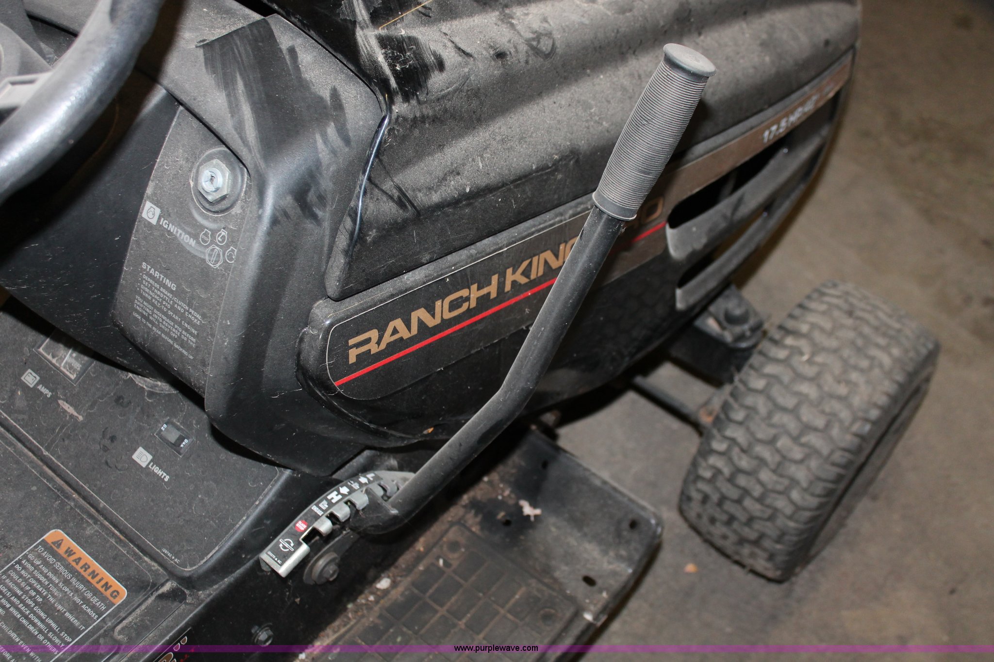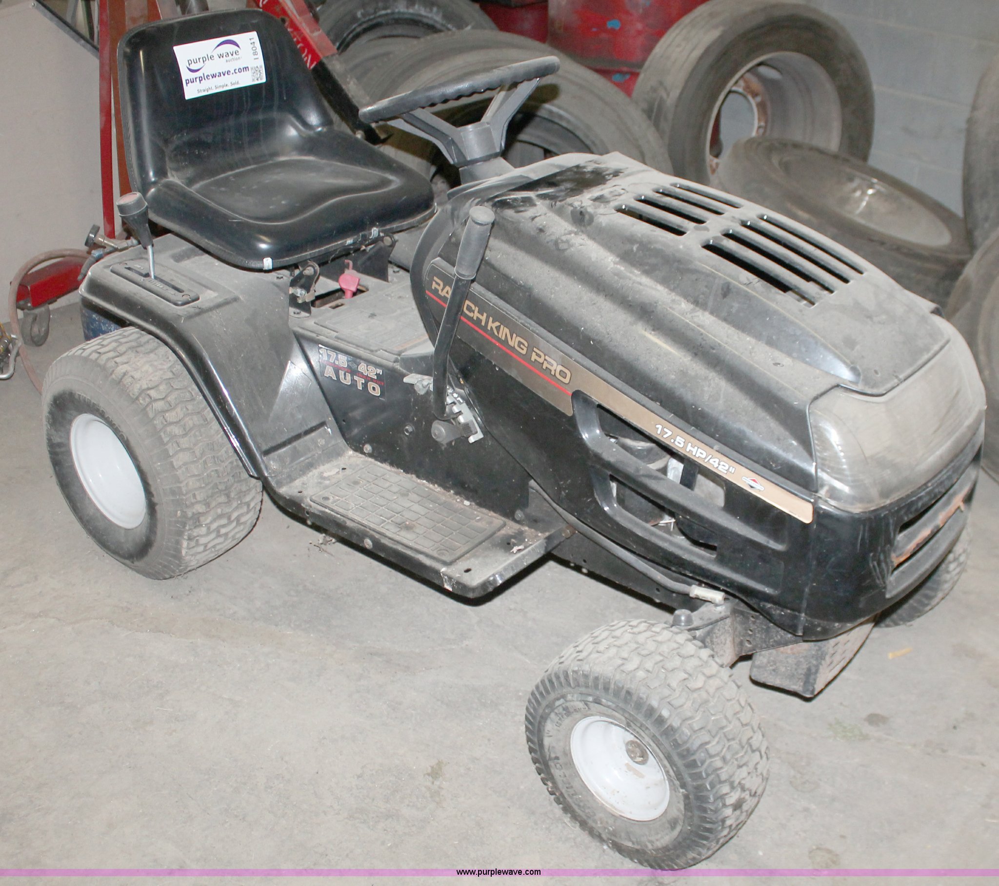 Purple Wave is selling a used Lawn and Garden in Kansas. This item is a MTD Ranchking Pro lawn mower with the following: Model 13AD698G205, 42" cut, Briggs & Stratton 17.5 HP gas engine, Hydrostatic transmission, Pin hitch, 15x6.00-6 front tires, 20x8.00-8 rear tires, Deck and belt detached, No keys, Unknown operating condition, Serial 1L071H10473, Case# 13C465968