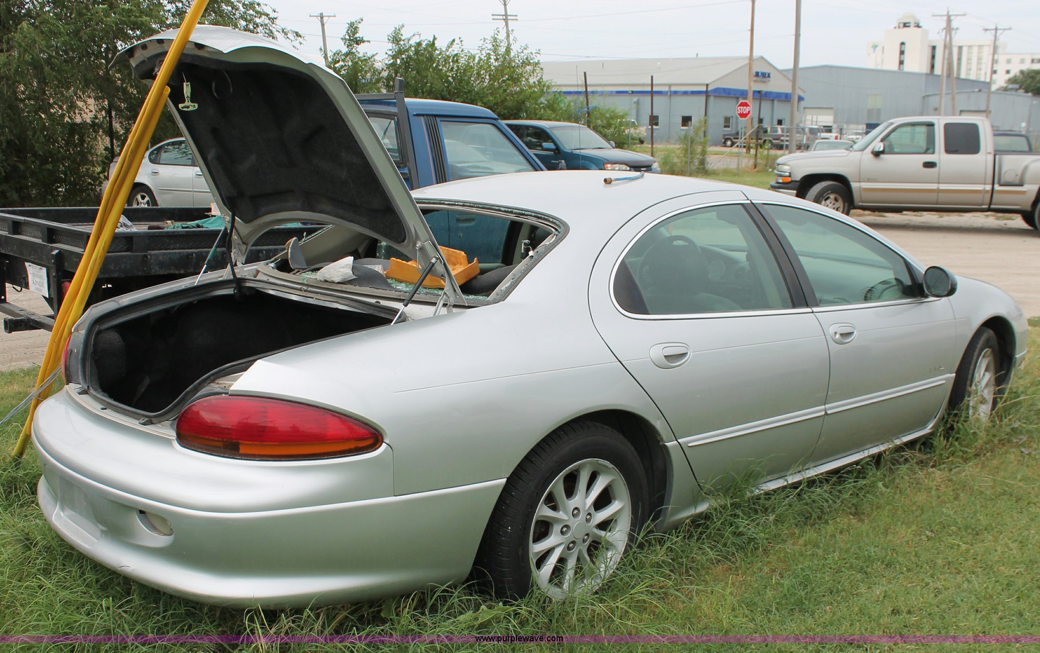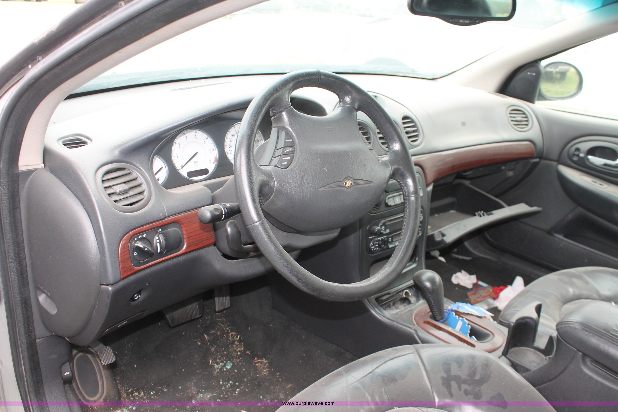 Purple Wave is selling a used Wrecked and Abandoned in Kansas. This item is a 2001 Chrysler LHS with the following: Unknown miles on odometer, 3.5L V6 SOHC 24V gas engine, Automatic transmission, AC and heat, Tilt, Cruise, AM/FM/CD/cassette, Power windows, locks, mirrors, and seats, Leather interior, Sunroof, Keys, P215/60R17 tires, Interior/exterior cosmetic damage, Broken rear glass, Trunk open, Hail damage, Exterior scratches, Dead battery, Case# 13C37639