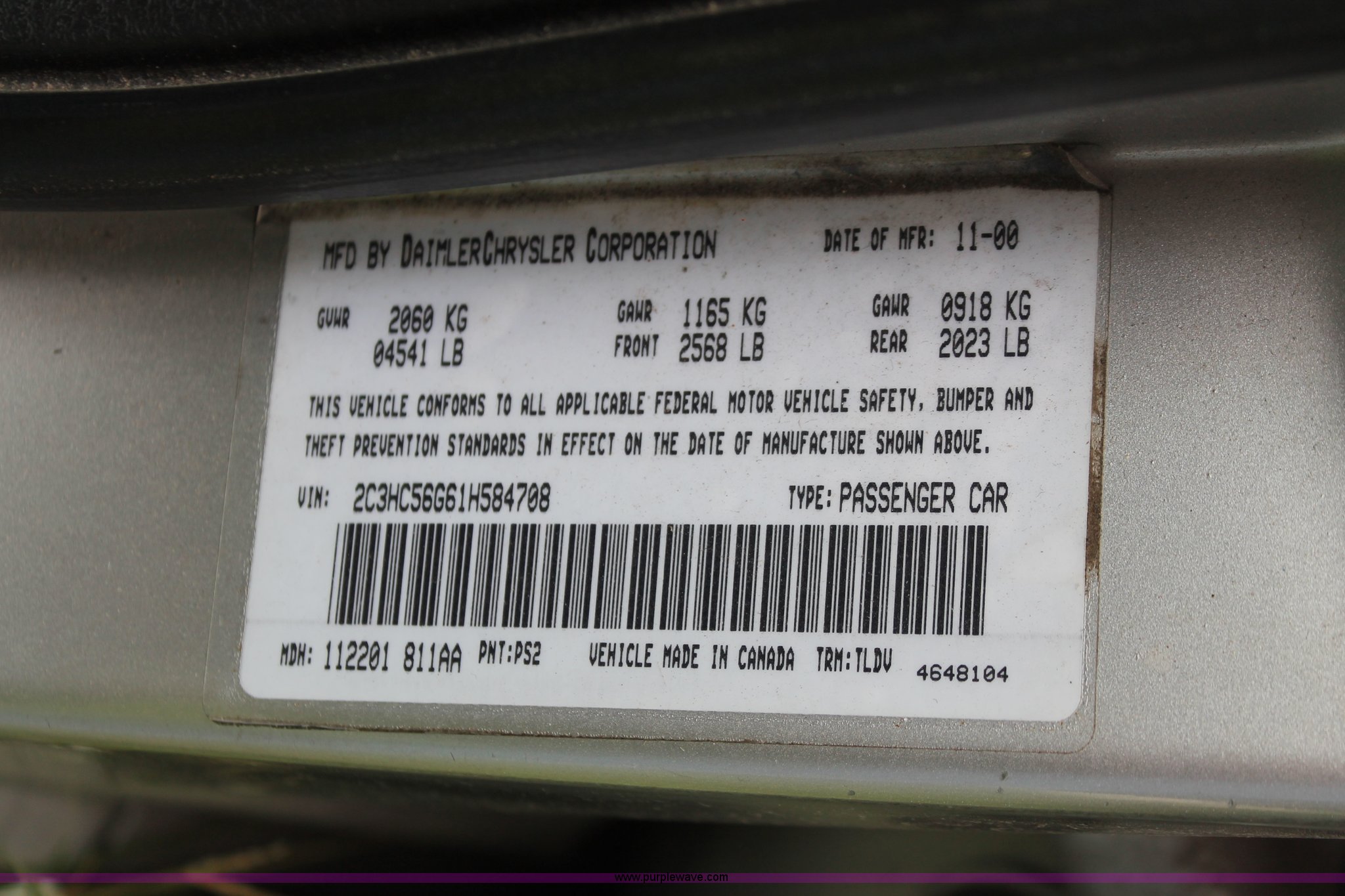 2001 Chrysler LHS has sold in Wichita, Kansas for $467.50. Item I8042 sold on September 23rd, 2013.