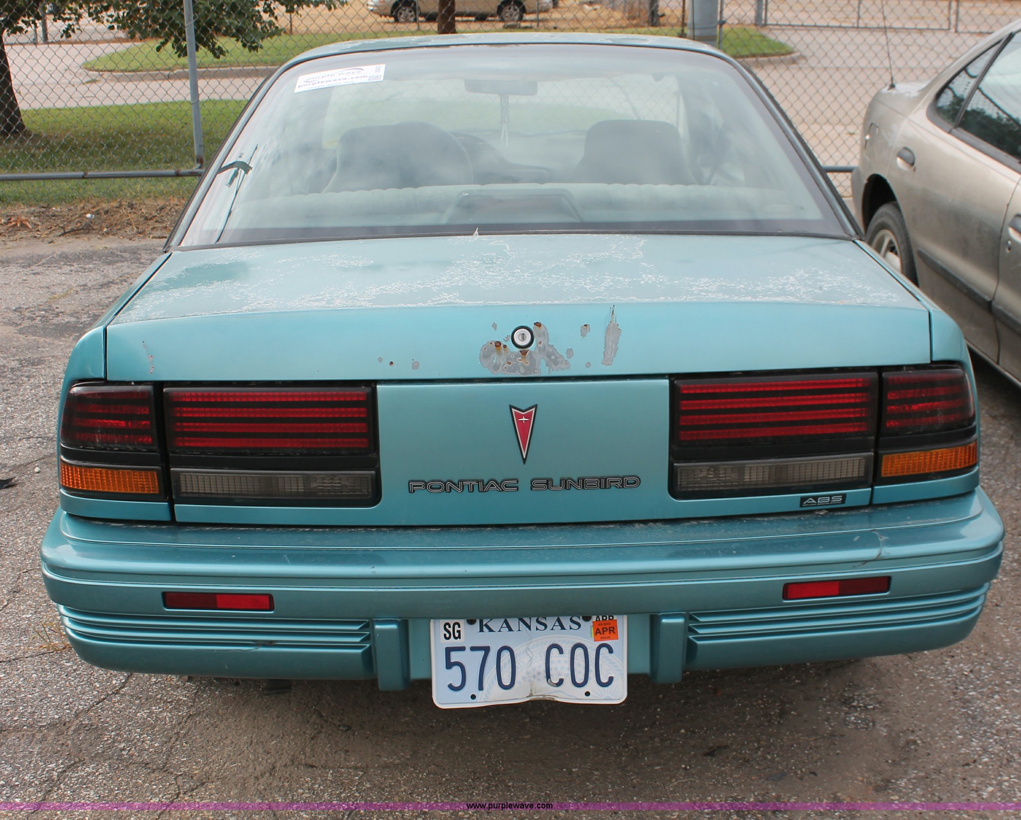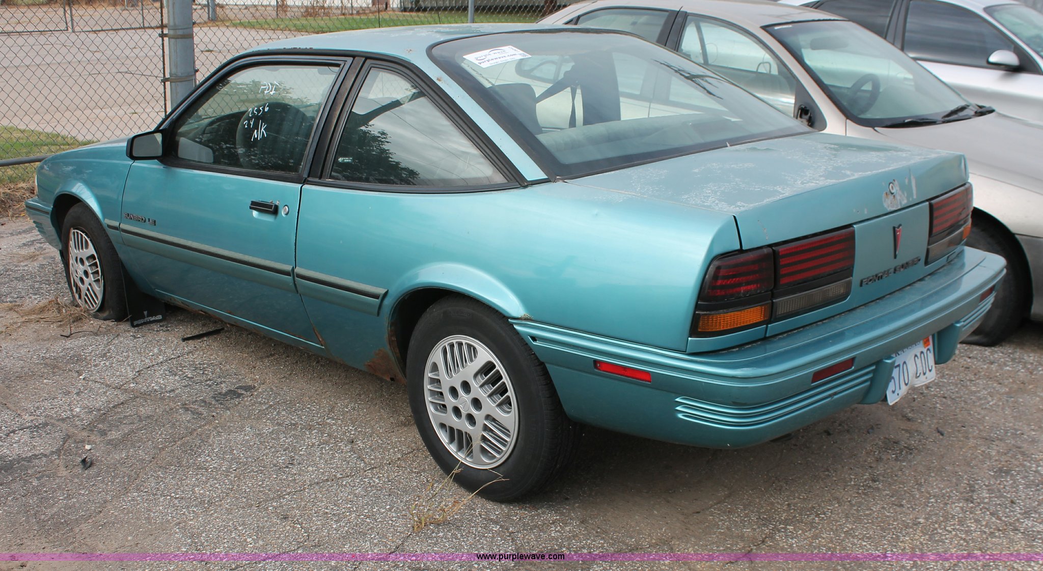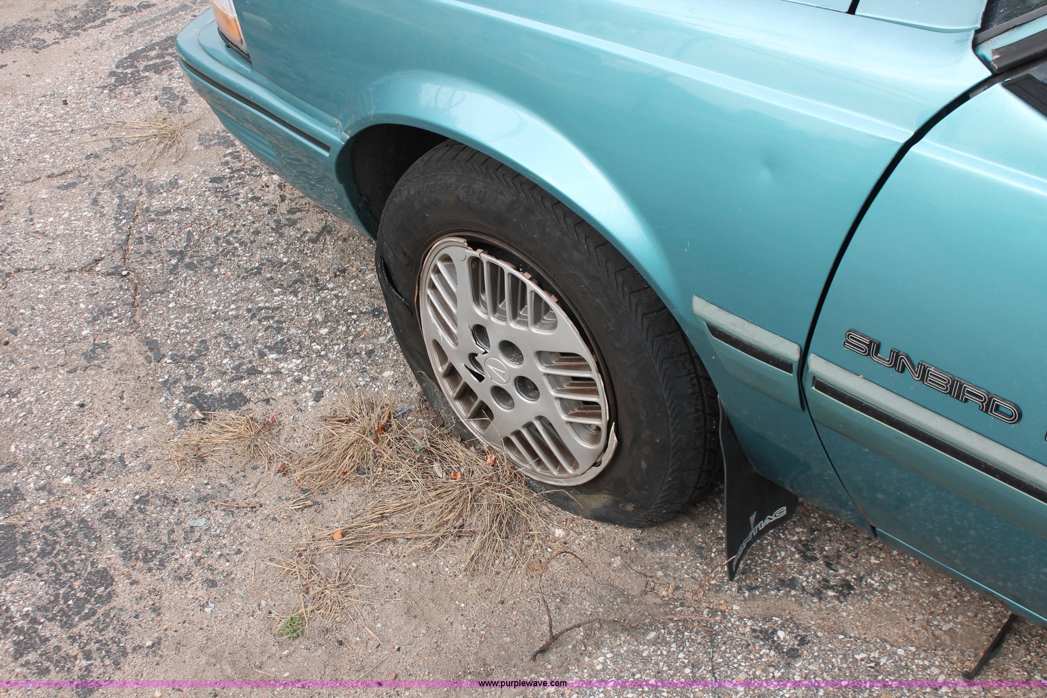 Purple Wave is selling a used Wrecked and Abandoned in Kansas. This item is a 1994 Pontiac Sunbird LE with the following: 223,525 miles on odometer, 2.0L L4 SOHC 8V gas engine, Automatic transmission, AC and heat, AM/FM, Manual windows, Cloth interior, P185/75R14 tires, Interior/exterior cosmetic damage, Paint faded, Flat tires, Cracked side mirror, Rust, Headliner missing, Case# 13C49288