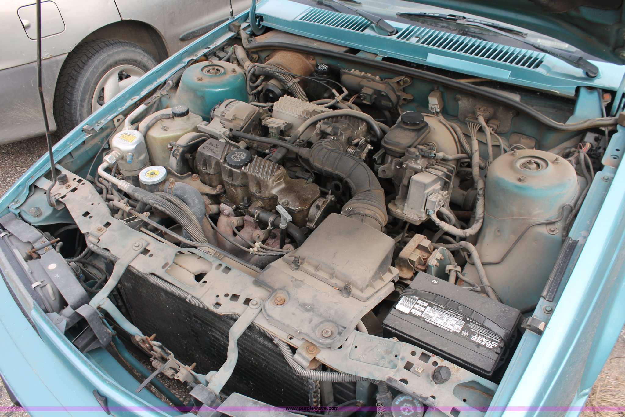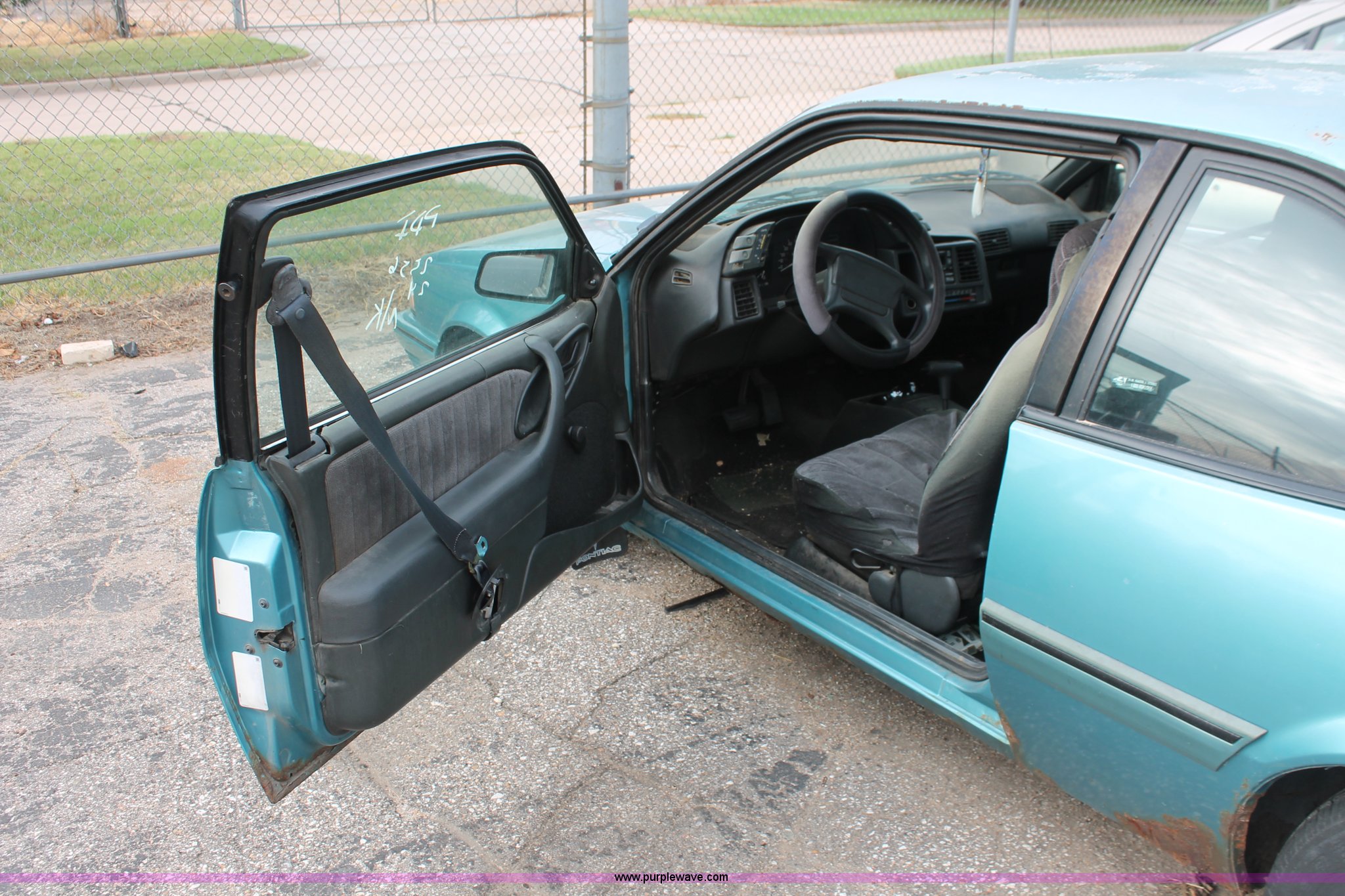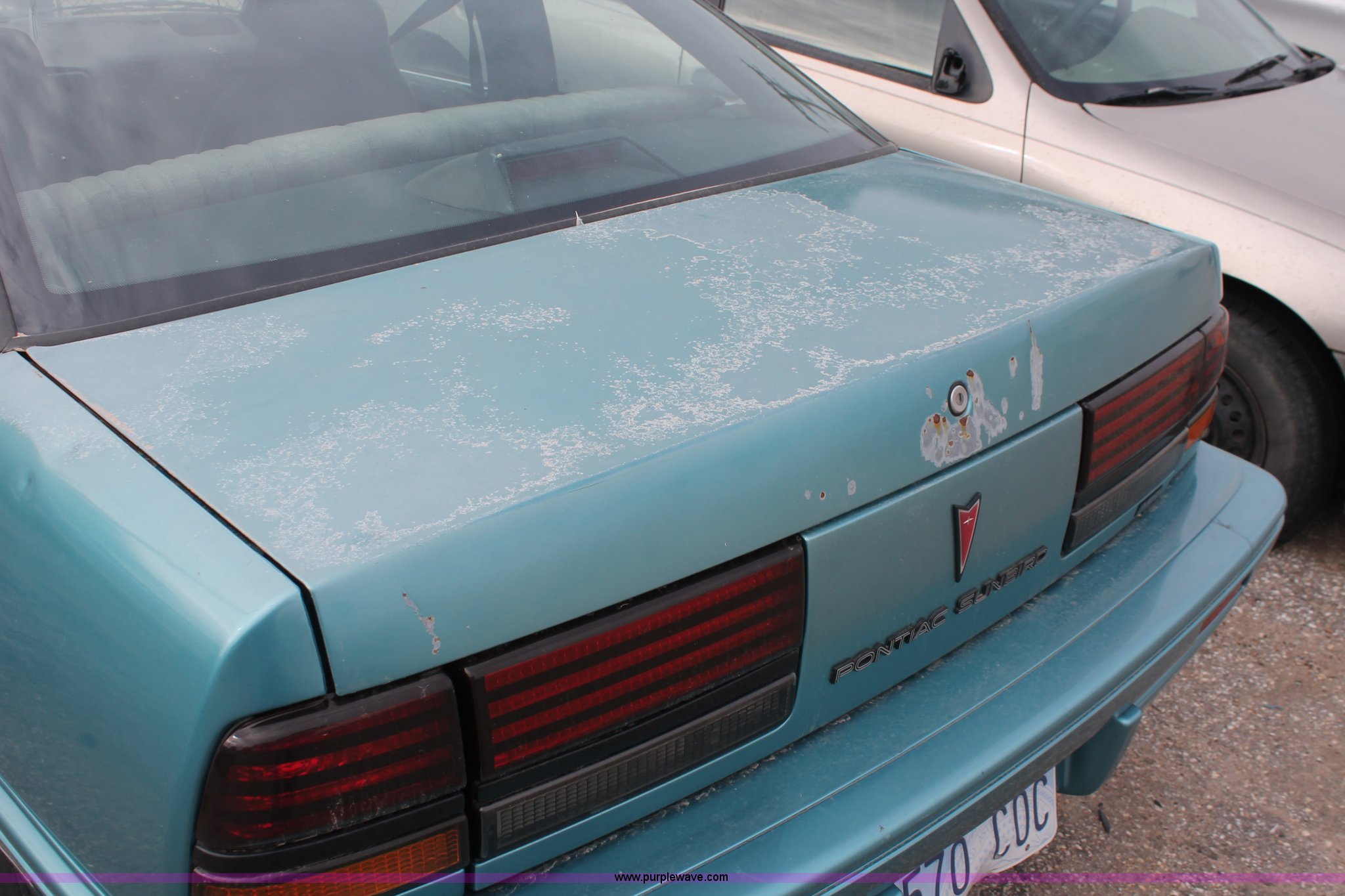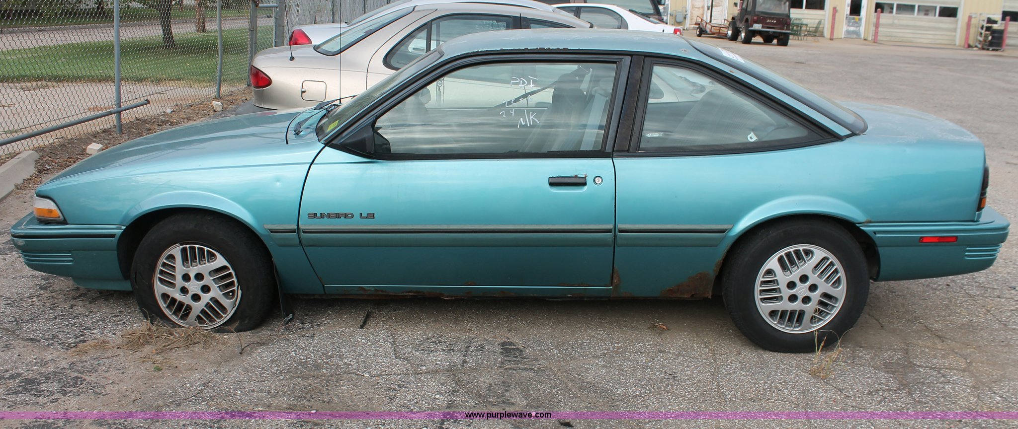 Purple Wave is selling a used Wrecked and Abandoned in Kansas. This item is a 1994 Pontiac Sunbird LE with the following: 223,525 miles on odometer, 2.0L L4 SOHC 8V gas engine, Automatic transmission, AC and heat, AM/FM, Manual windows, Cloth interior, P185/75R14 tires, Interior/exterior cosmetic damage, Paint faded, Flat tires, Cracked side mirror, Rust, Headliner missing, Case# 13C49288